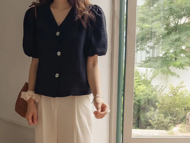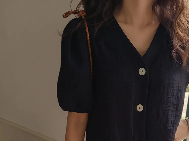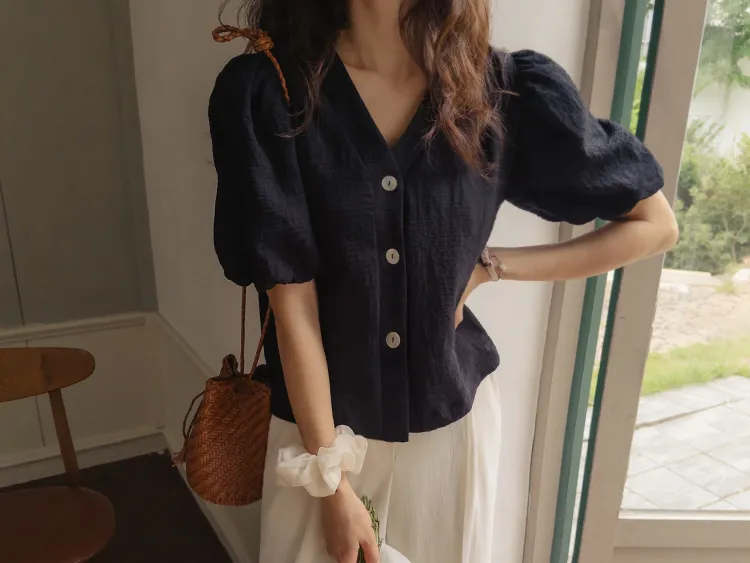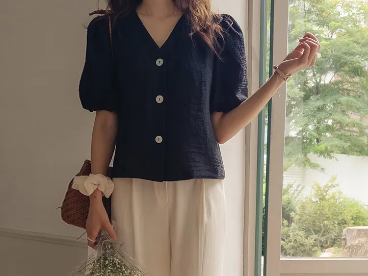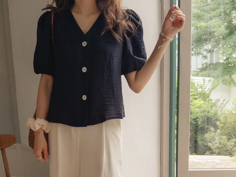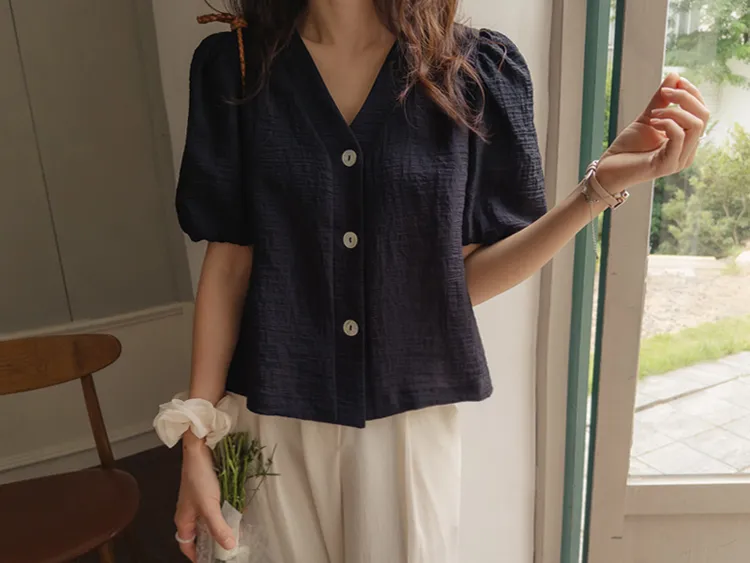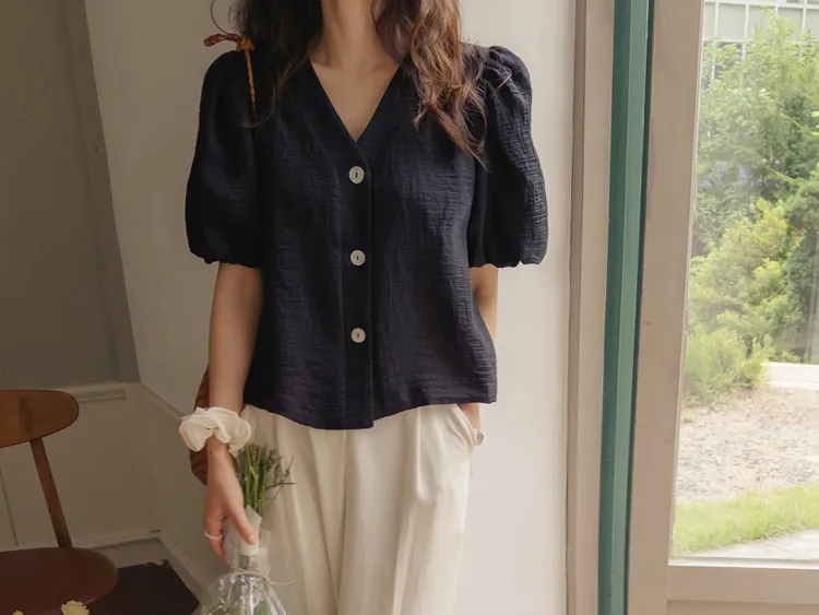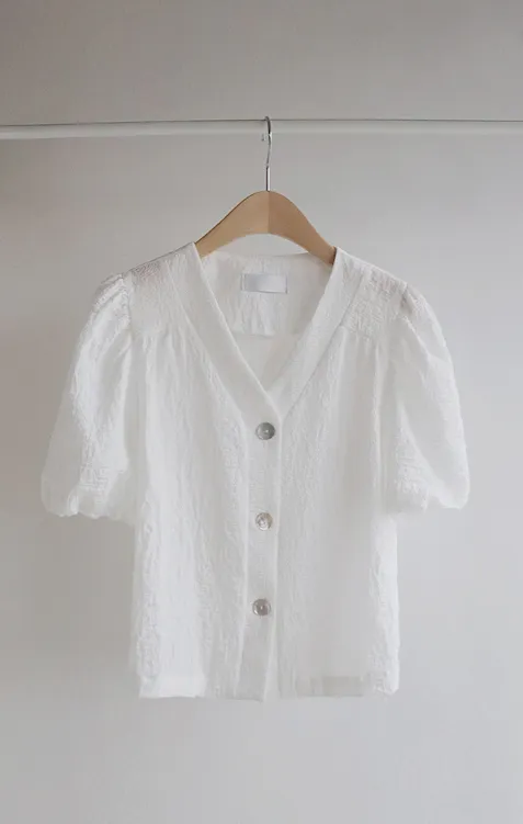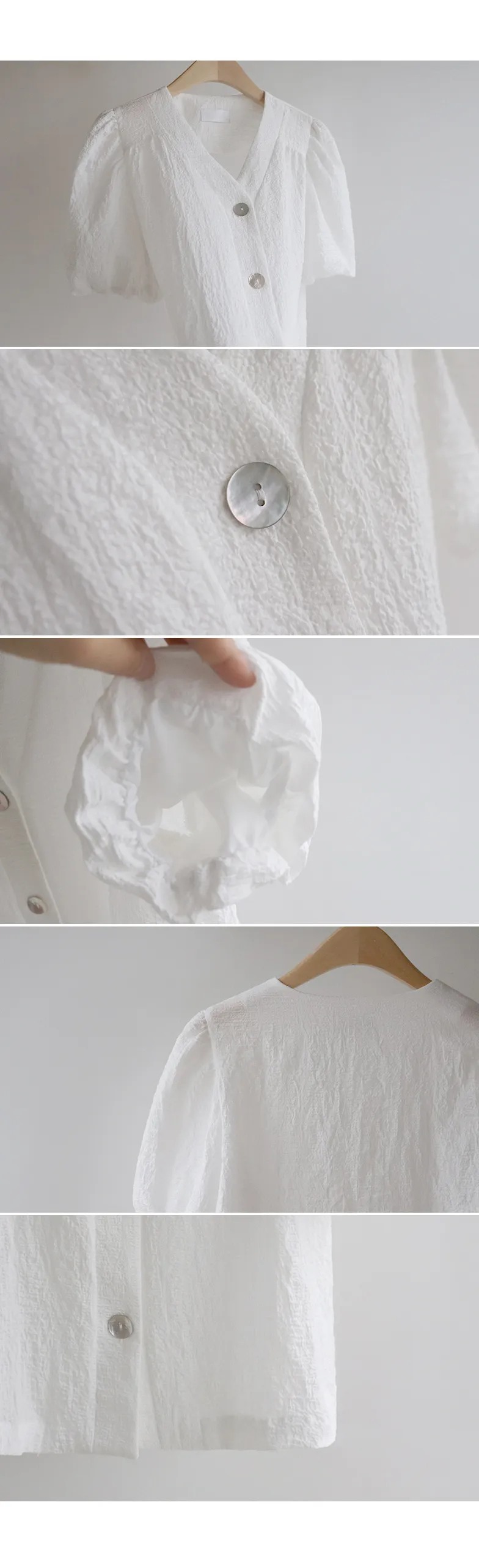 獨特紋理捲袖泡泡紗排扣上衣外套