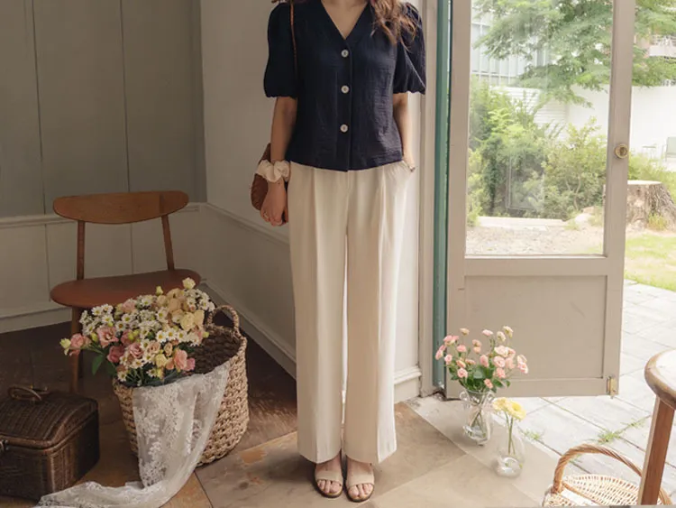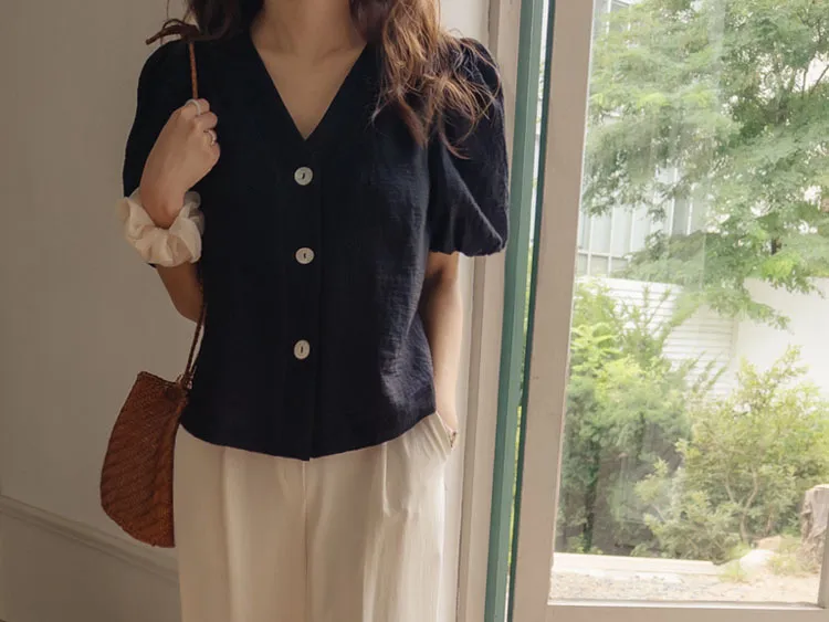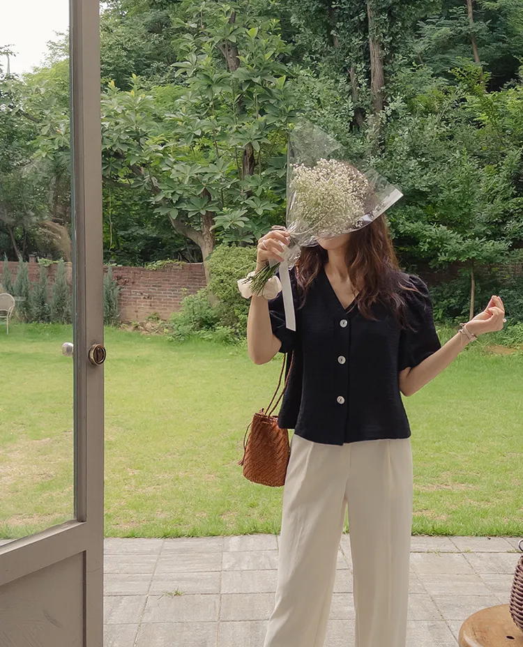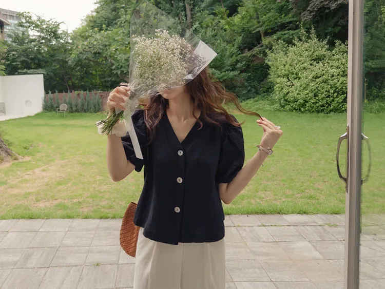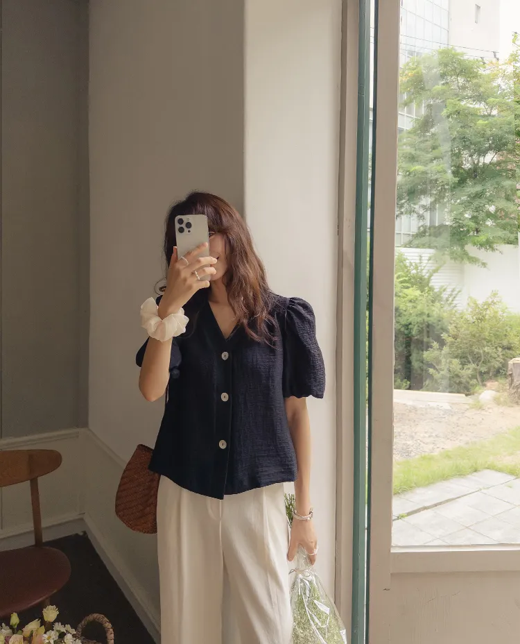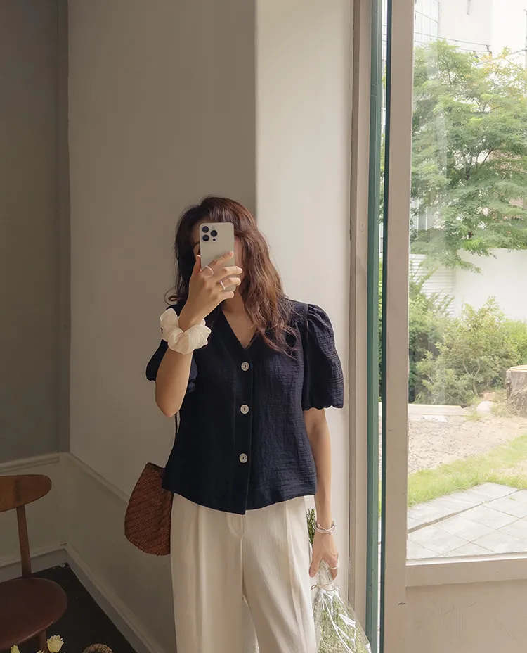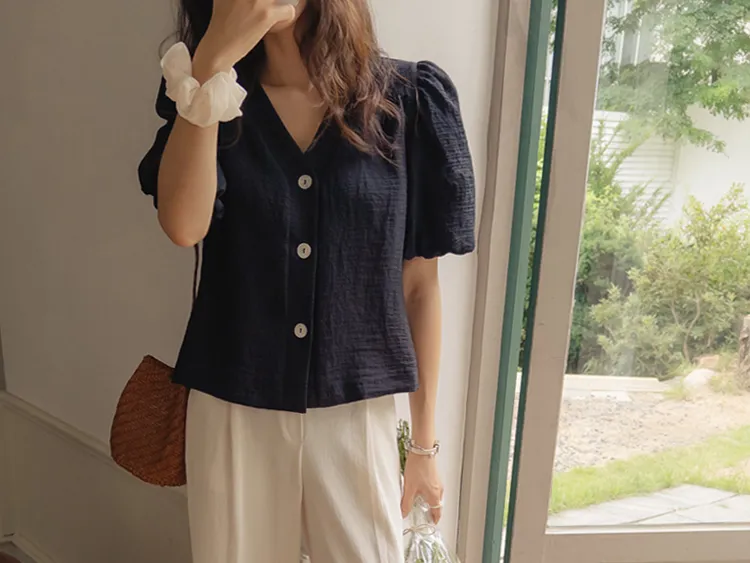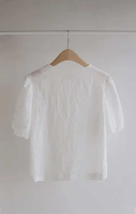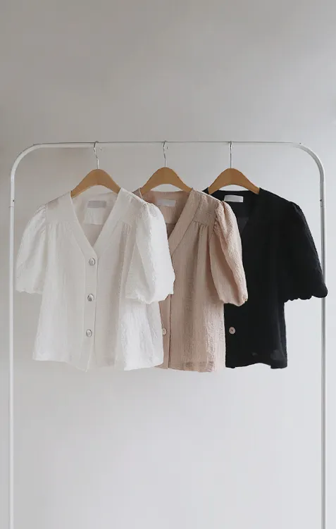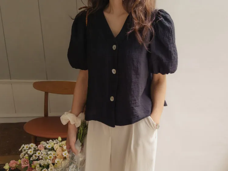 獨特紋理捲袖泡泡紗排扣上衣外套