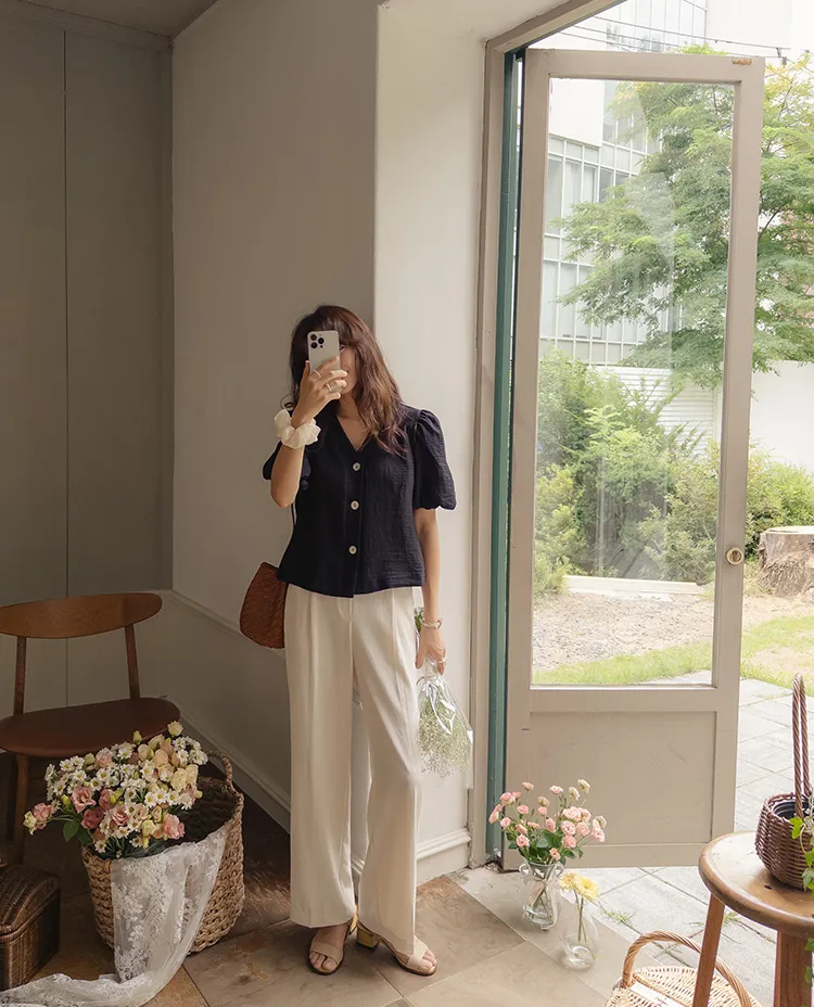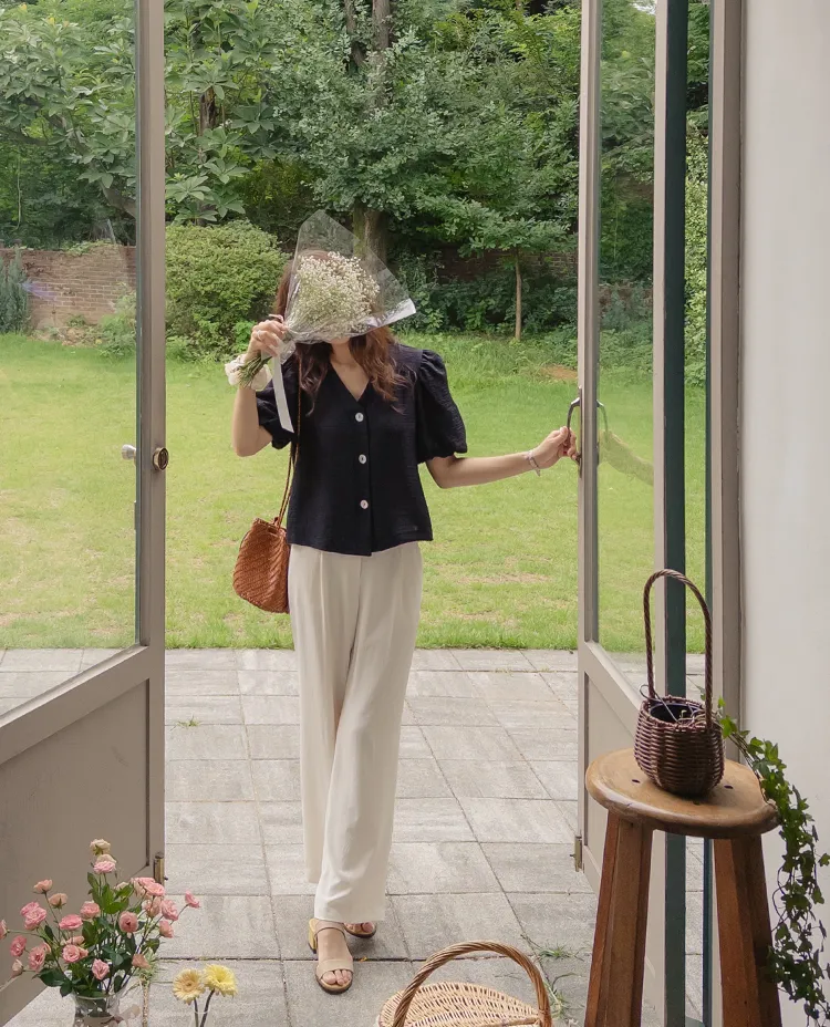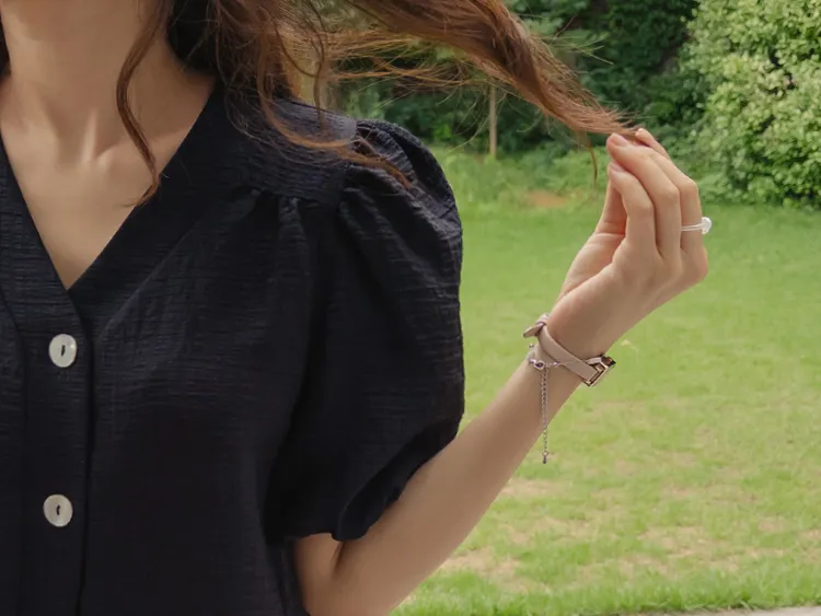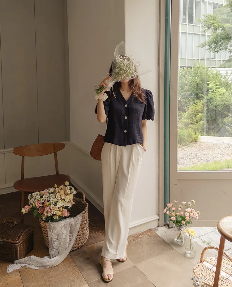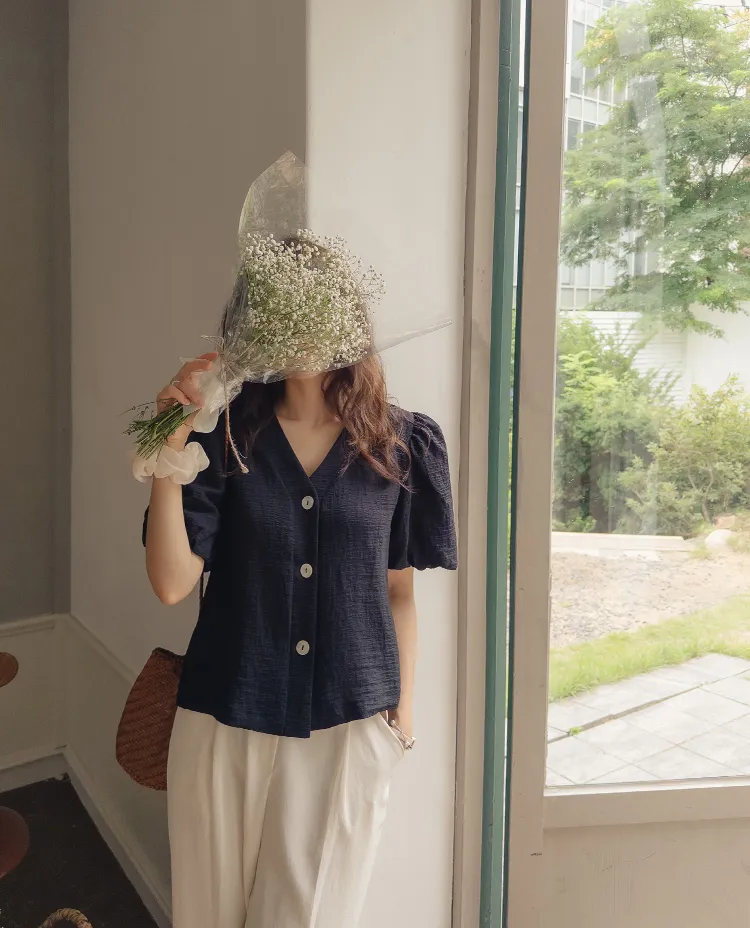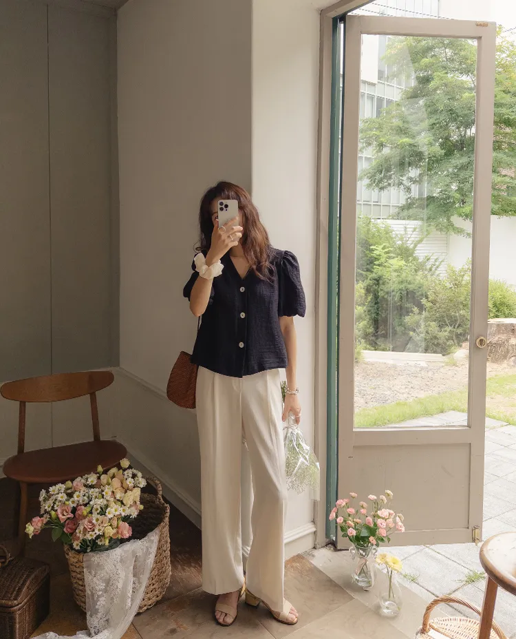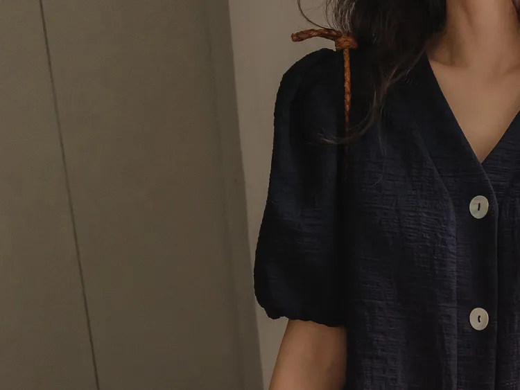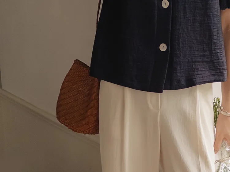 [非常適合用作排扣上衣或外套! ] [防皺、柔軟~涼爽的泡泡紗材質] [天絲混紡面料,打造精緻而奢華的外觀! ] [捲袖浪漫設計]