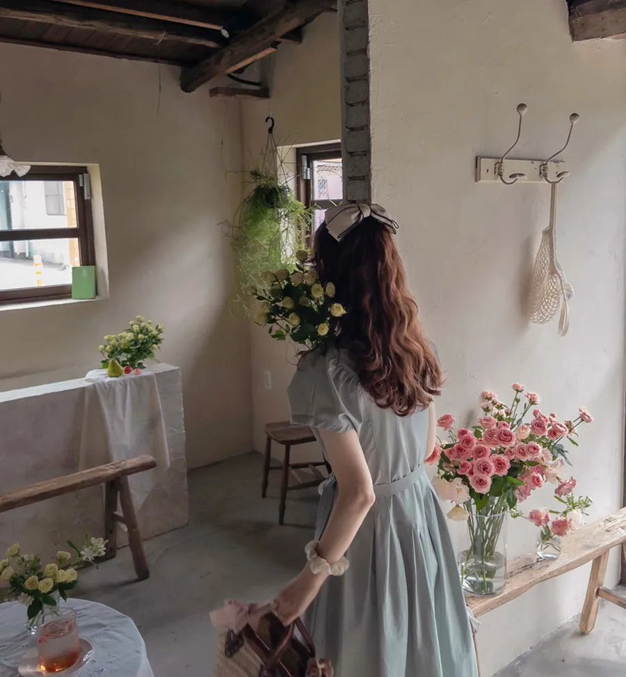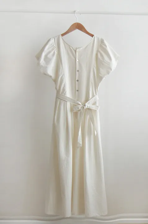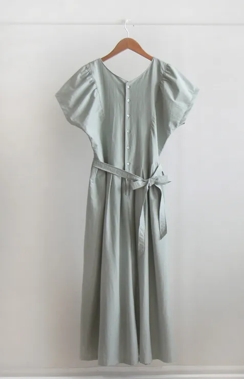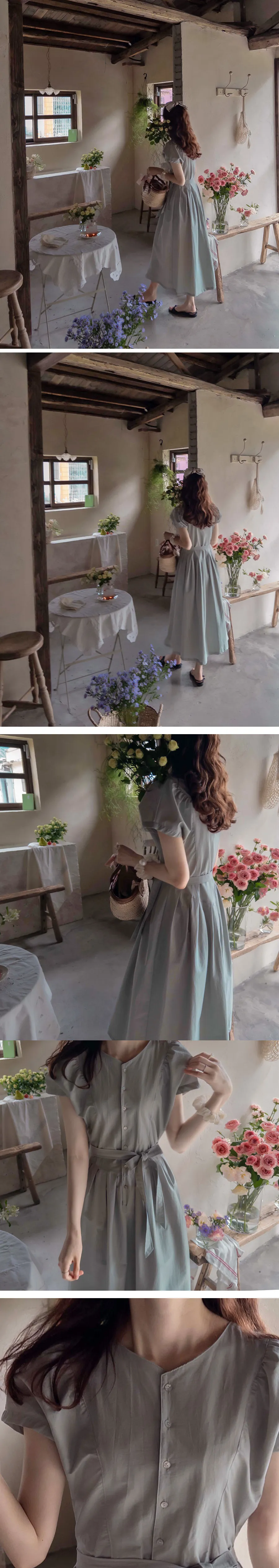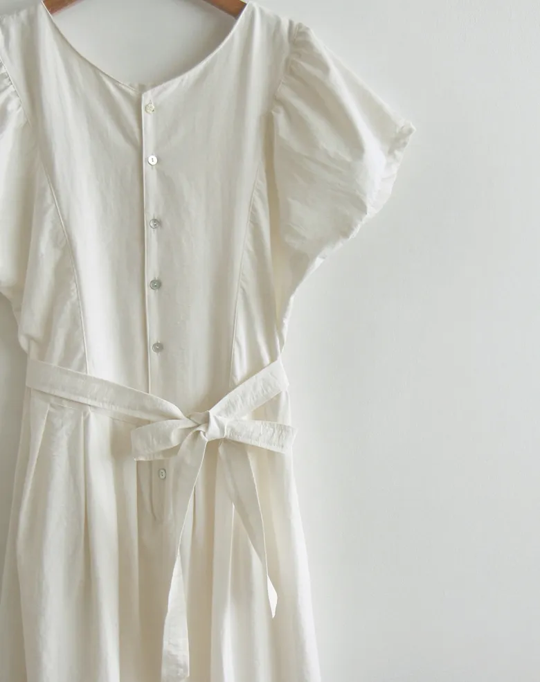 [可按連結開合][腰帶組:可拆][無肩帶,修身寬鬆版型,不貼身,看起來苗條][共享在頸部和腰部以下,營造可愛的心情][潮濕而鬆脆的夏季面料含有尼龍]][用絲帶繫在腰間的話,推薦作為修身的夏季連身裙]