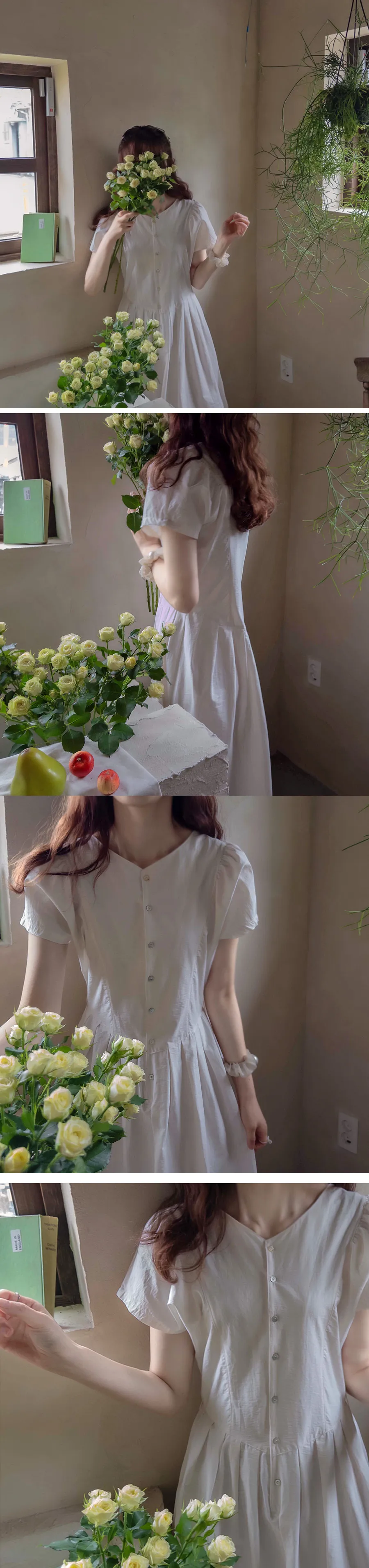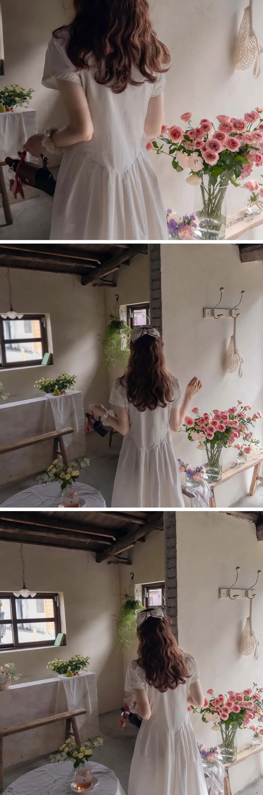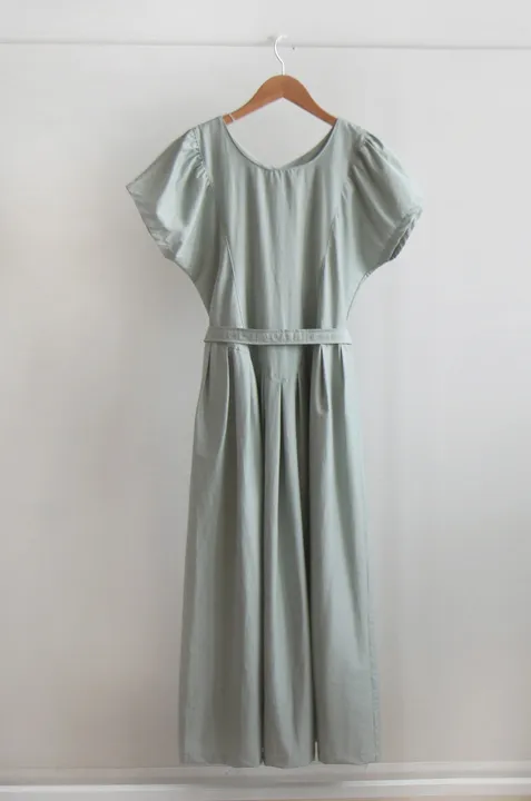 [可按連結開合][腰帶組:可拆][無肩帶,修身寬鬆版型,不貼身,看起來苗條][共享在頸部和腰部以下,營造可愛的心情][潮濕而鬆脆的夏季面料含有尼龍]][用絲帶繫在腰間的話,推薦作為修身的夏季連身裙]
