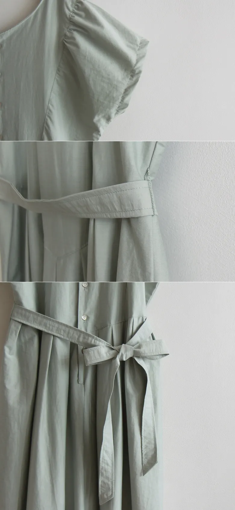 漂亮腰線剪裁排扣附綁帶連身裙