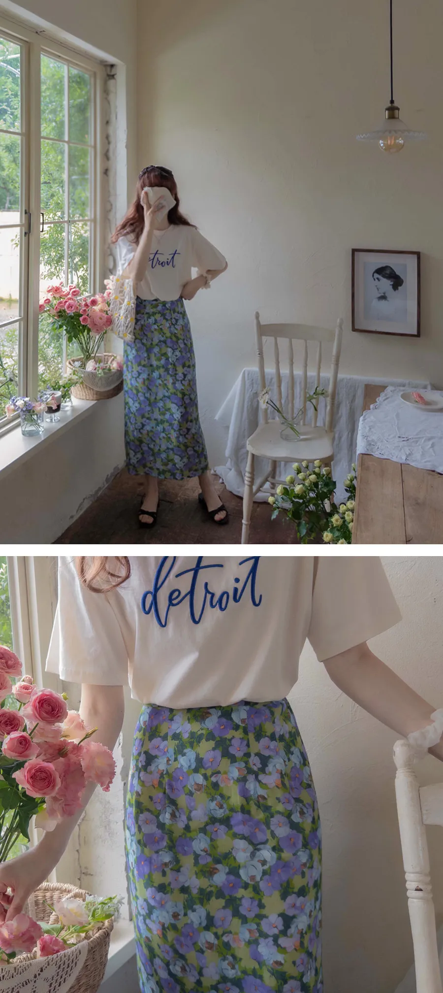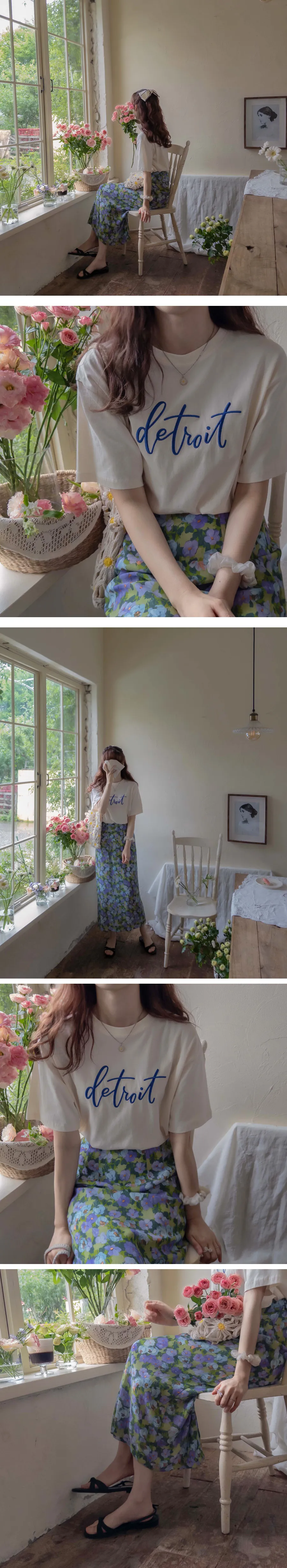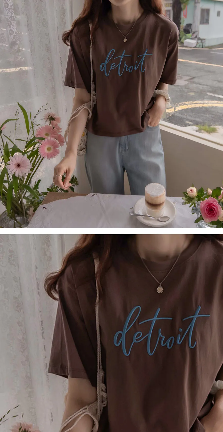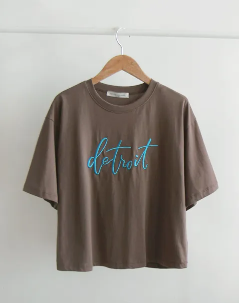 [帶有細緻刻字刺繡的上衣][穿著舒適][適合刻字構圖][一款易於搭配的 T 卹,可以時尚地穿著][推薦作為夏日日常穿搭】