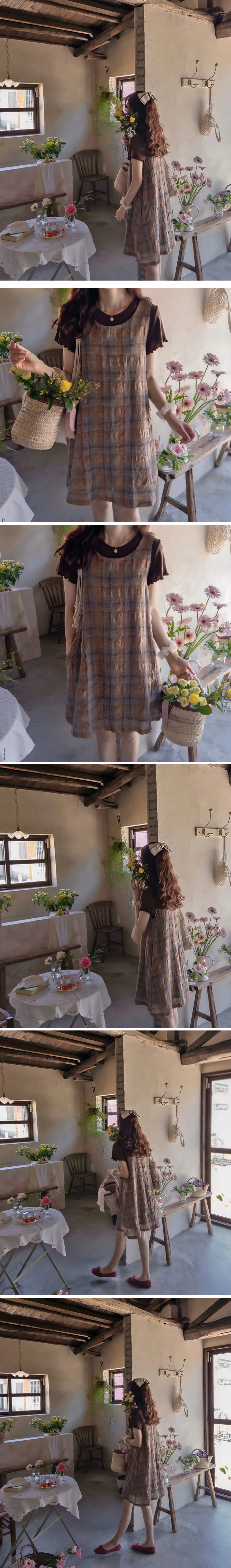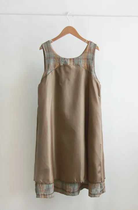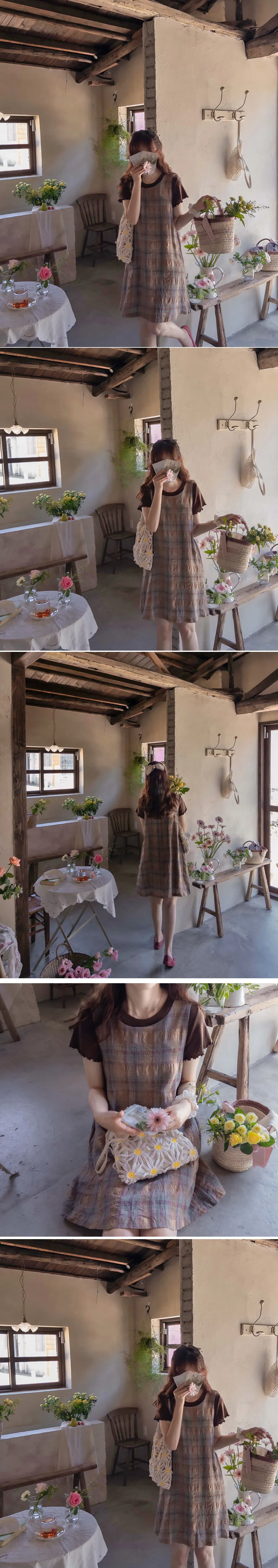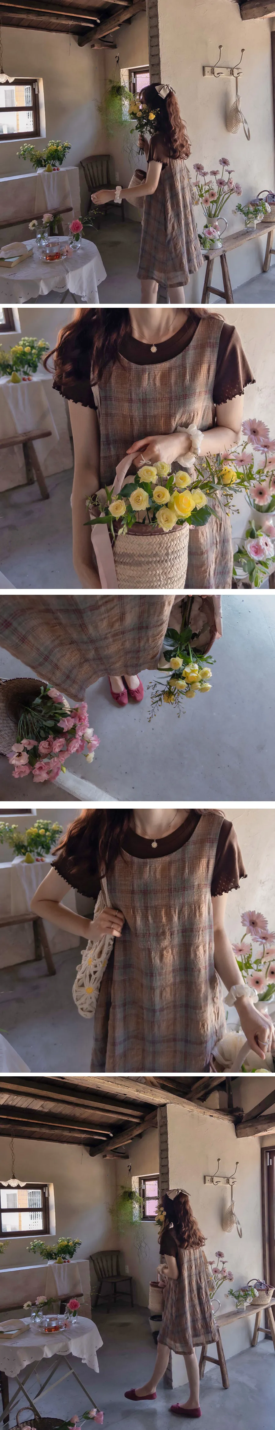 [聚酯襯裡] [背面拉鍊結構] [精緻的格子圖案] [採用涼爽亞麻製成的時尚邊緣合身連身裙] [適合夏季日常穿著] [亞麻格紋連身裙