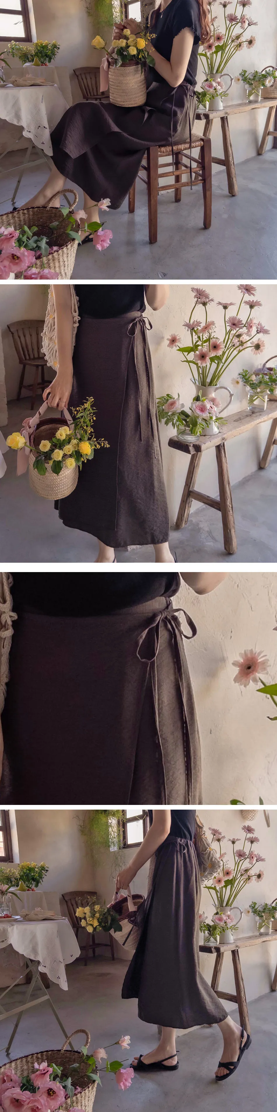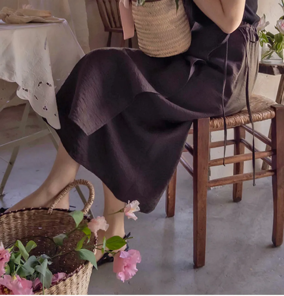 輕款舒適裹身綁帶中長裙