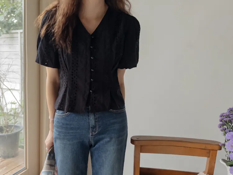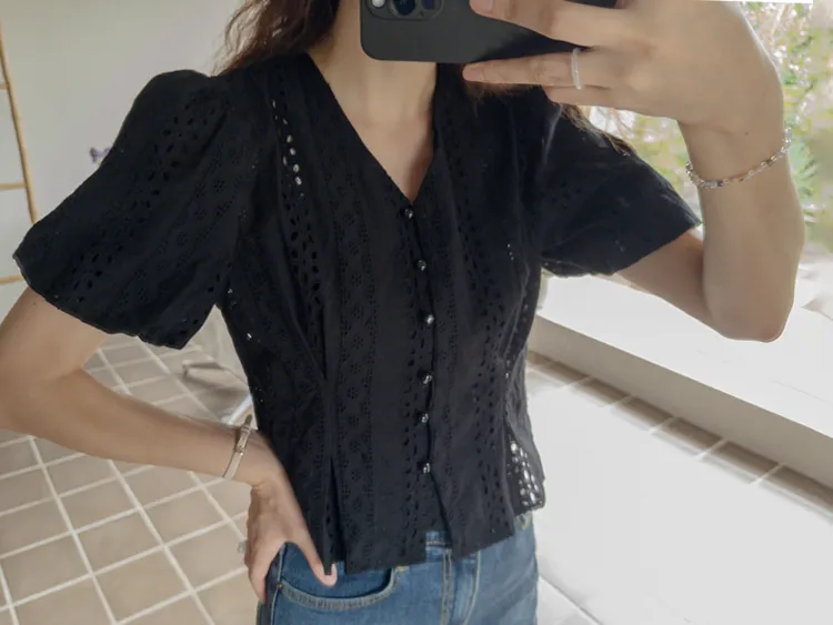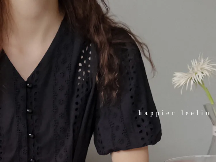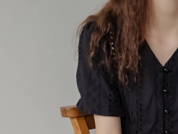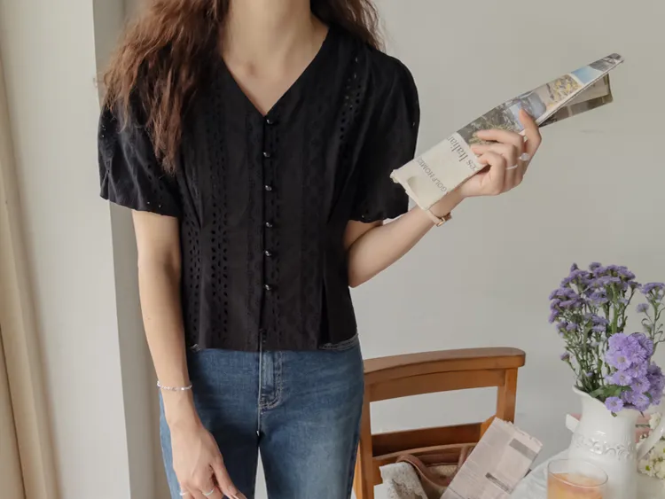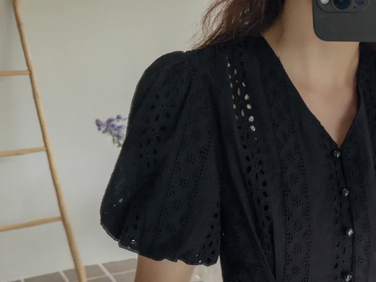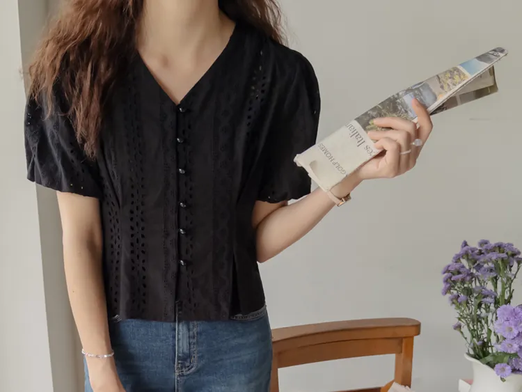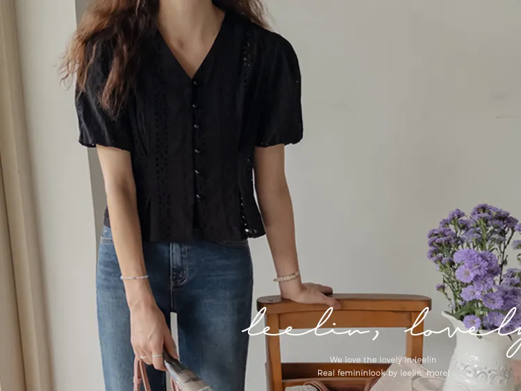 【充滿女人味~蕾絲鏤空排扣上衣♥】【混搭各種鏤空設計,1000%收藏價值】【針褶細節打造纖細腰線!