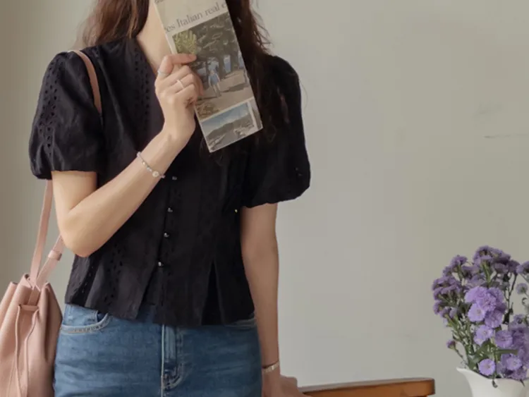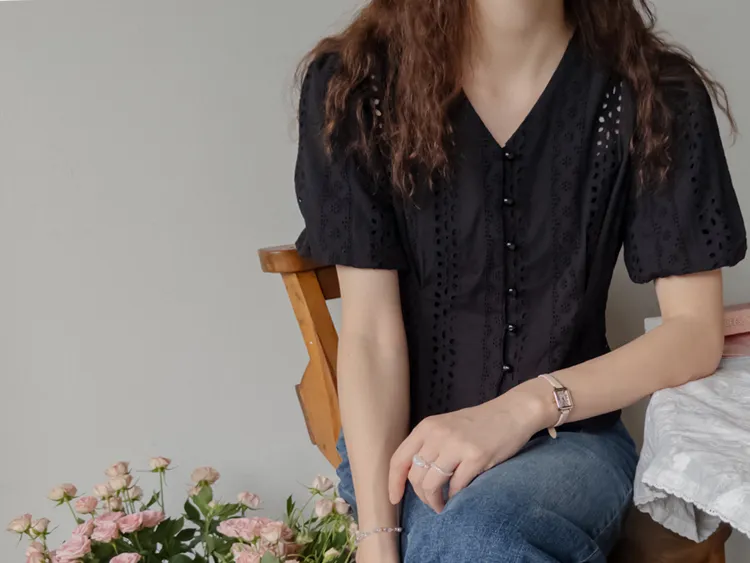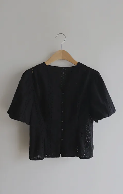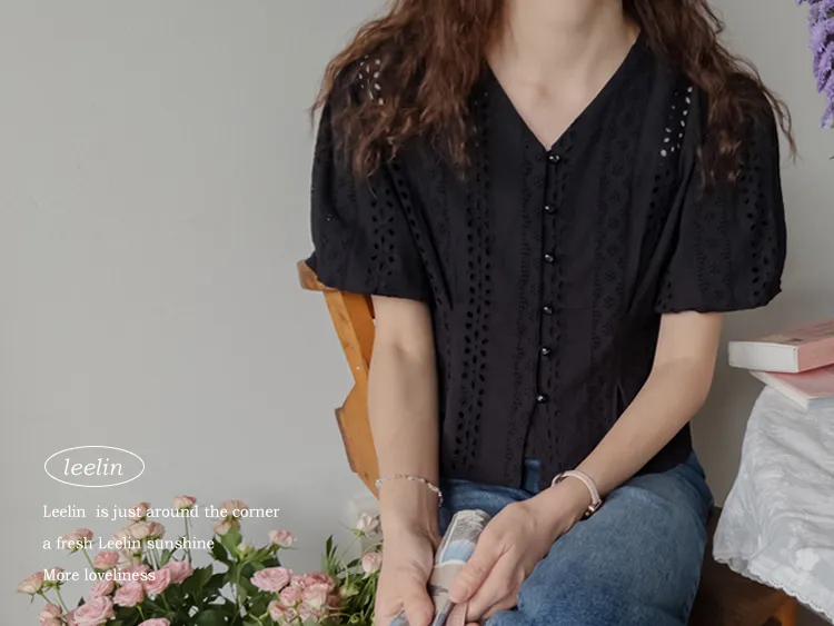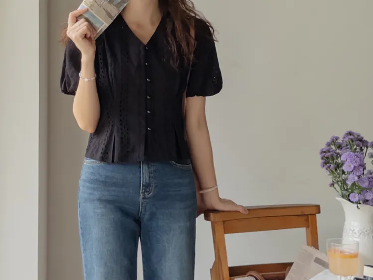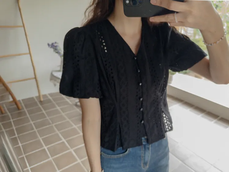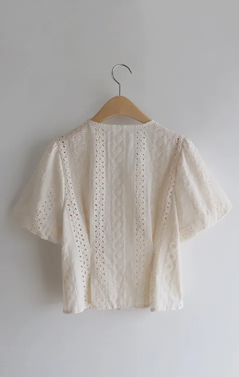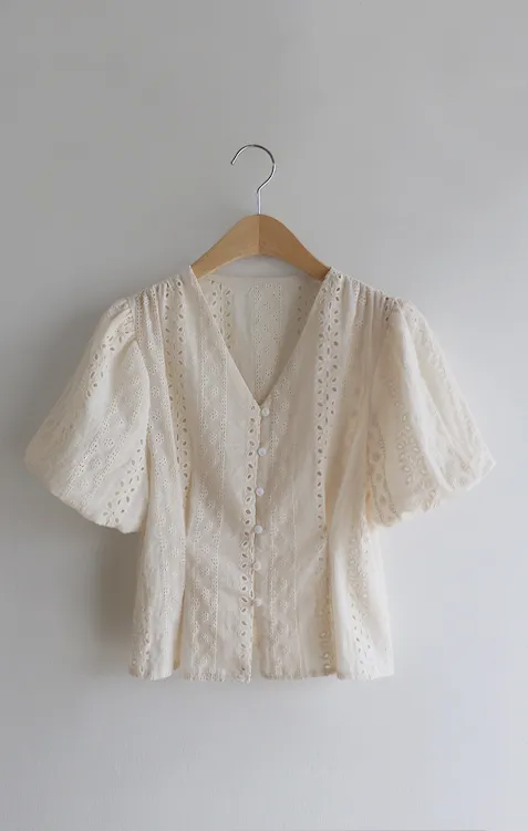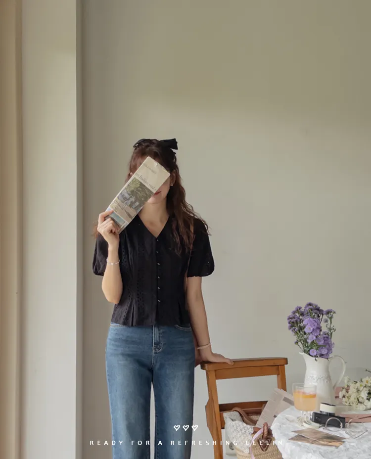 【充滿女人味~蕾絲鏤空排扣上衣♥】【混搭各種鏤空設計,1000%收藏價值】【針褶細節打造纖細腰線!
