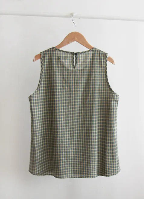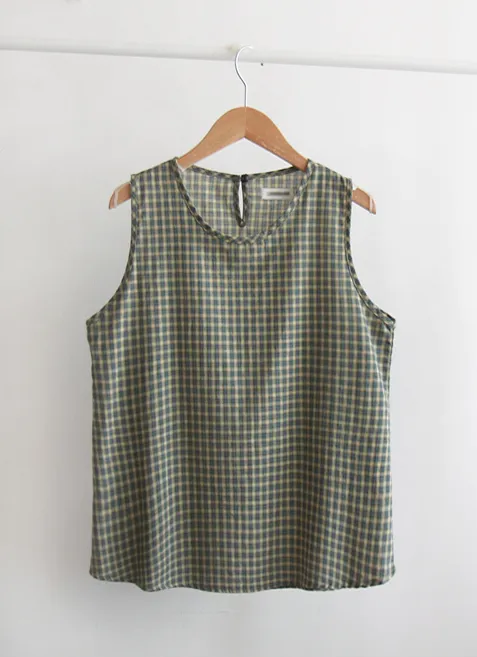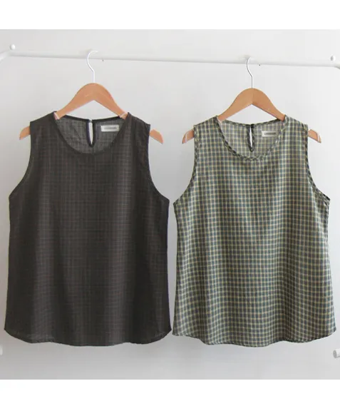 [精緻的格紋圖案][時尚邊緣的無袖上衣][適合日常穿著的季節][格紋