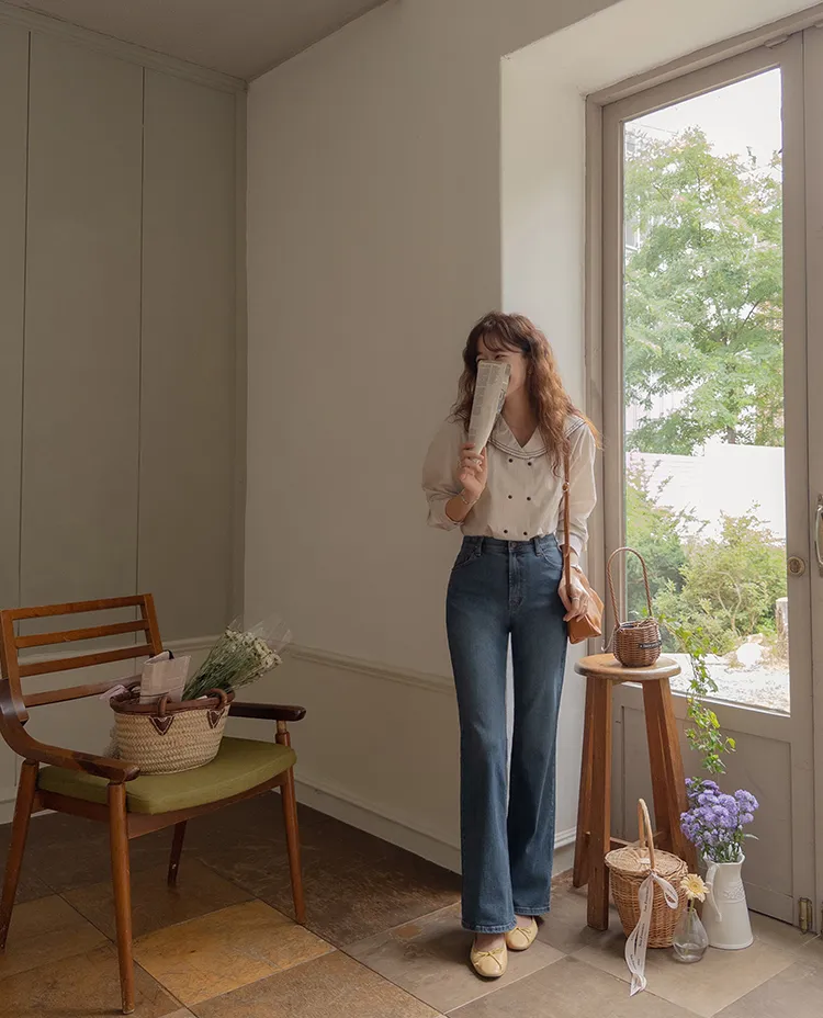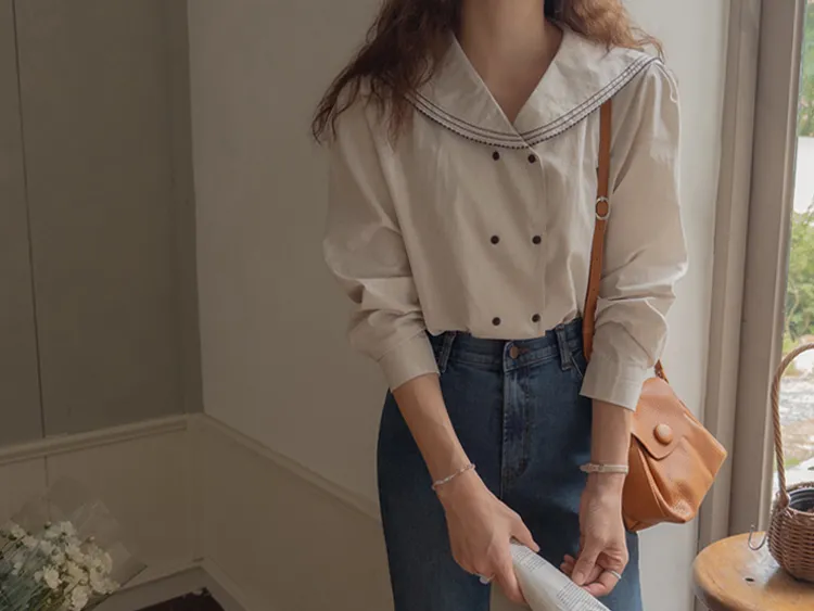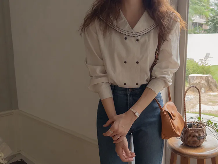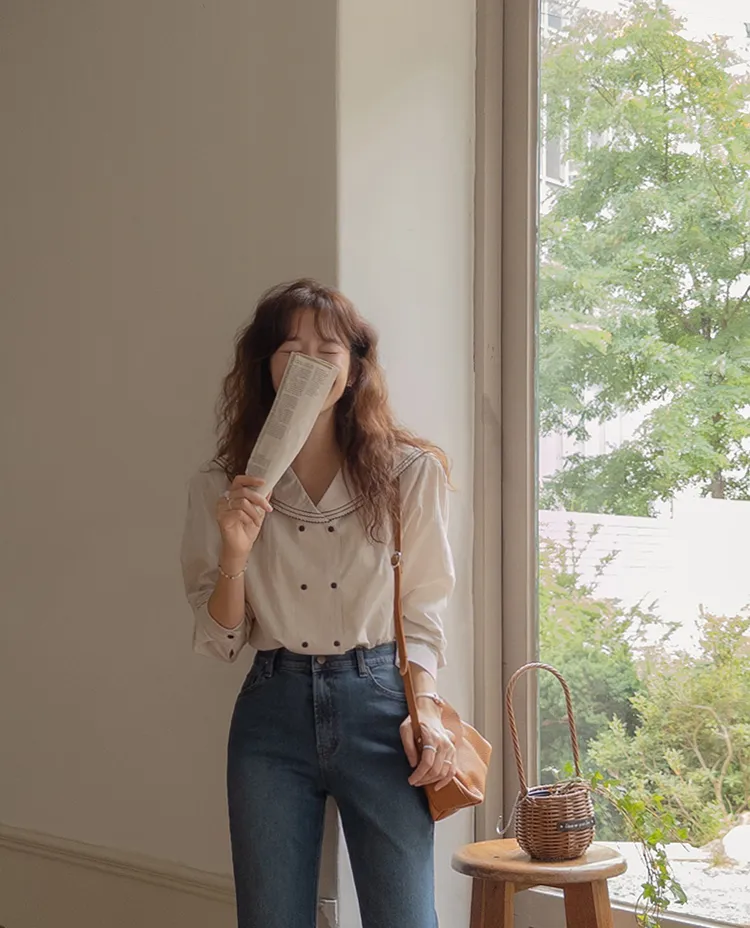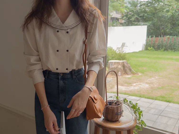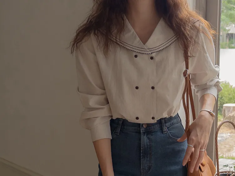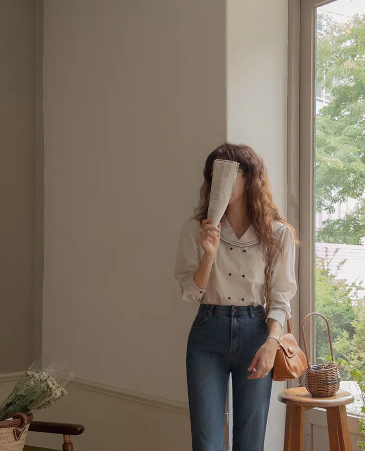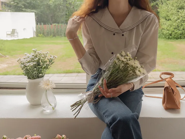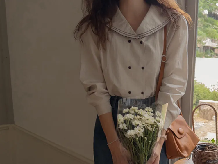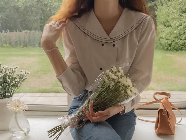 【即將到來的季節的上衣♥】【和褲子和裙子都好穿搭! 】【荷葉邊披肩領設計浪漫情調~】【永遠不會過時,每年都適合穿]