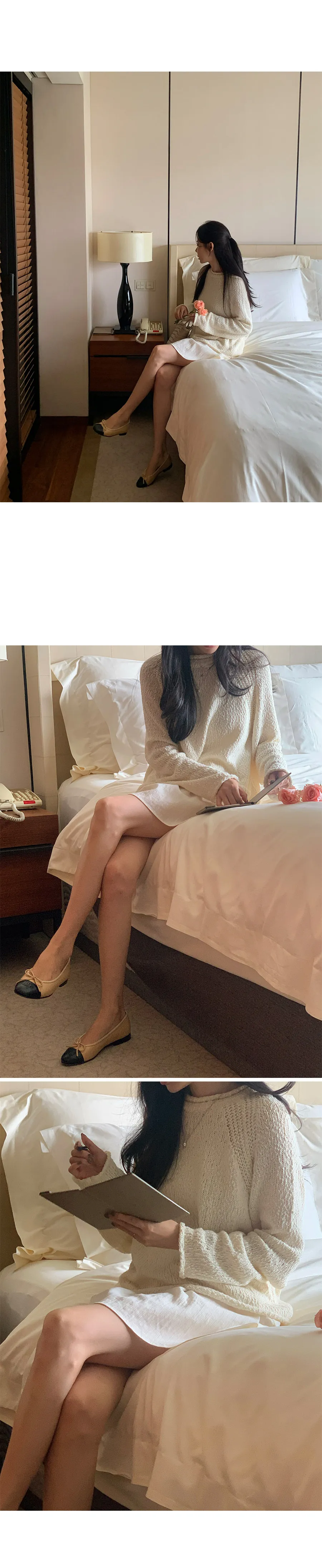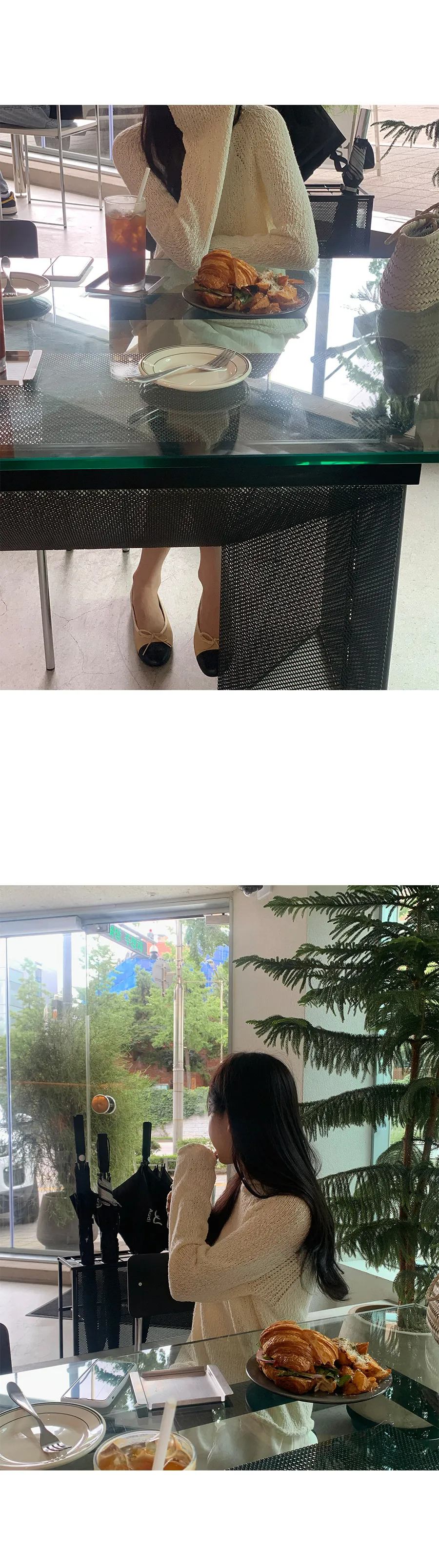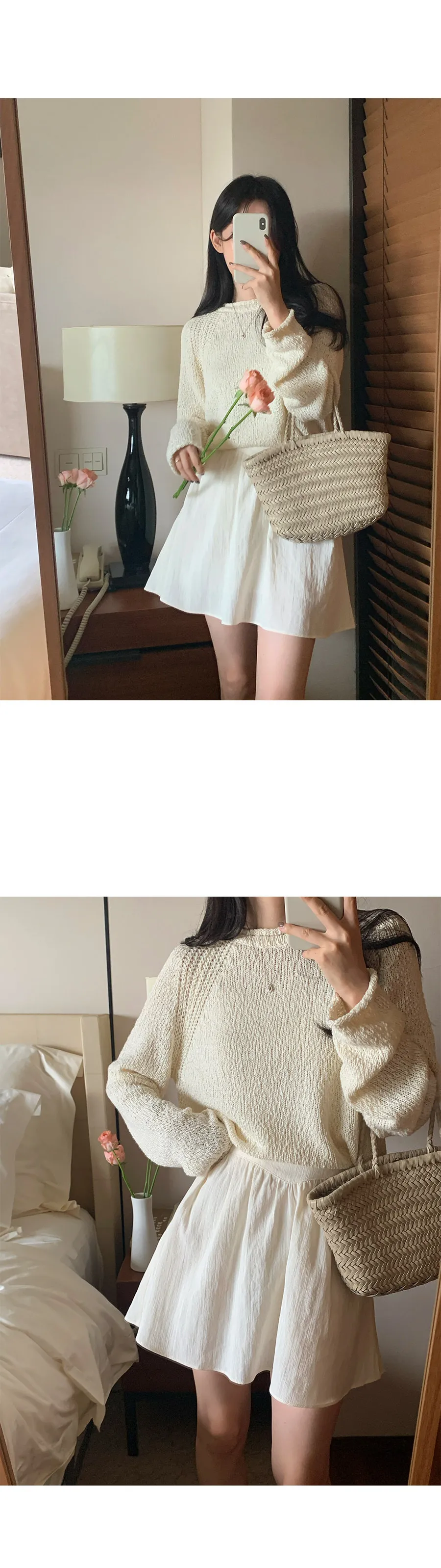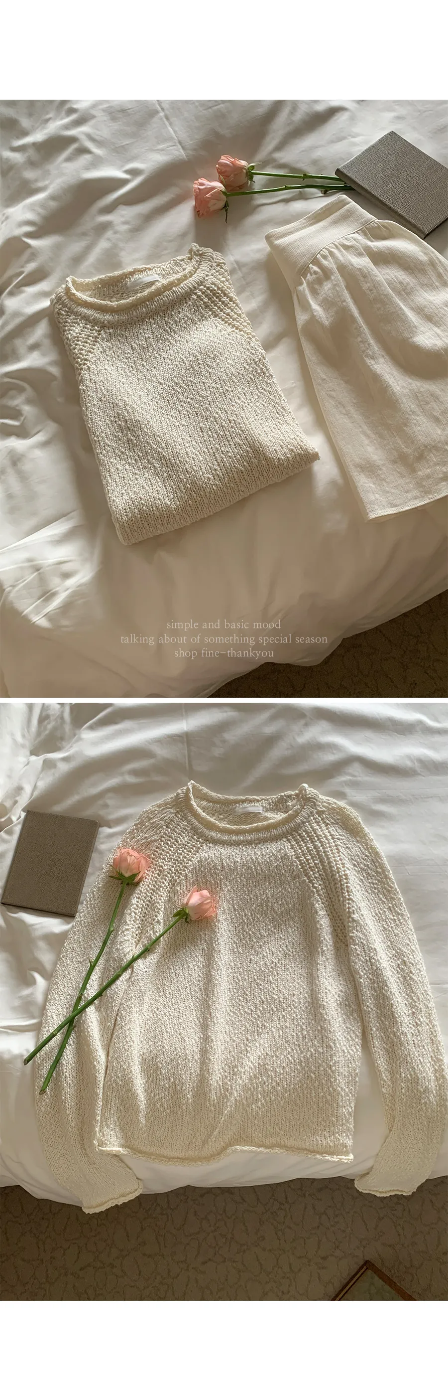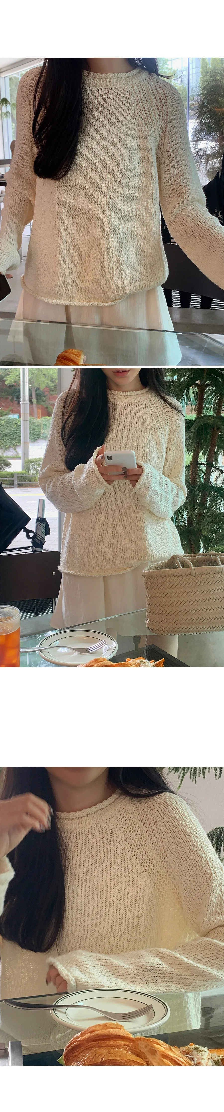 精緻剪裁!領口和袖口的捲邊細節增添了可愛點,無肩線的連肩袖設計打造出自然的針織服裝:)