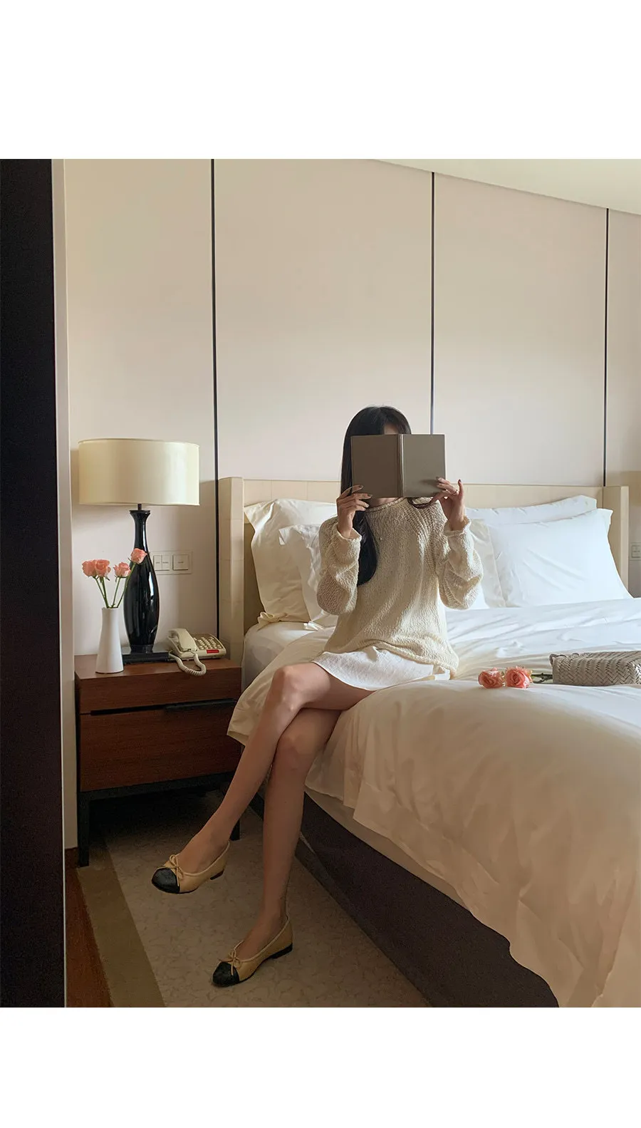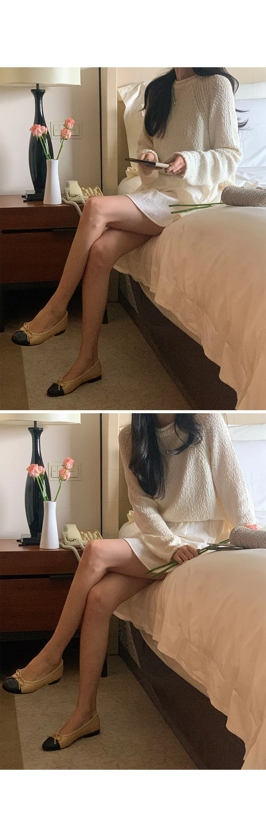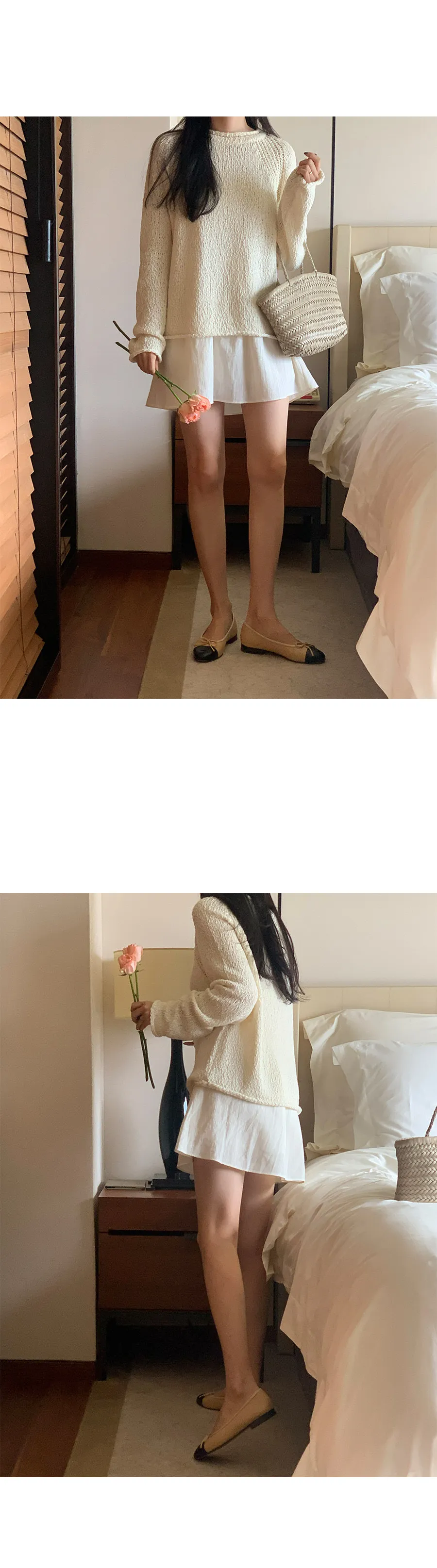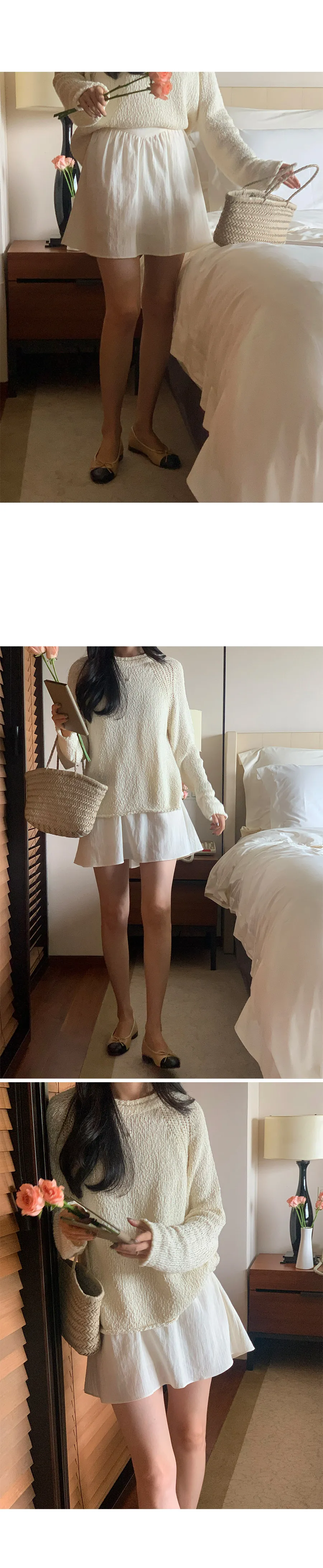 可愛領口袖端捲邊連肩袖針織上衣