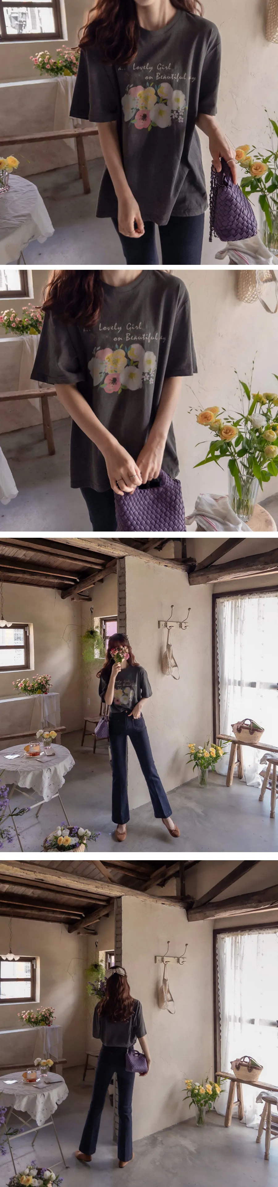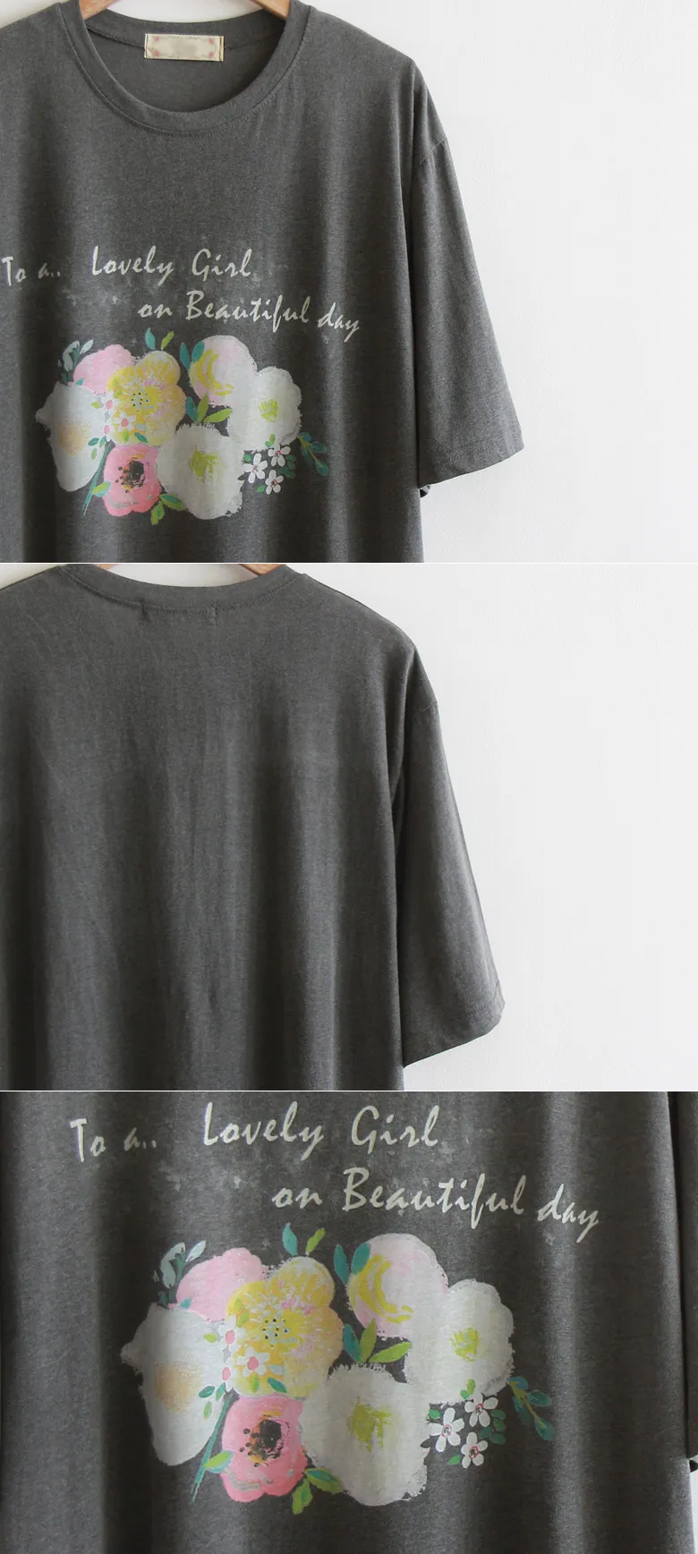 [生物洗滌處理] [跨季節] [花朵印花的明亮設計] [字母印花增添歡快的風格] [舒適合身,適合日常穿著的時尚T卹]