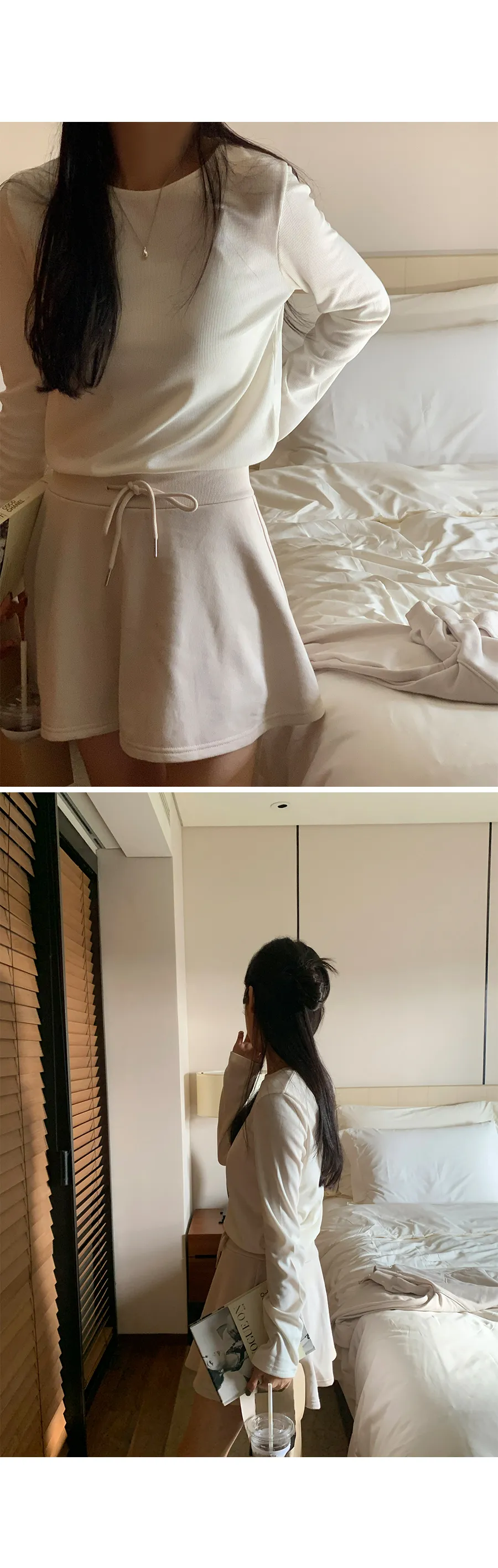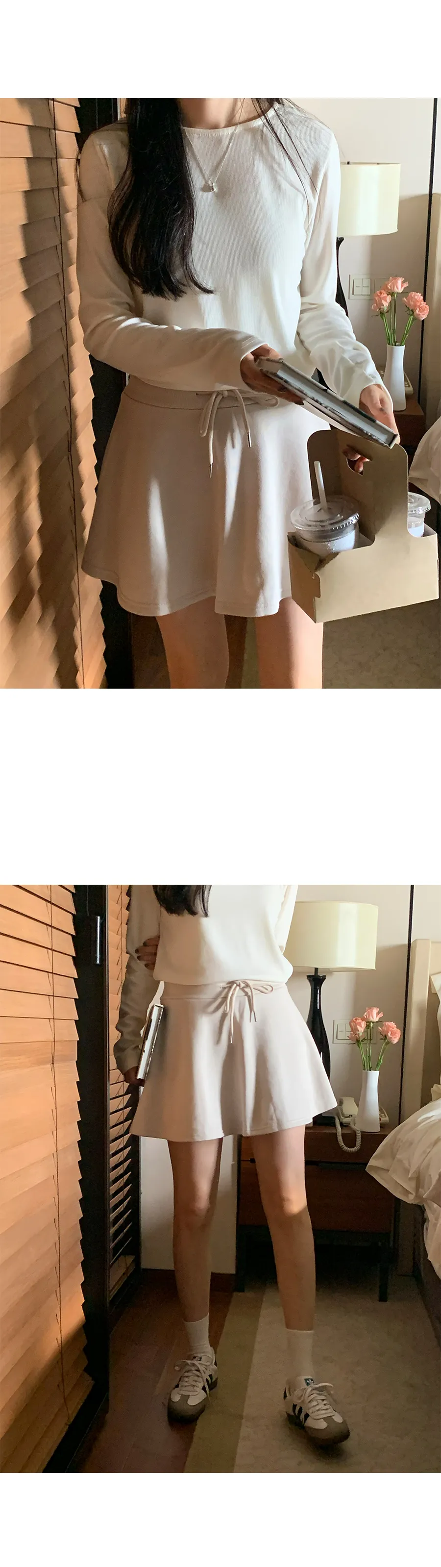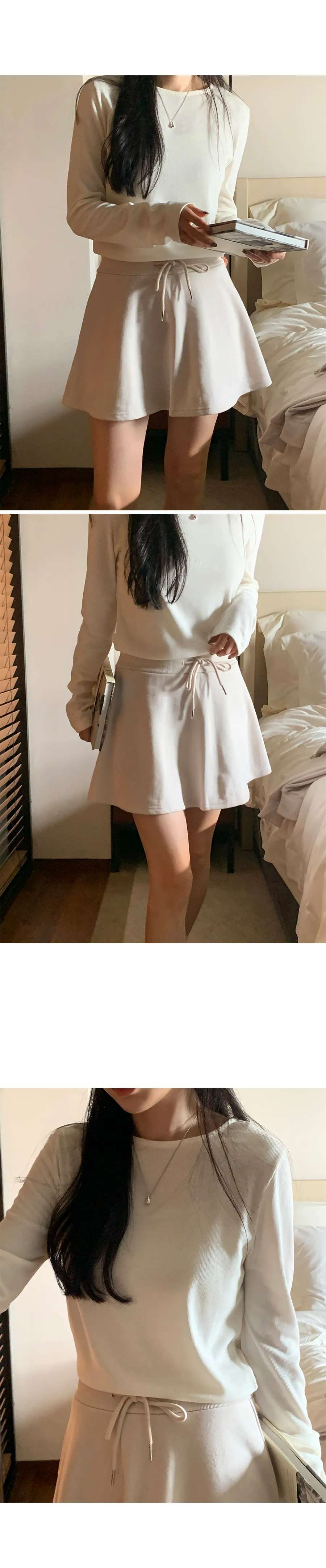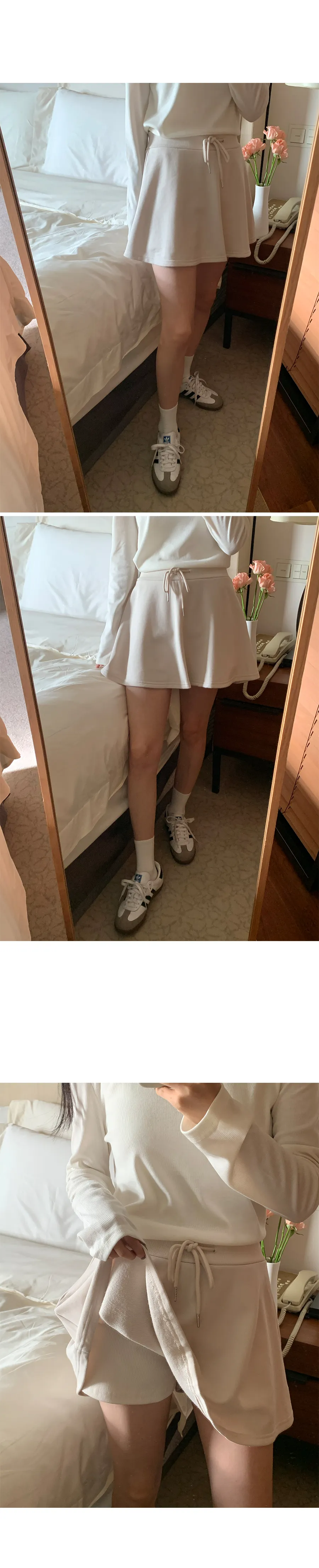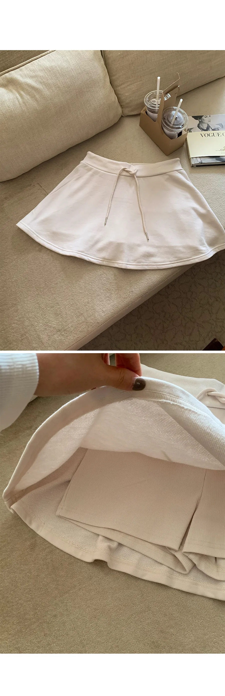 舒適彈性A字線腰綁帶羅紋褲內襯短褲裙