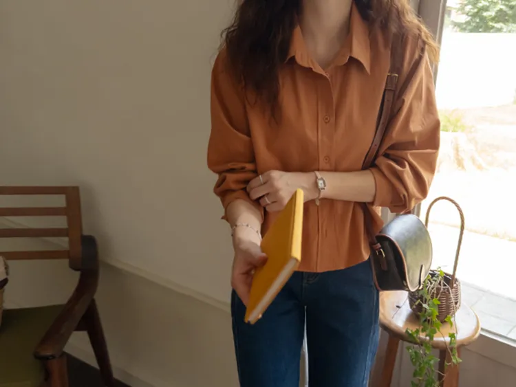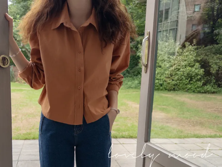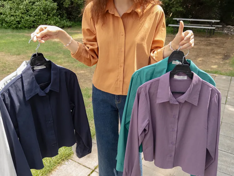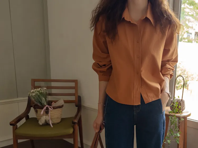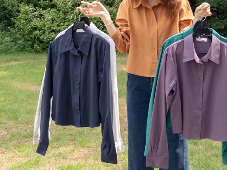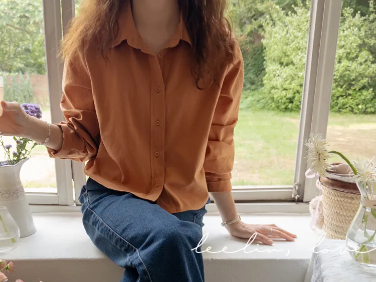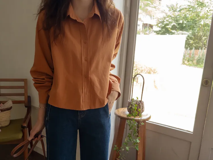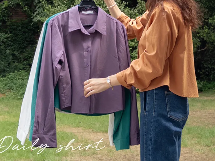 [隱藏細節的高品質襯衫♡][100%棉質純棉,耐穿~][比例良好的半短款][換季完美契合的5種顏色]