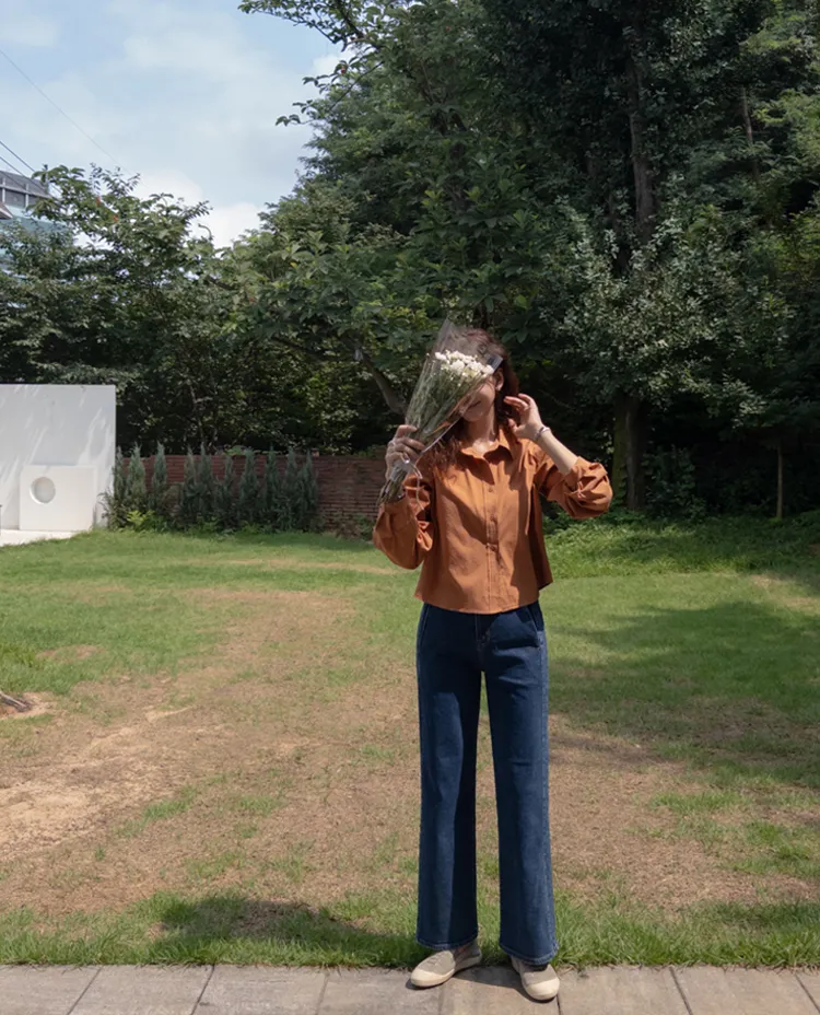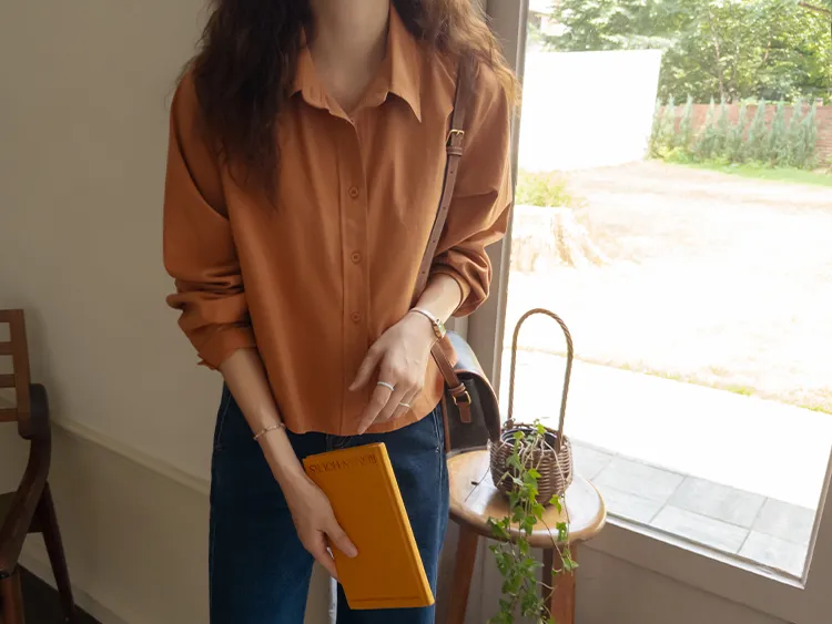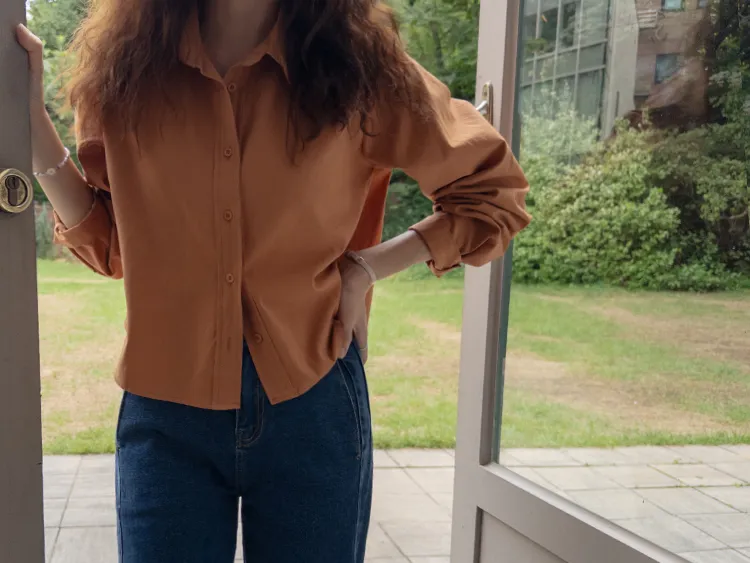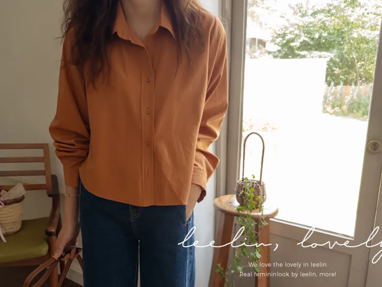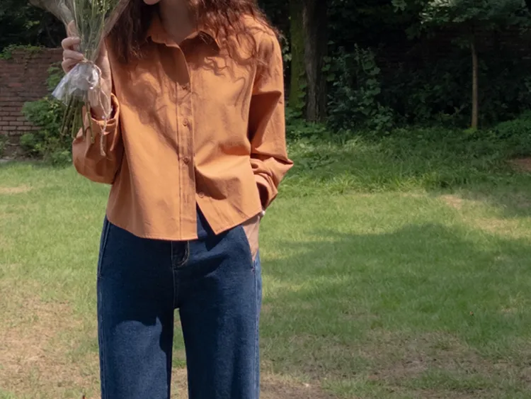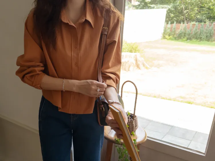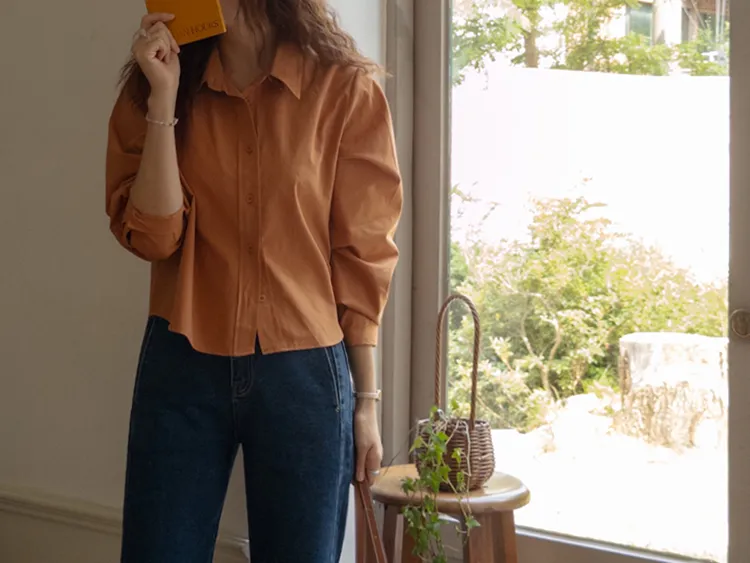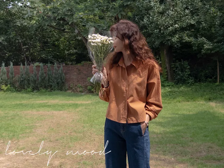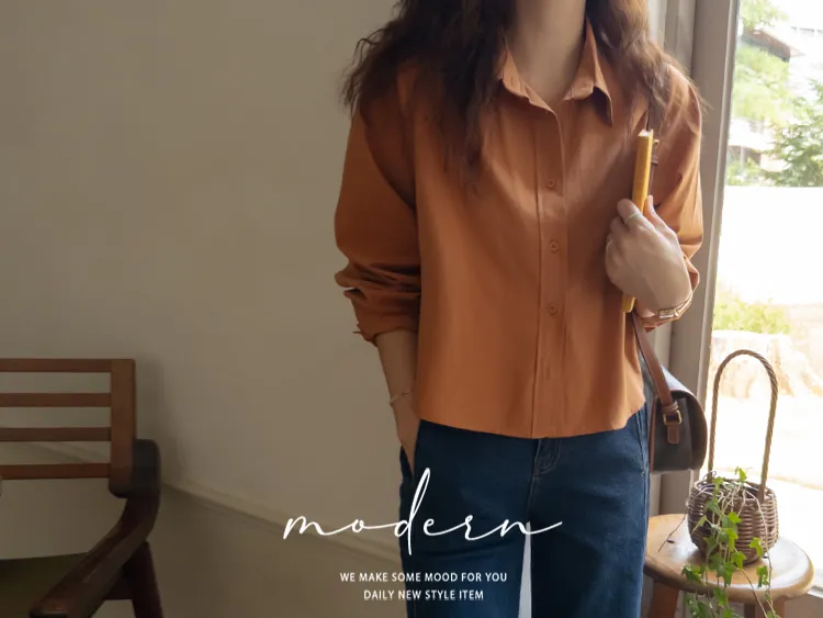 迷人秋色俐落剪裁衣領半短款襯衫