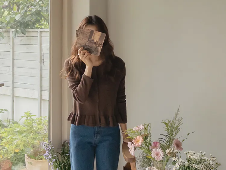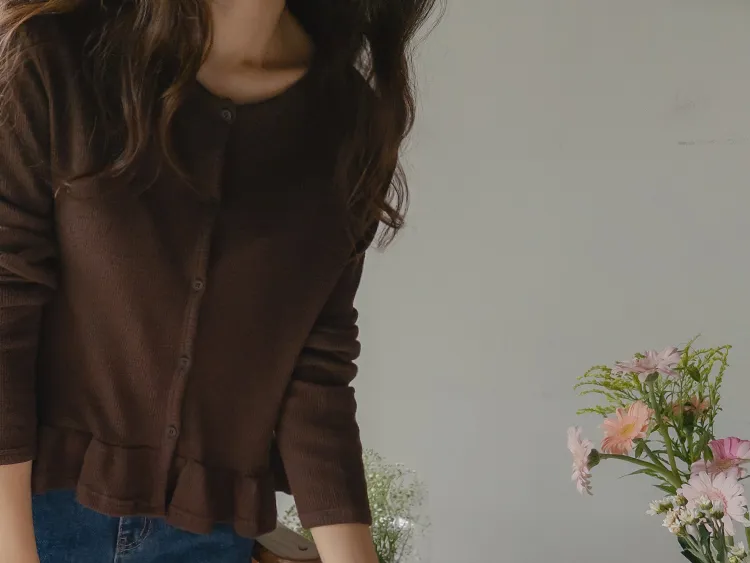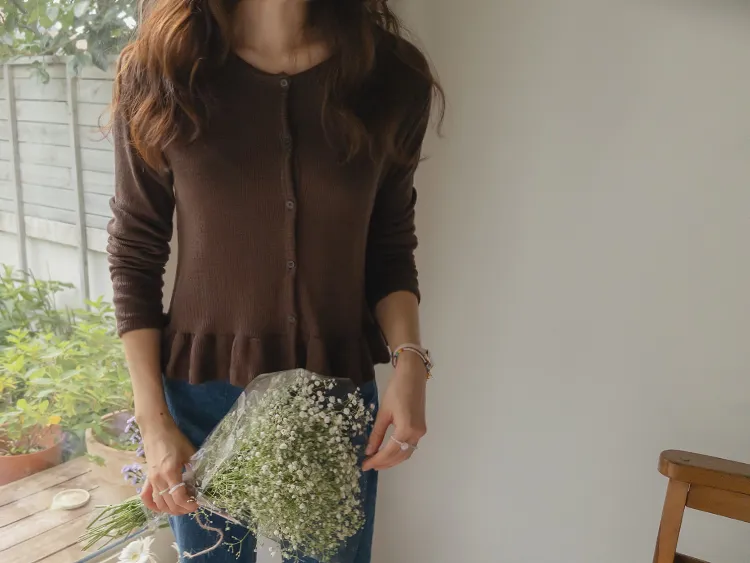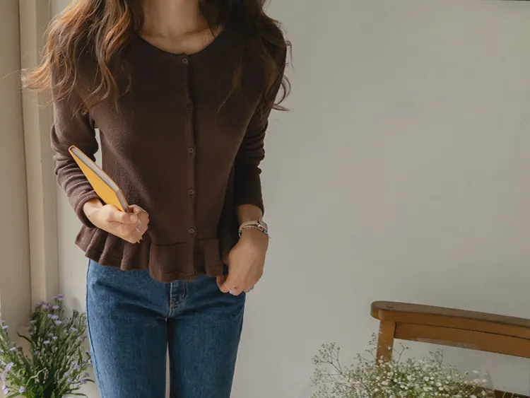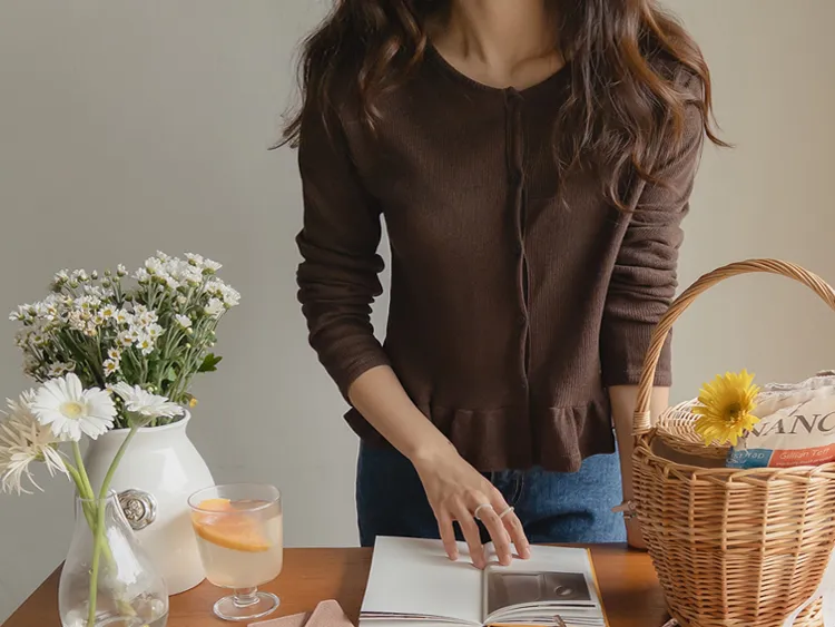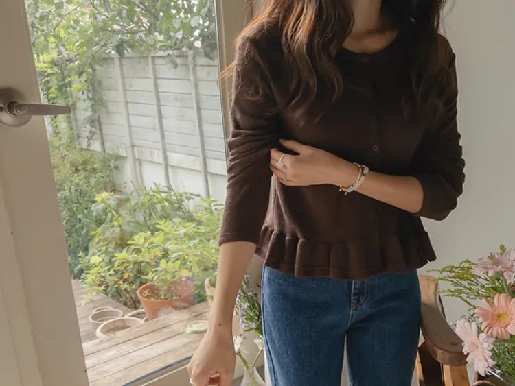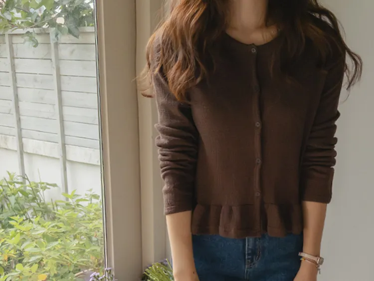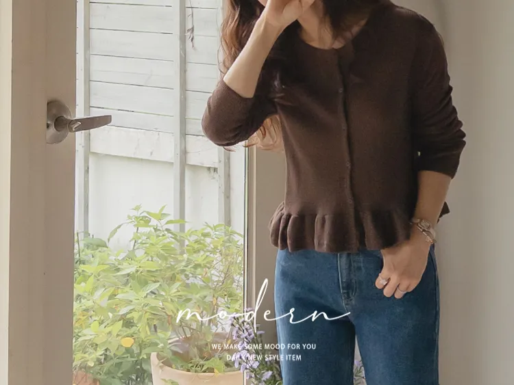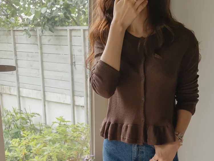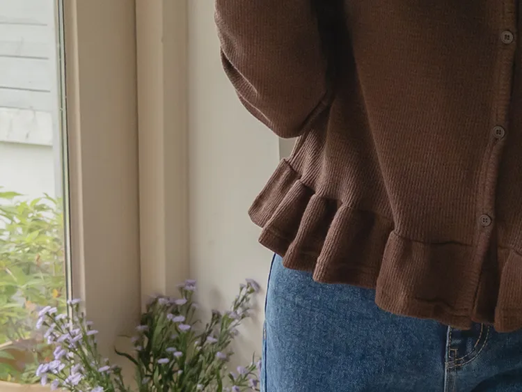 可愛摺邊下擺華夫格編織開衫