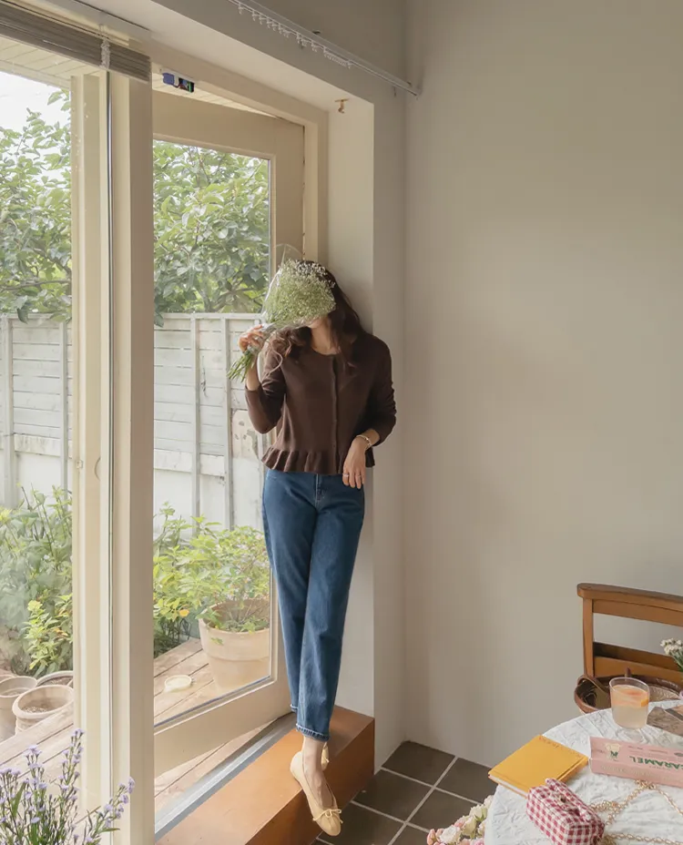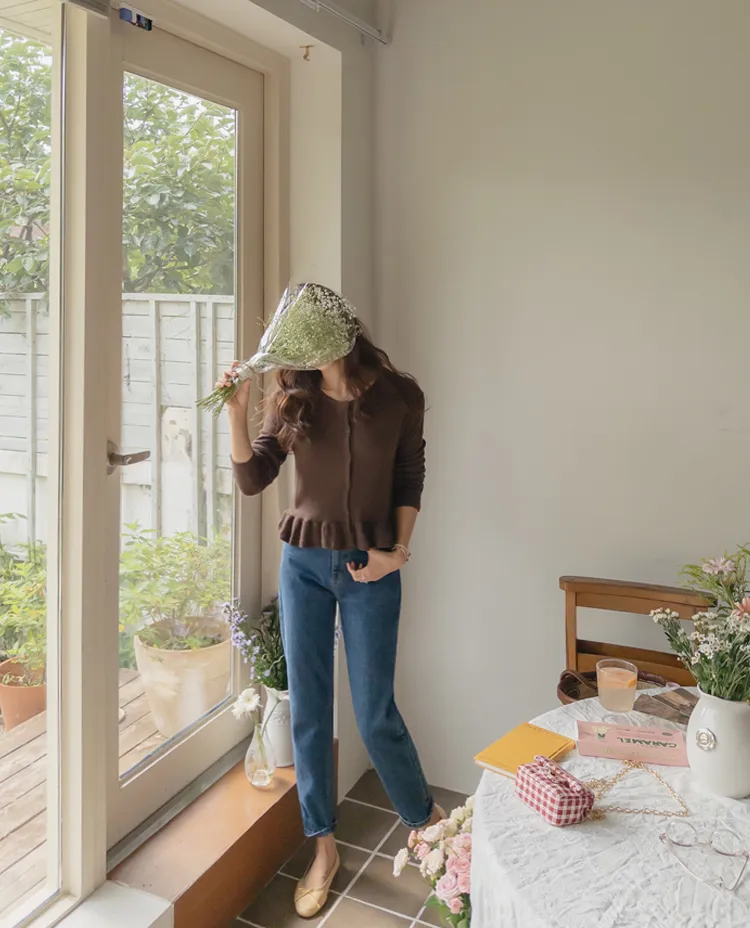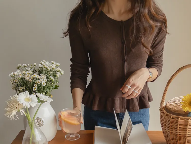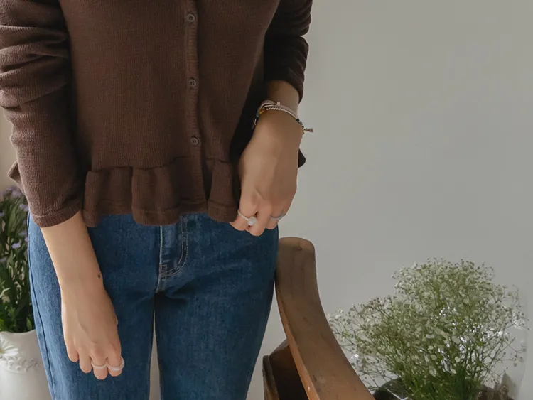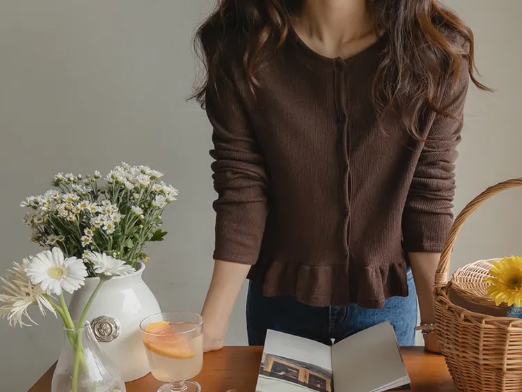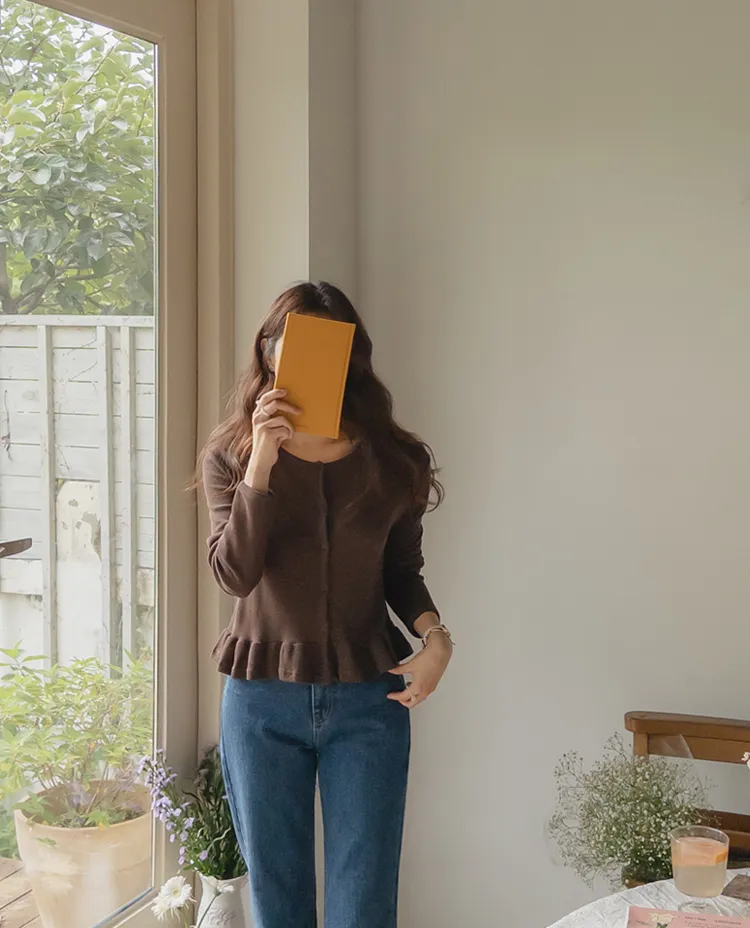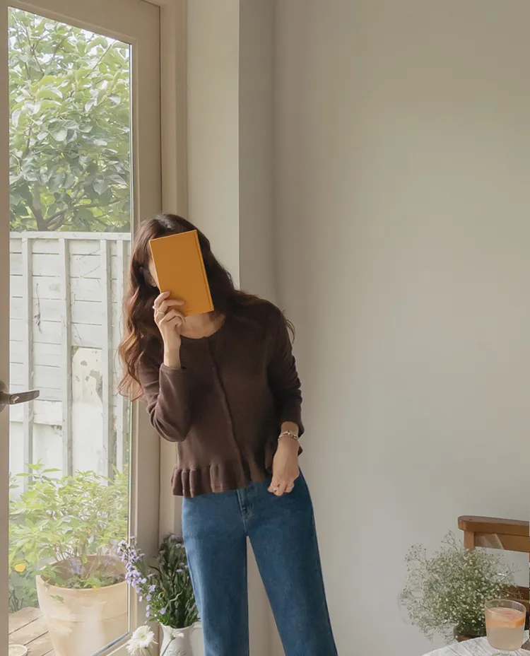 可愛摺邊下擺華夫格編織開衫