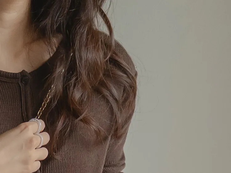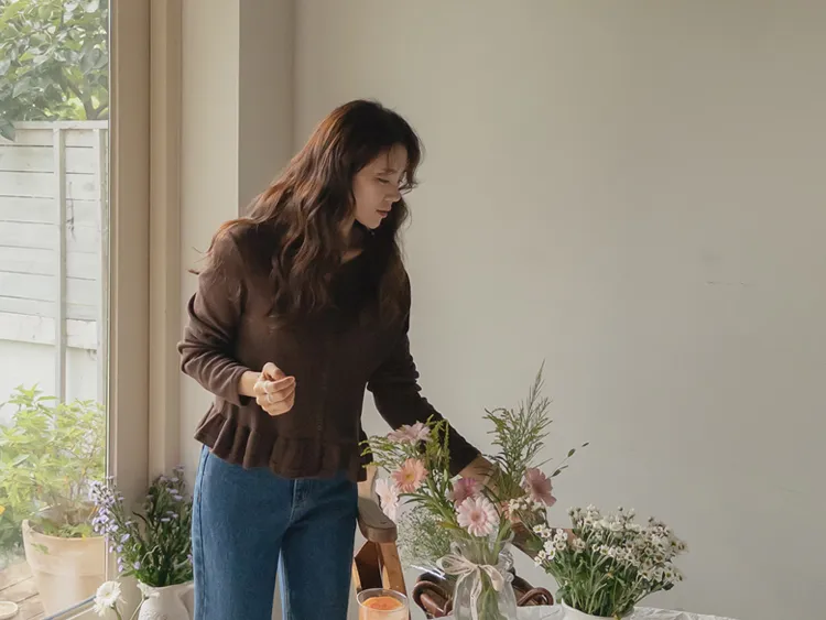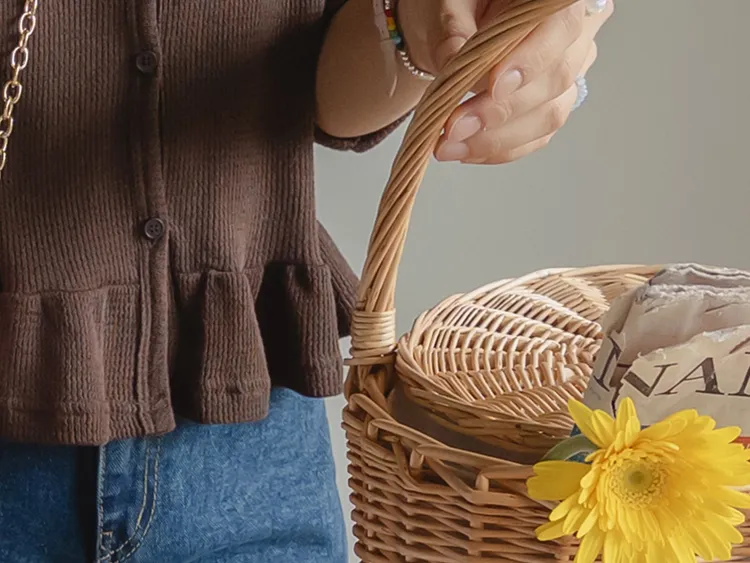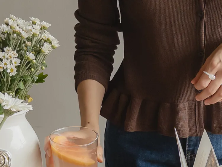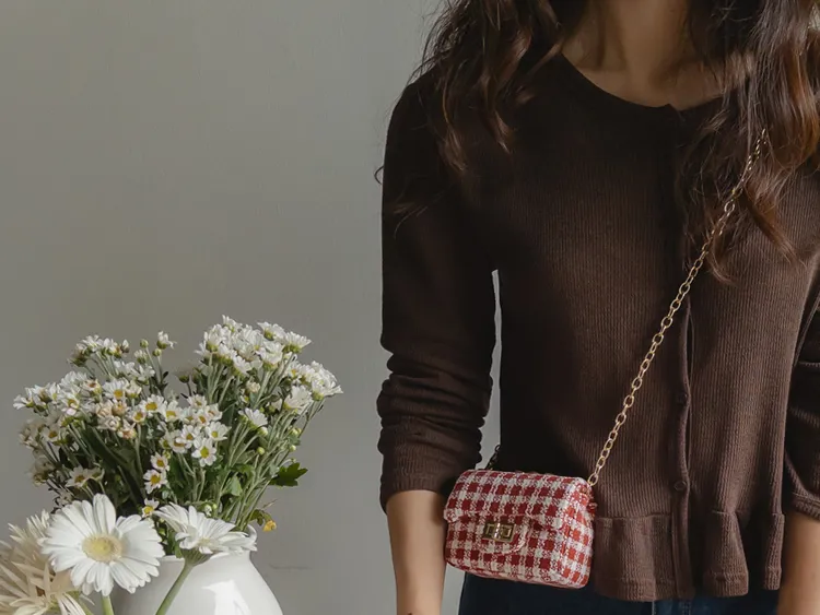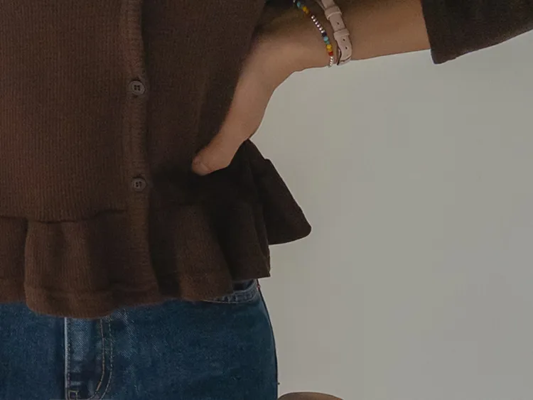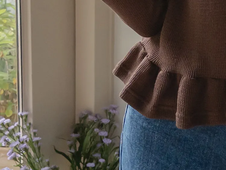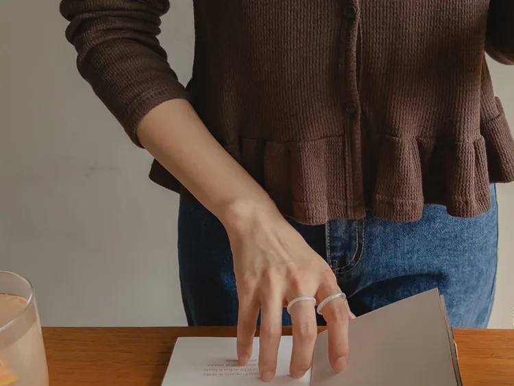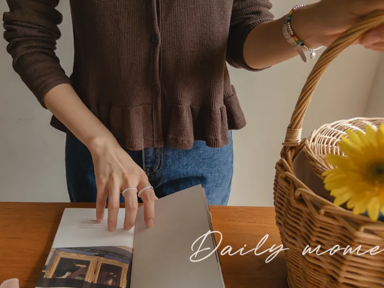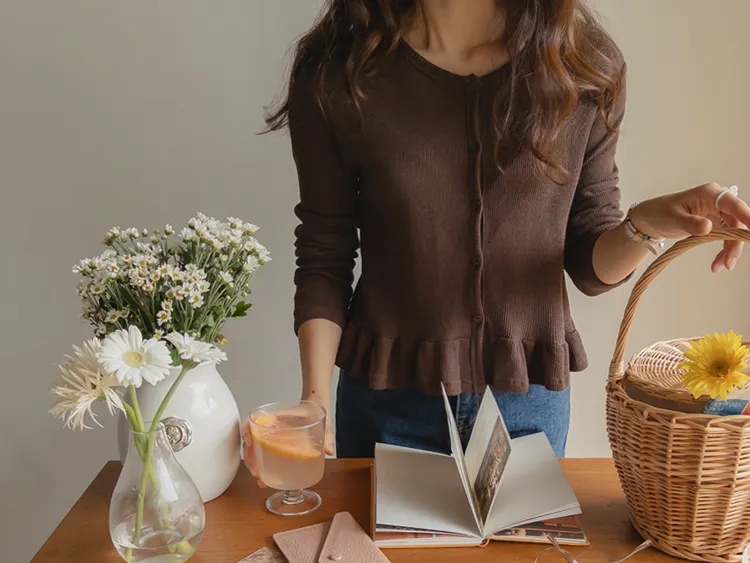 可愛摺邊下擺華夫格編織開衫