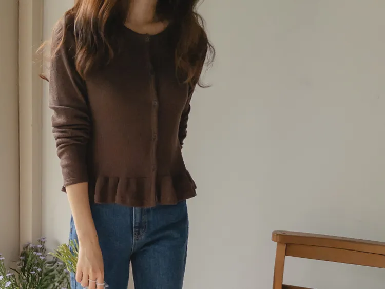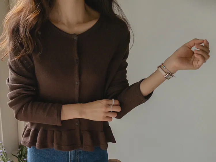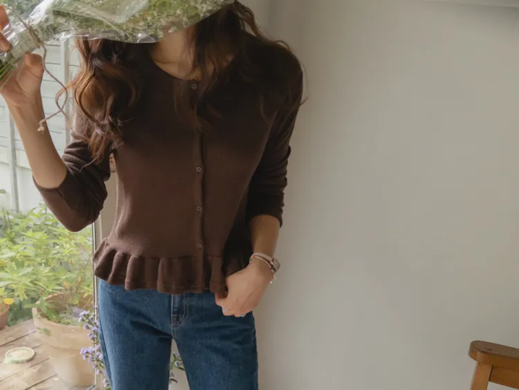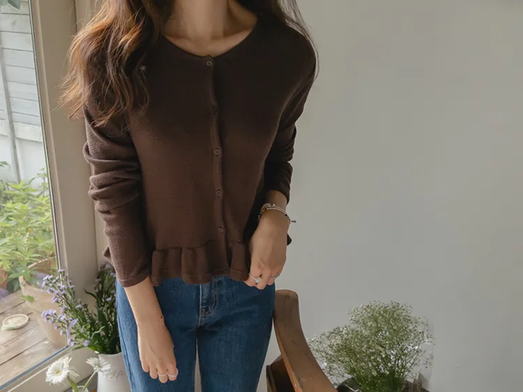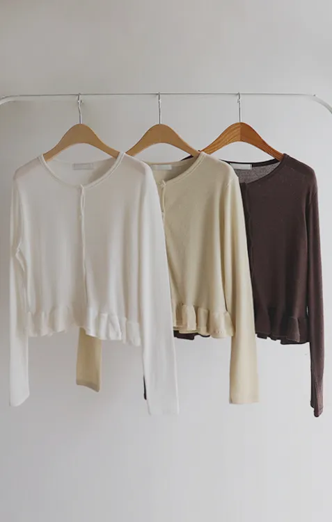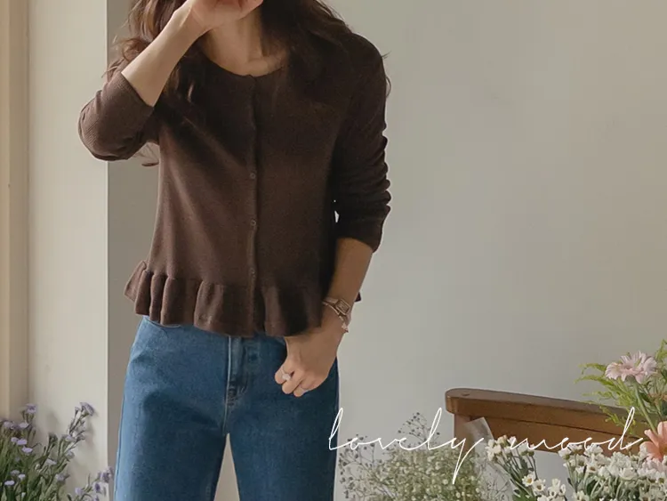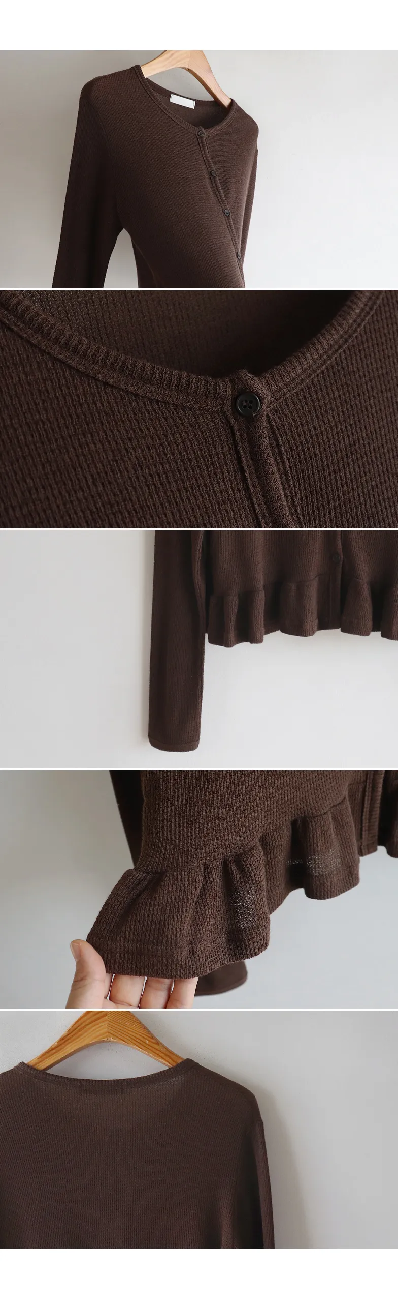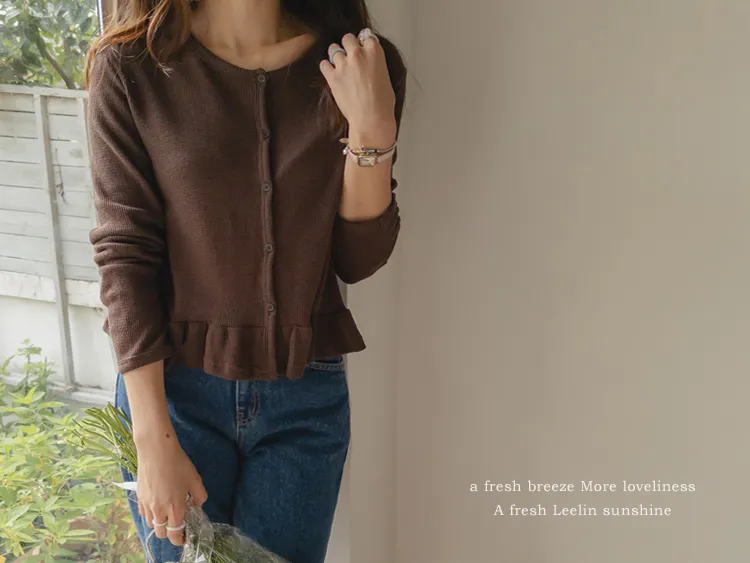 [適合即將到來季節的褶邊開衫♥] [底部的褶邊細節讓可愛加倍~] [迷你華夫格編織! ] [可以與褲子和裙子搭配! ]