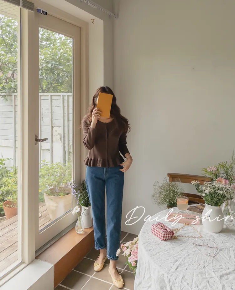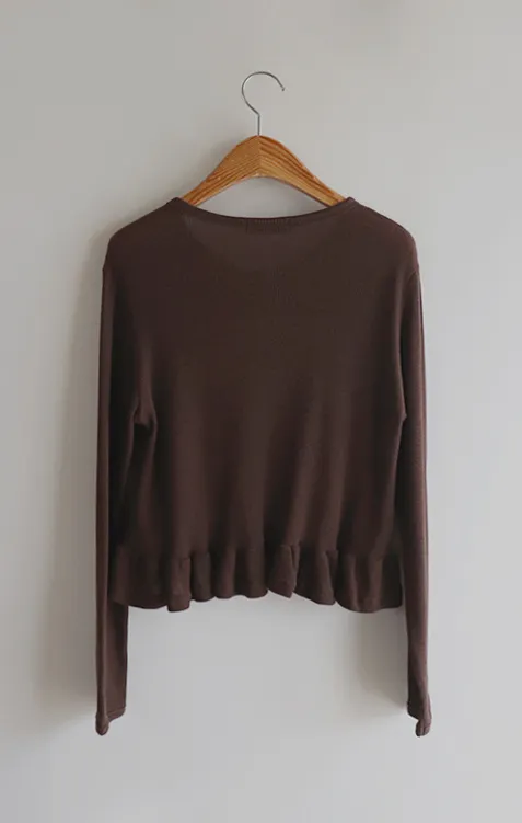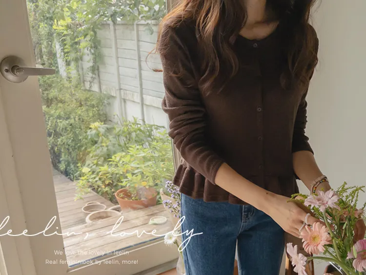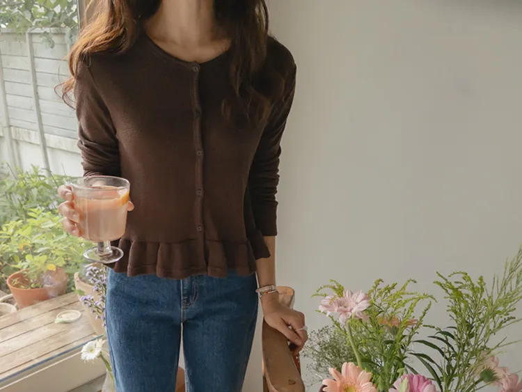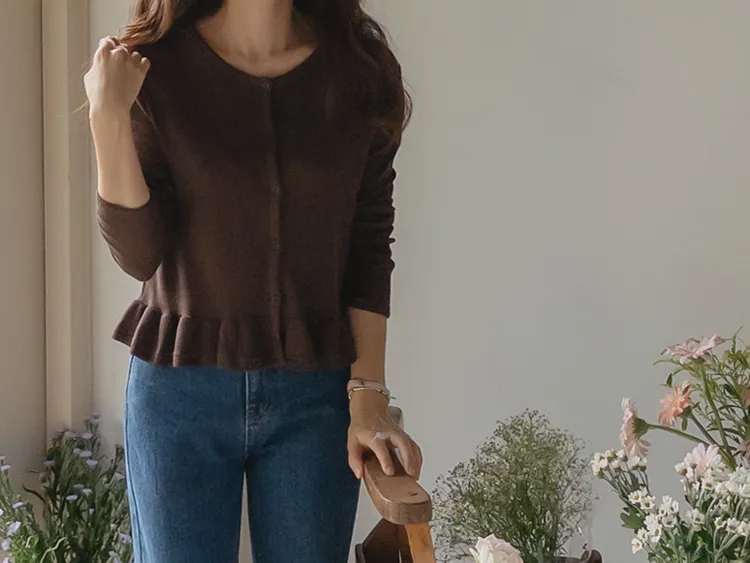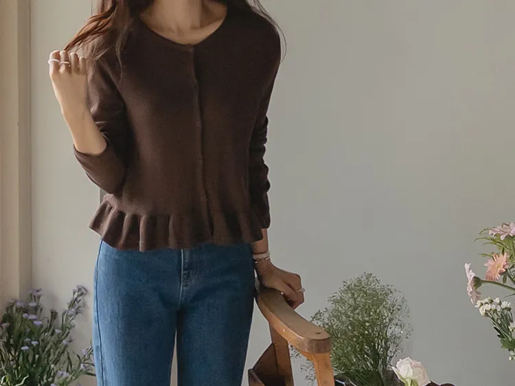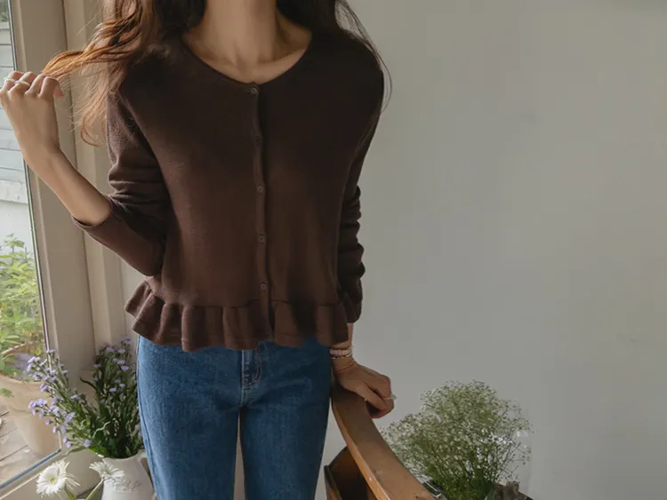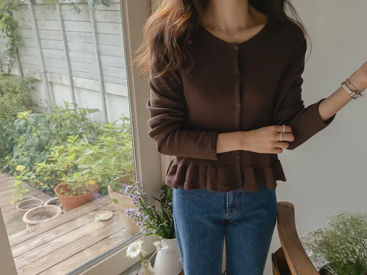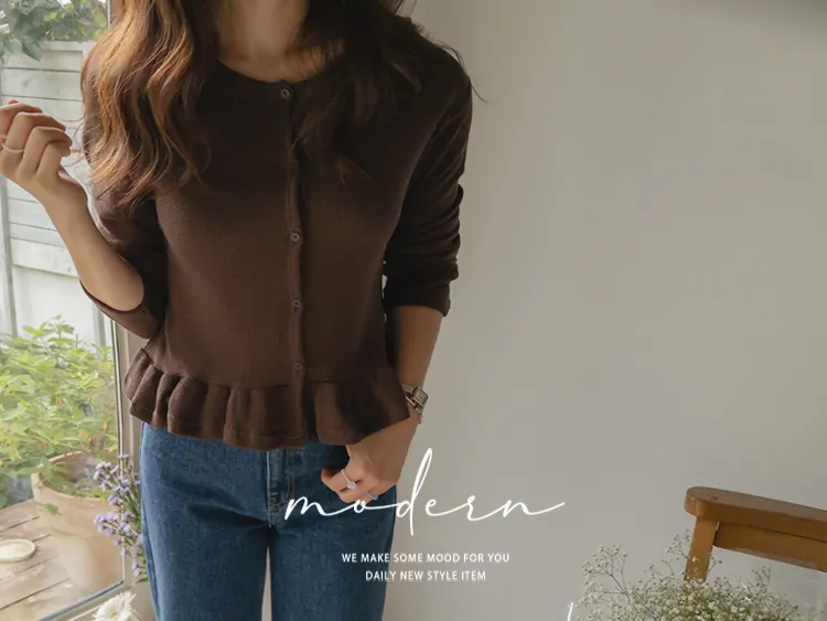 [適合即將到來季節的褶邊開衫♥] [底部的褶邊細節讓可愛加倍~] [迷你華夫格編織! ] [可以與褲子和裙子搭配! ]
