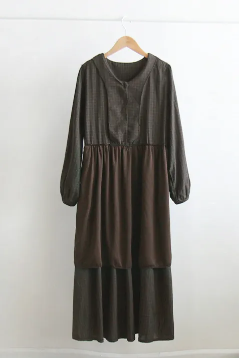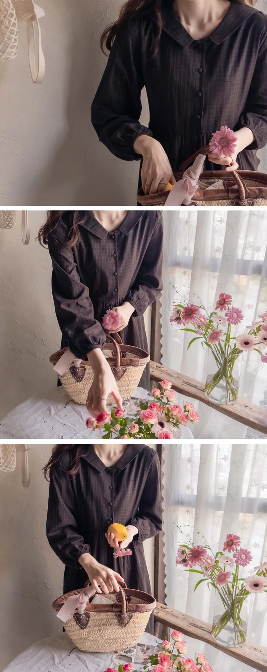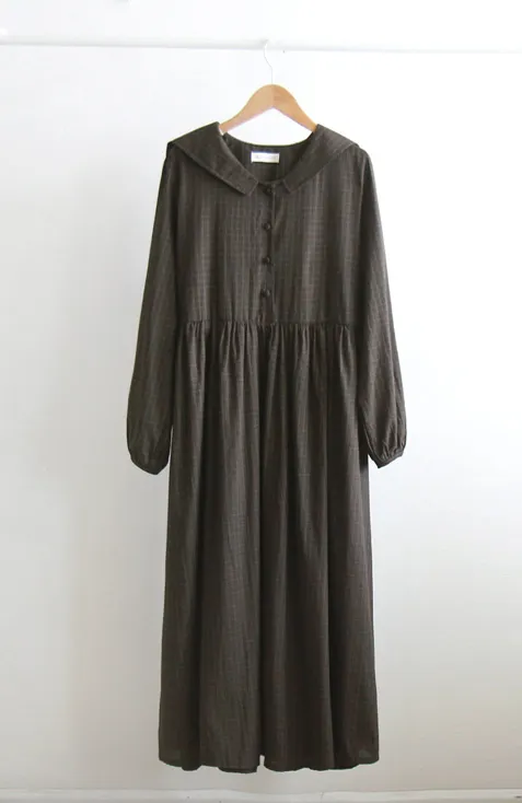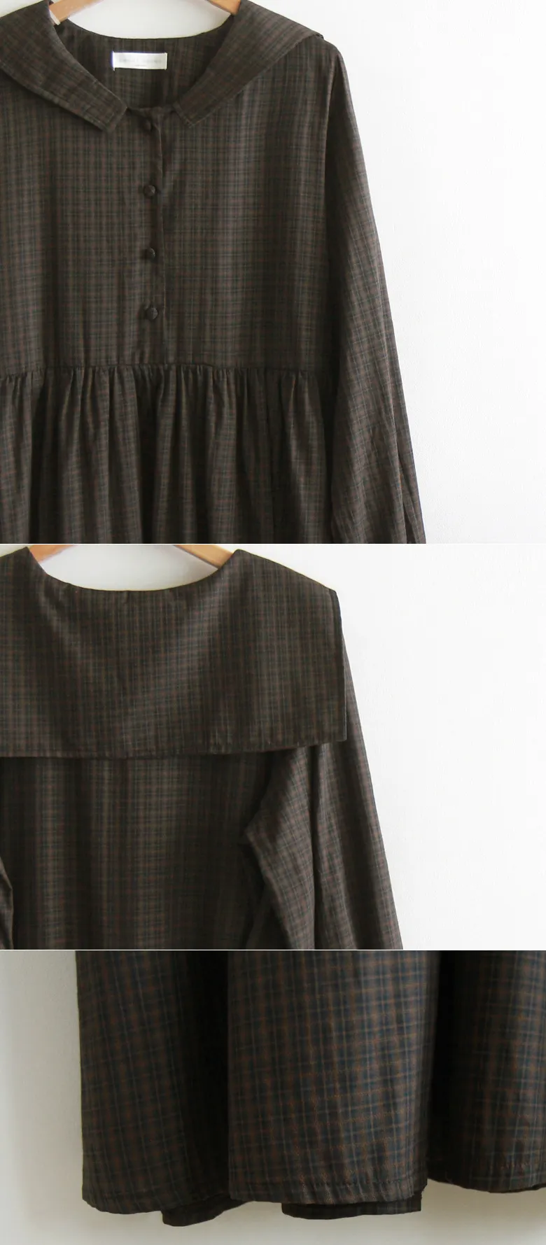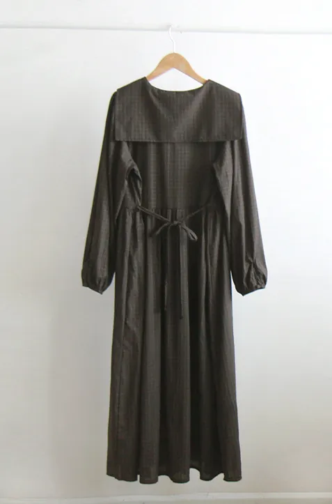 [僅裙子部分的襯裡:聚酯纖維] [可鈕扣帶閉合] [透過繫緊腰帶完成時尚合身:連接] [充滿秋意的格紋圖案跨季連身裙] [腰部以下剪裁營造出可愛的心情] [推薦作為時尚合身和秋季感性的連身裙]