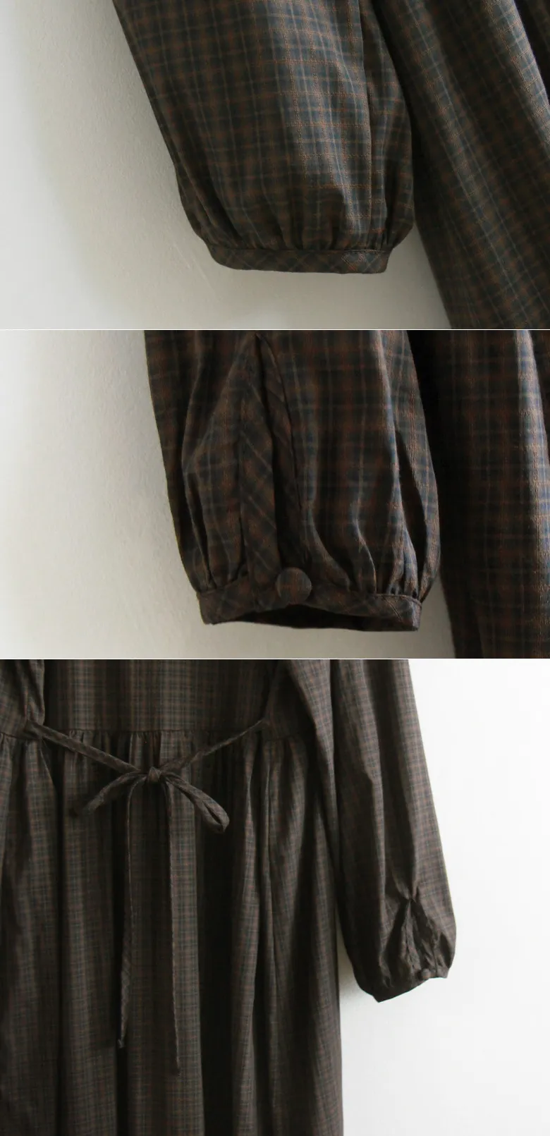 秋季感性優雅剪裁後綁帶格紋連身裙
