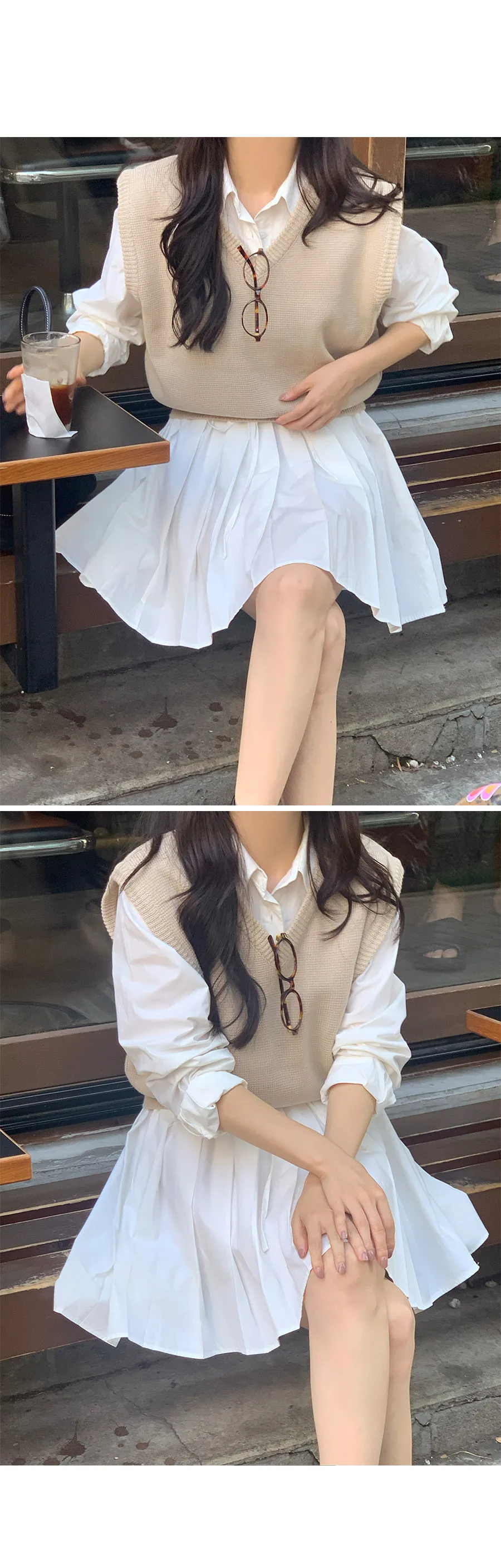 摩登氣息襯衫領腰綁帶摺線裙擺連身裙