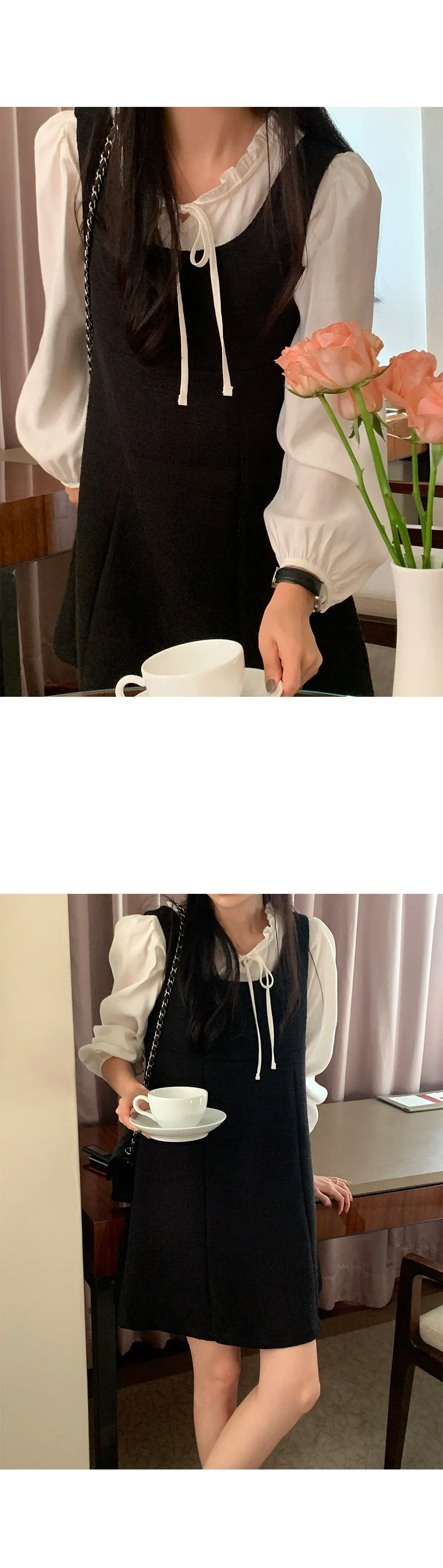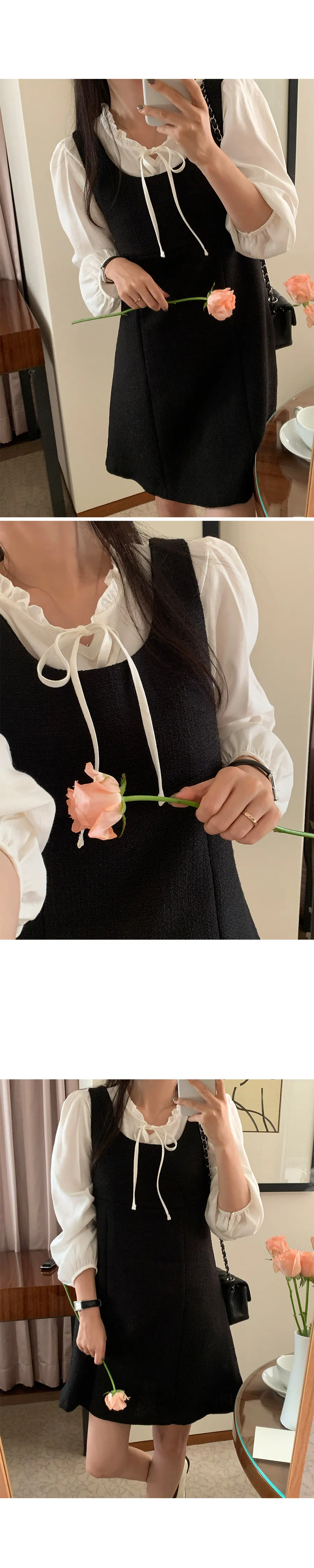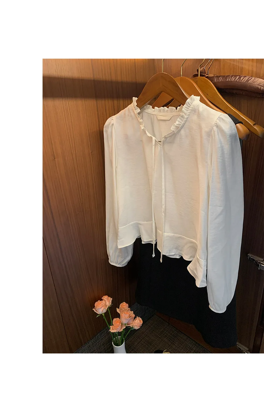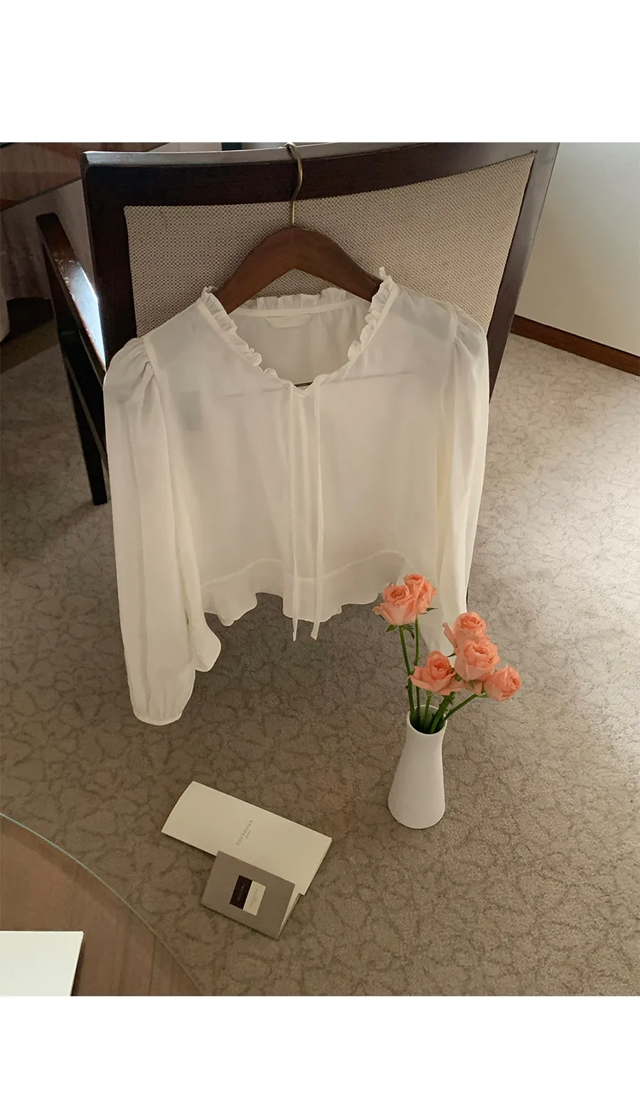 浪漫波浪邊領綁帶下擺微傘擺線條上衣