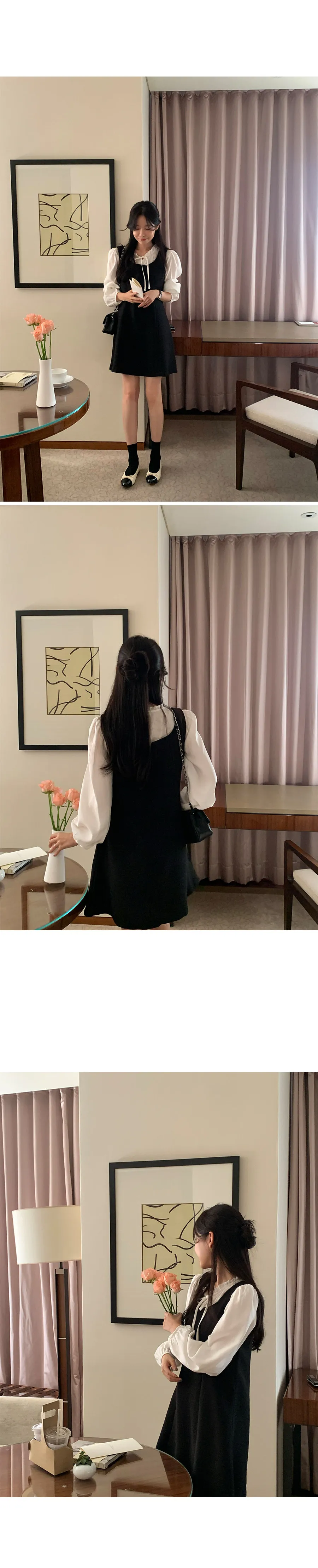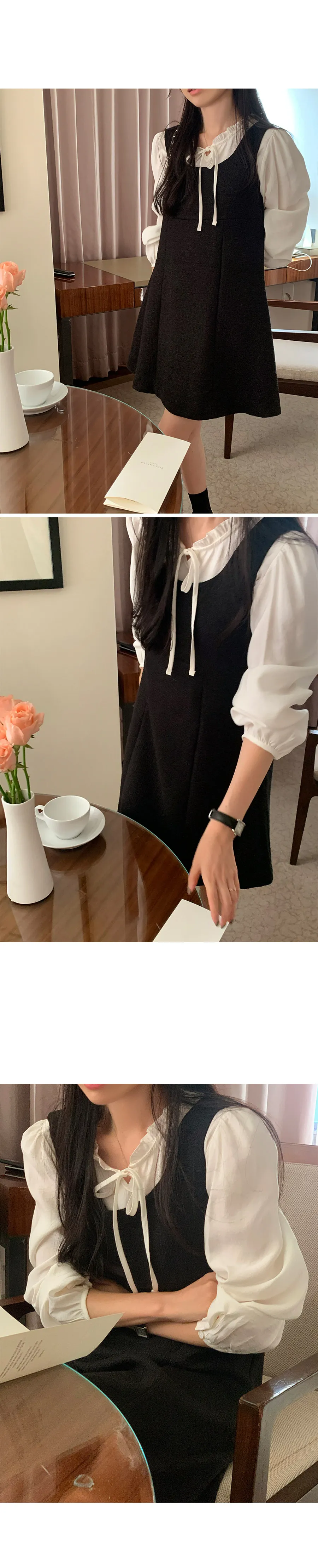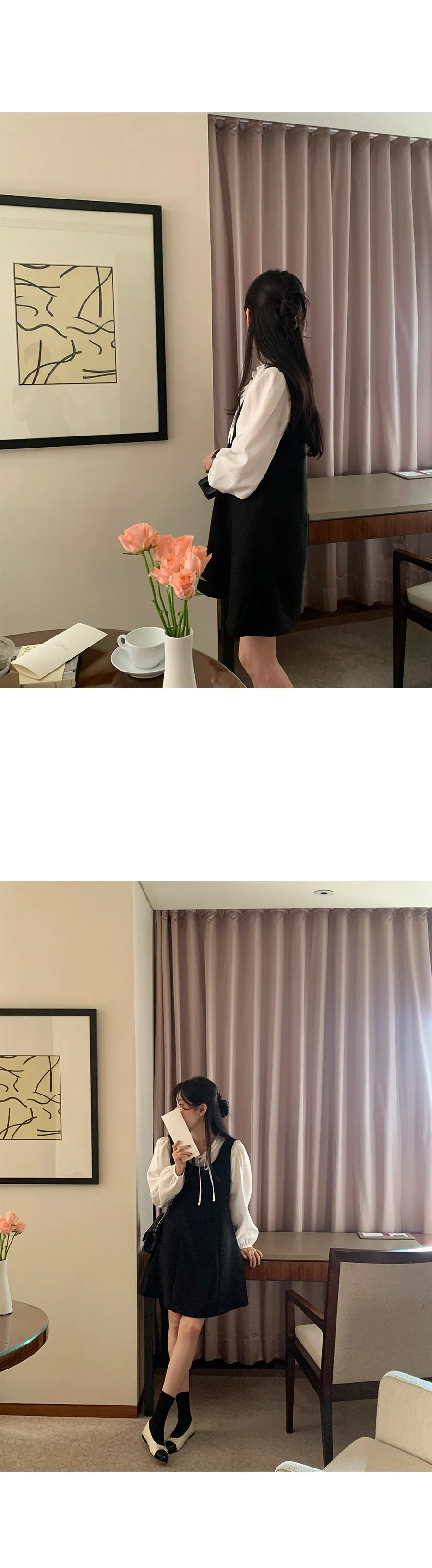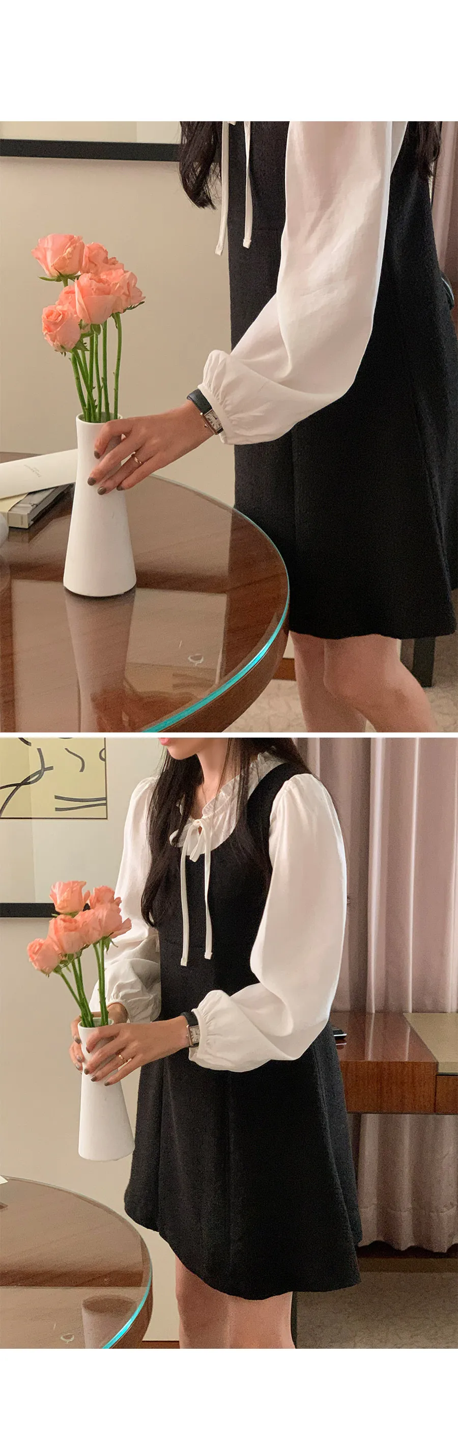 浪漫波浪邊領綁帶下擺微傘擺線條上衣