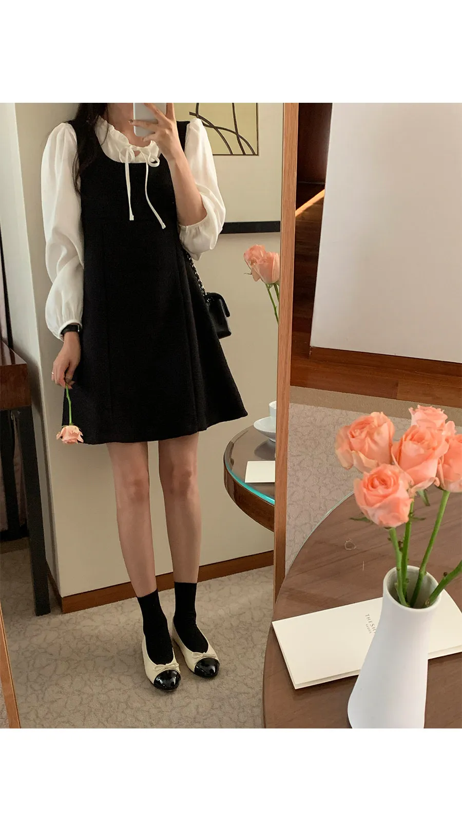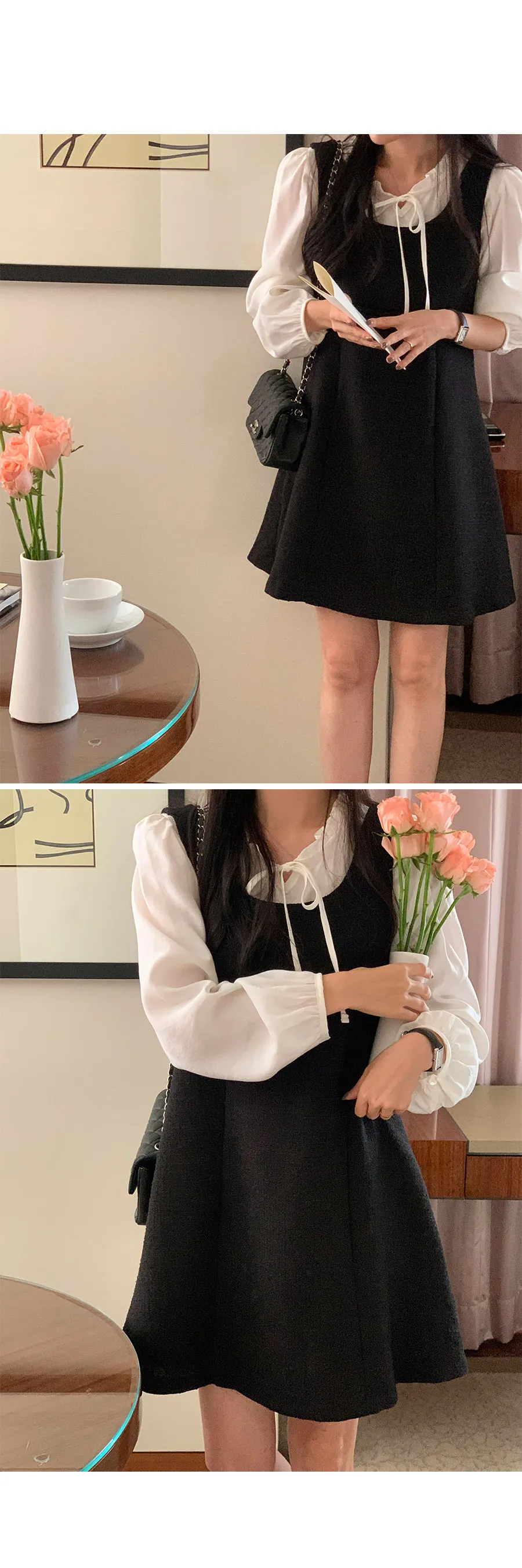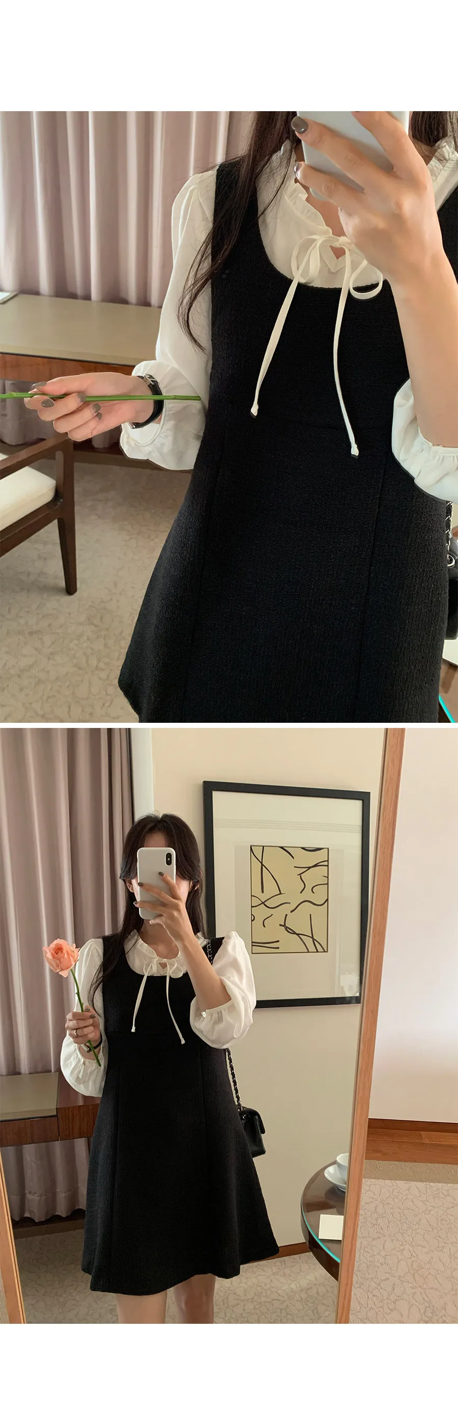 可愛輪廓圓潤腰線A字版型花呢連身裙