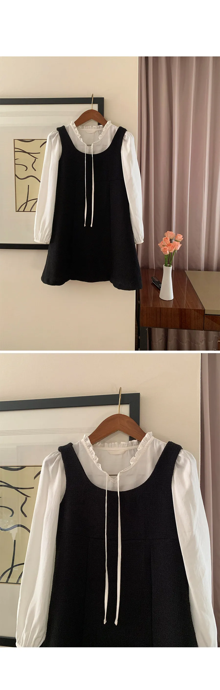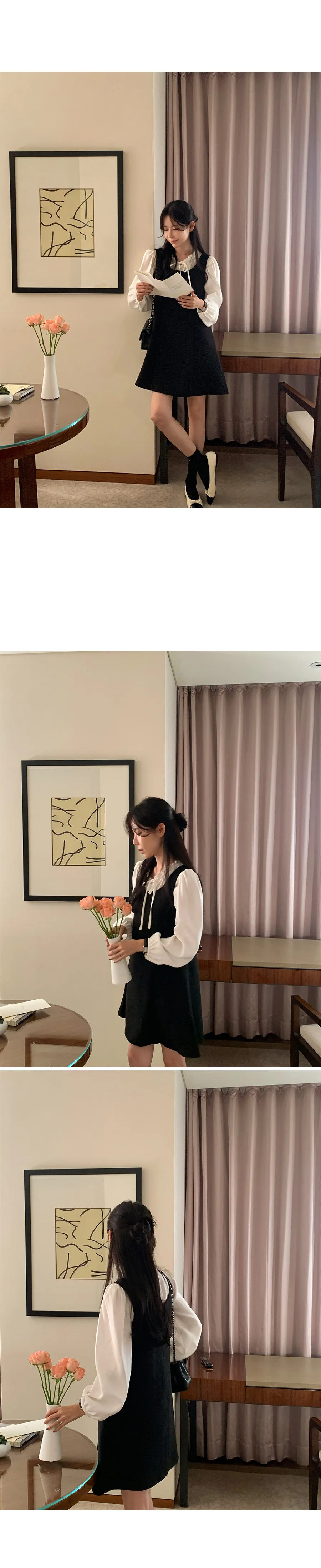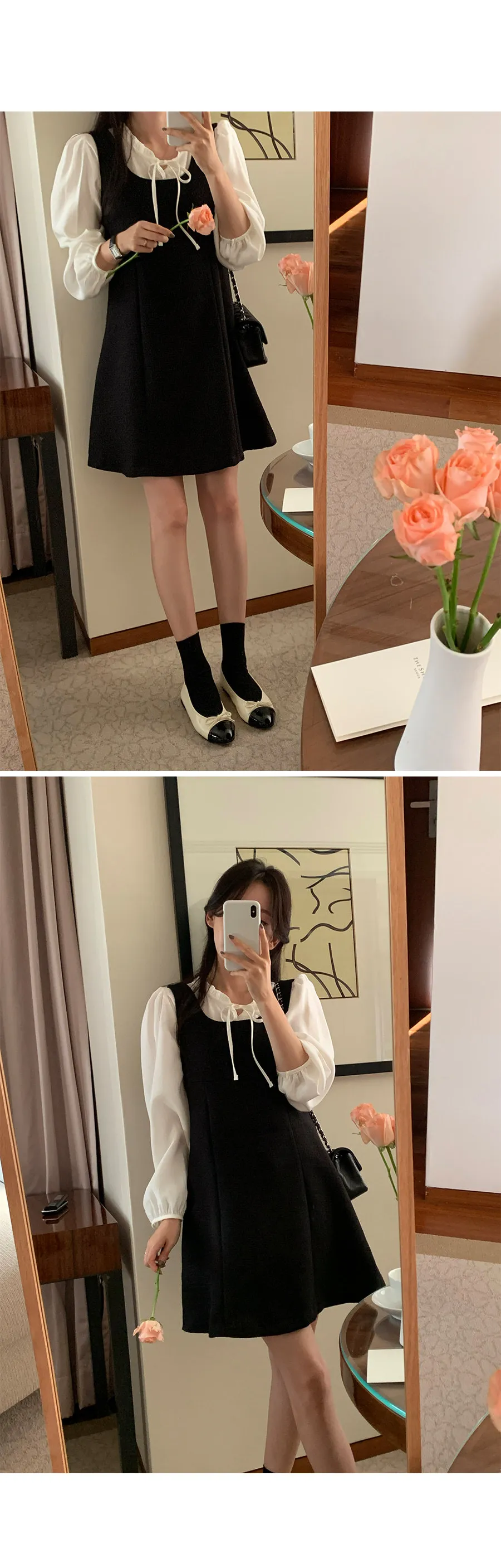可愛輪廓圓潤腰線A字版型花呢連身裙