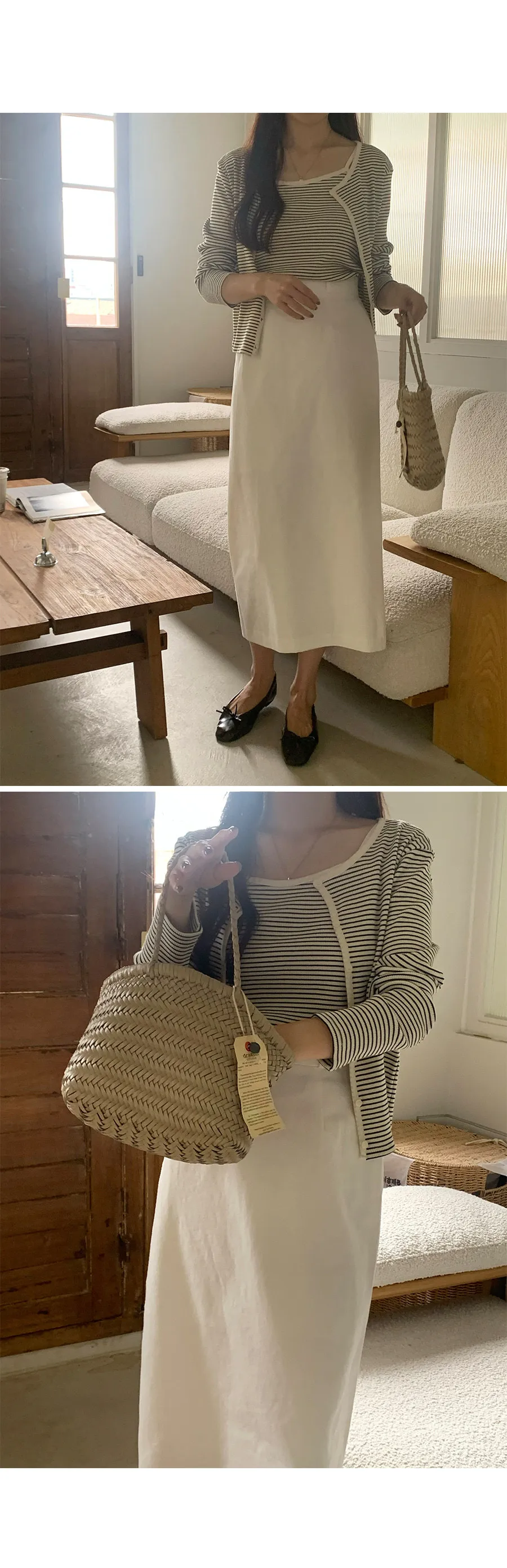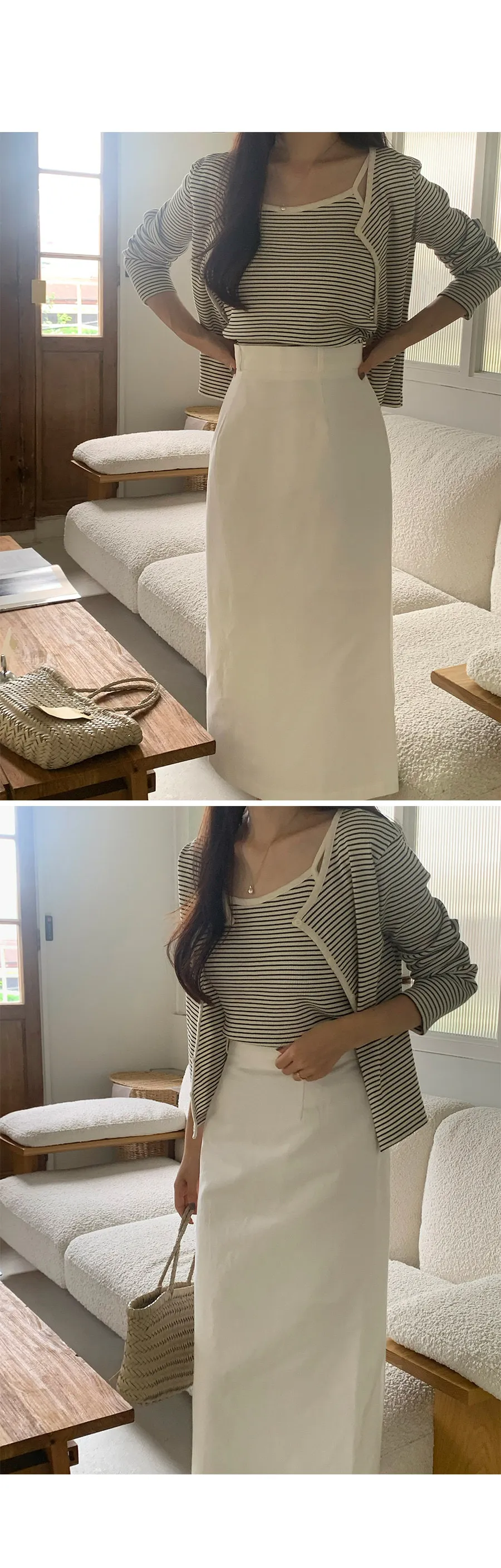 日常穿搭羅紋修身條紋無袖上衣和開衫的套裝