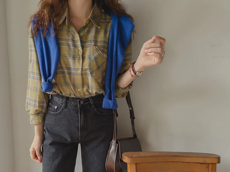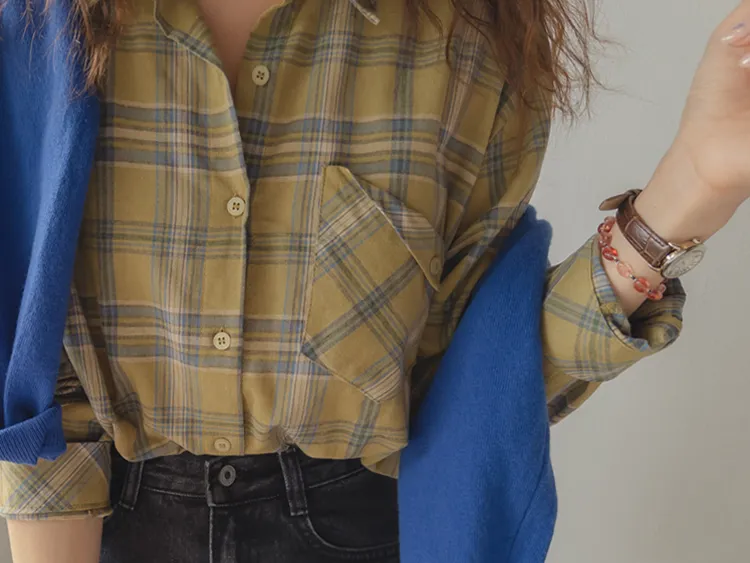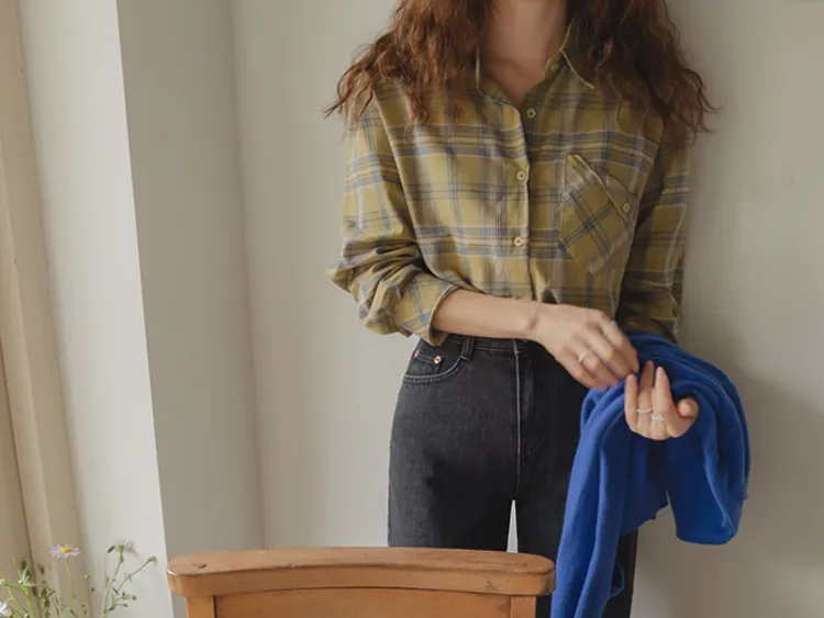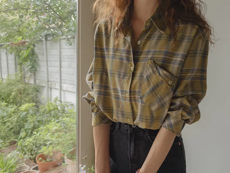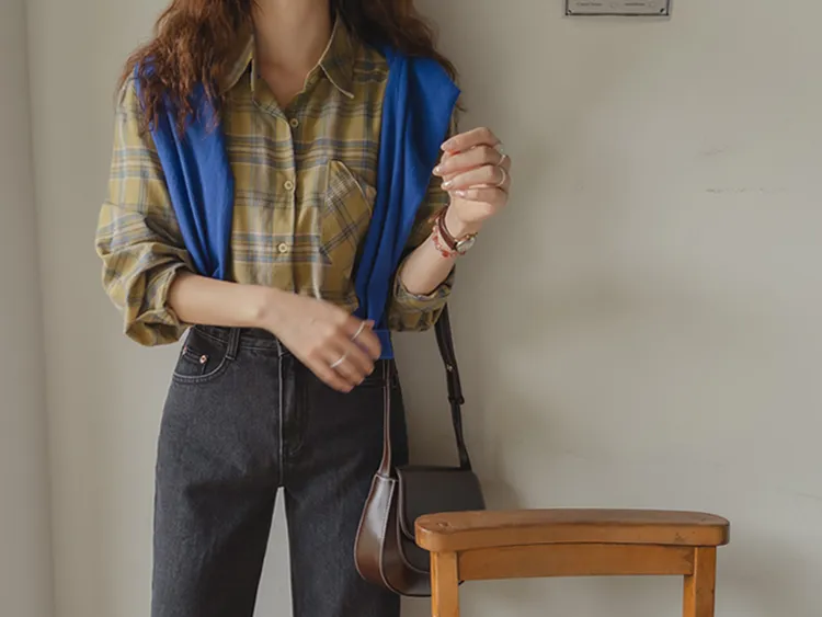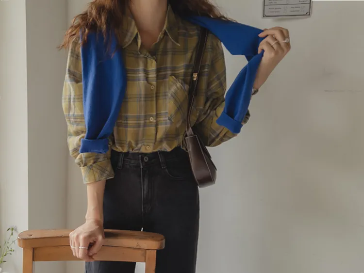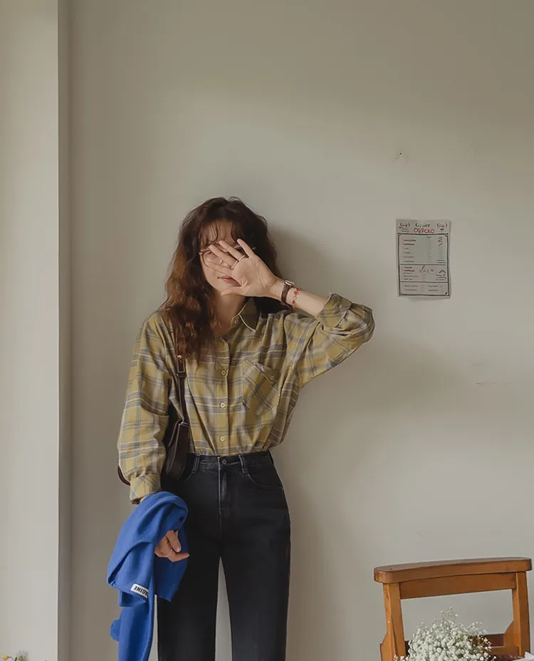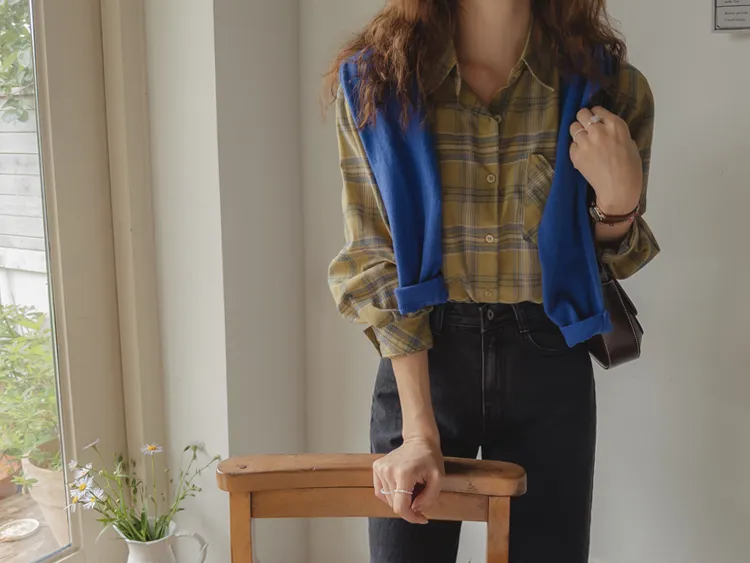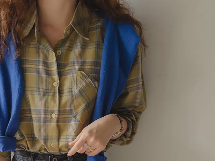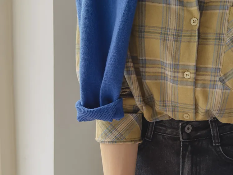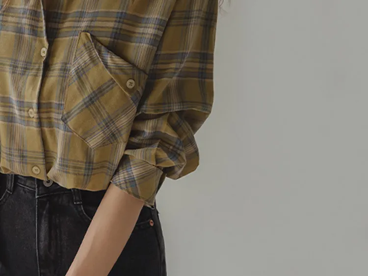 [自然輪廓格紋襯衫♡][獨特的口袋細節,具有1000%的收藏價值][無論是單穿還是外穿搭都很漂亮][適合秋季的3種顏色組合]