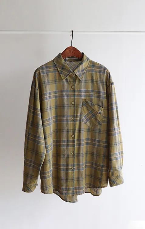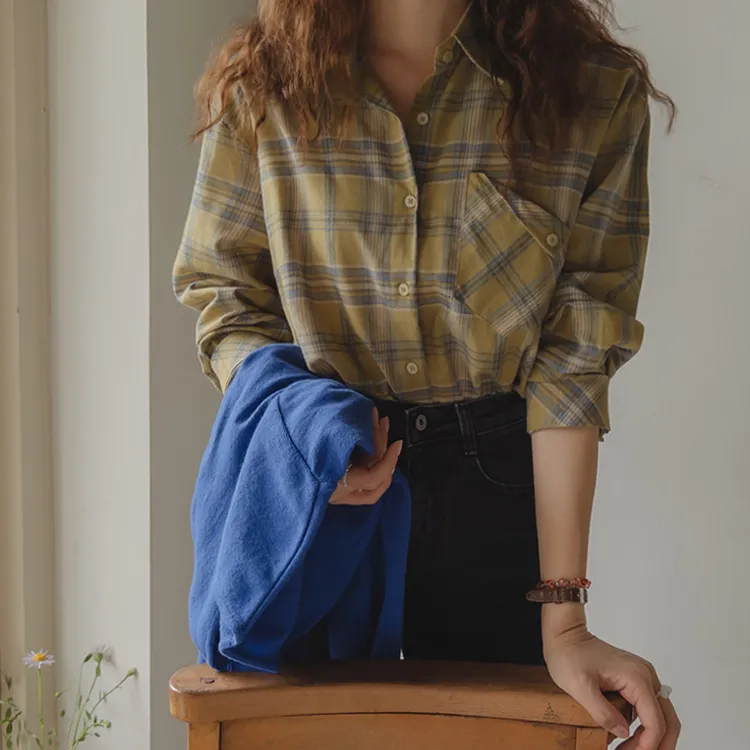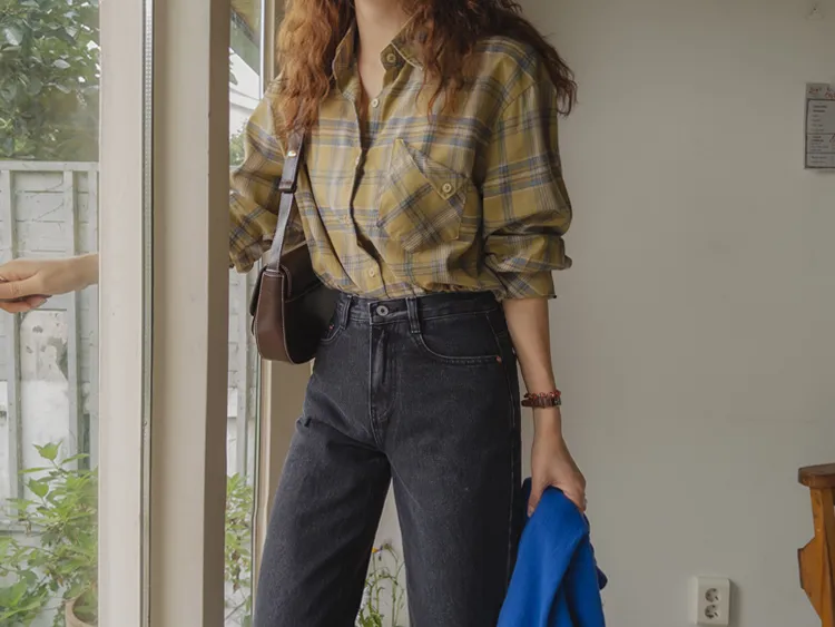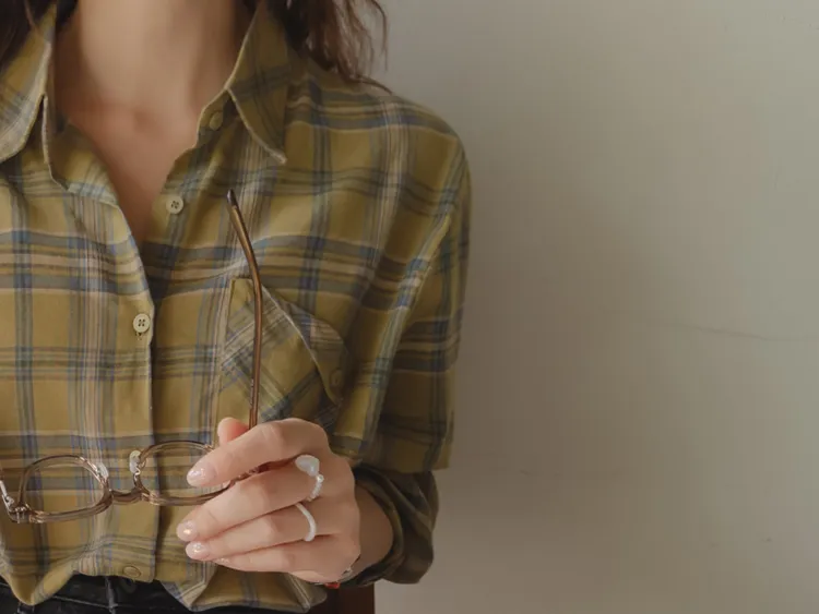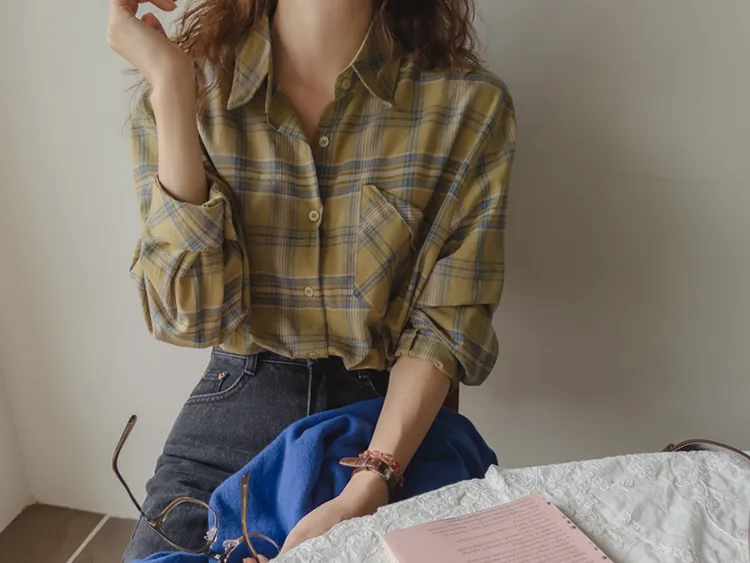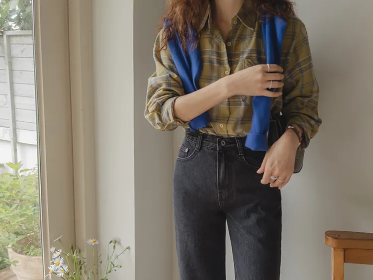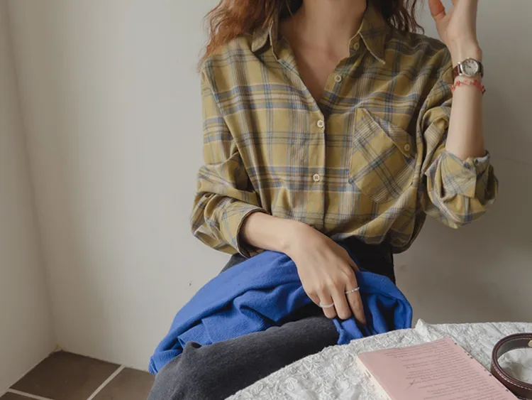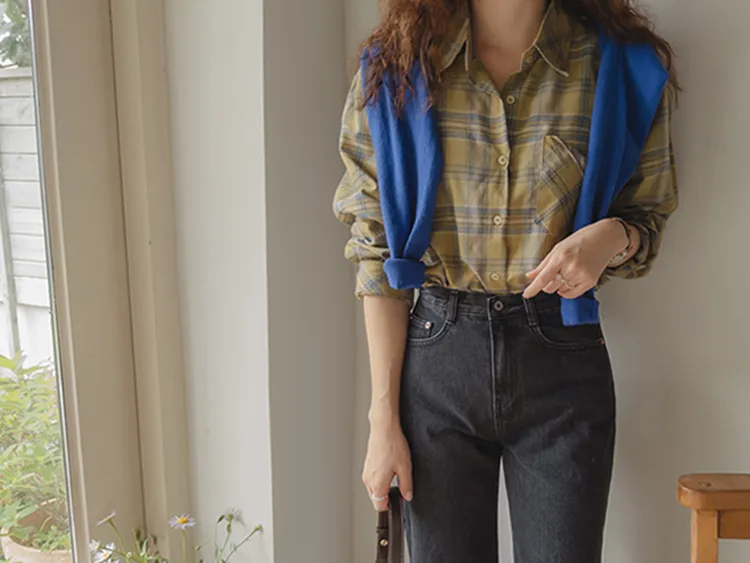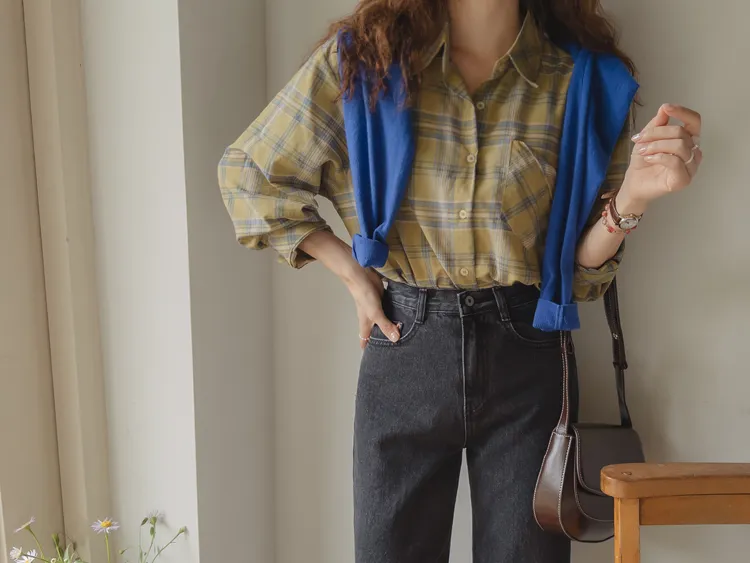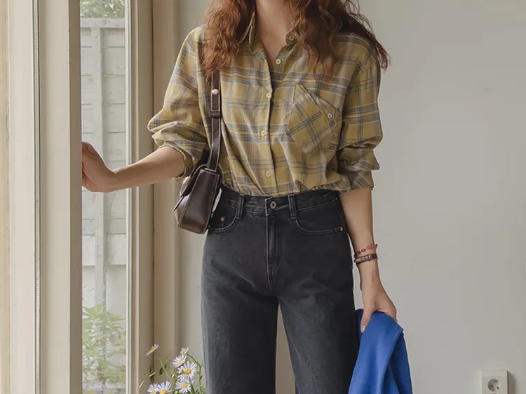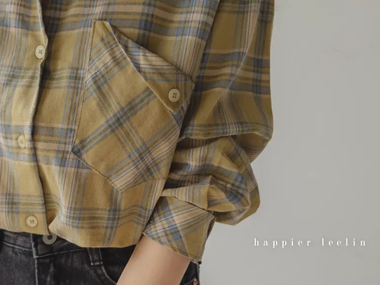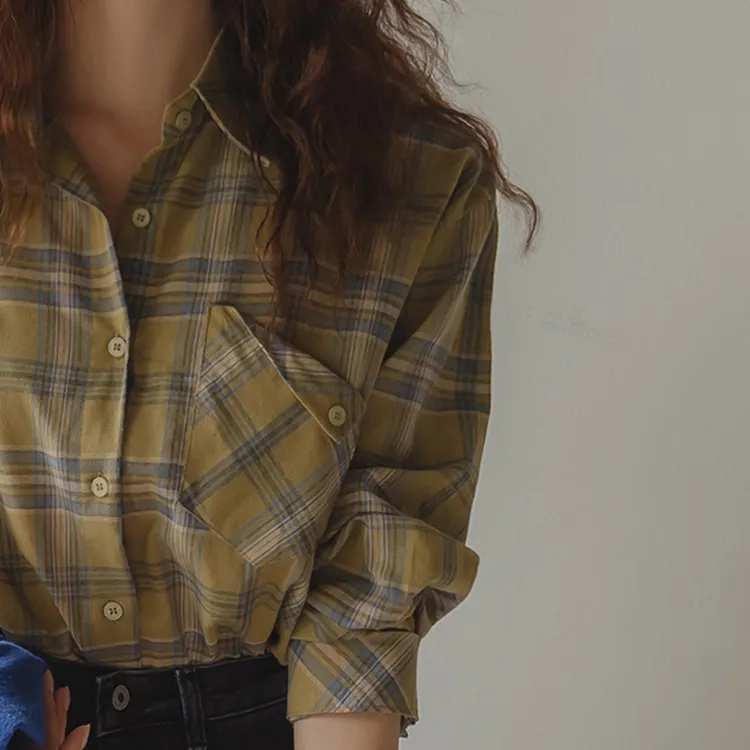 [自然輪廓格紋襯衫♡][獨特的口袋細節,具有1000%的收藏價值][無論是單穿還是外穿搭都很漂亮][適合秋季的3種顏色組合]