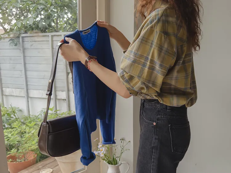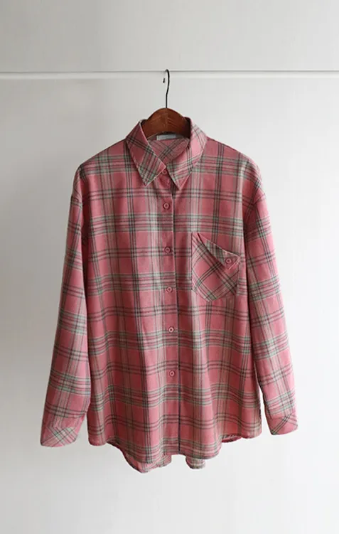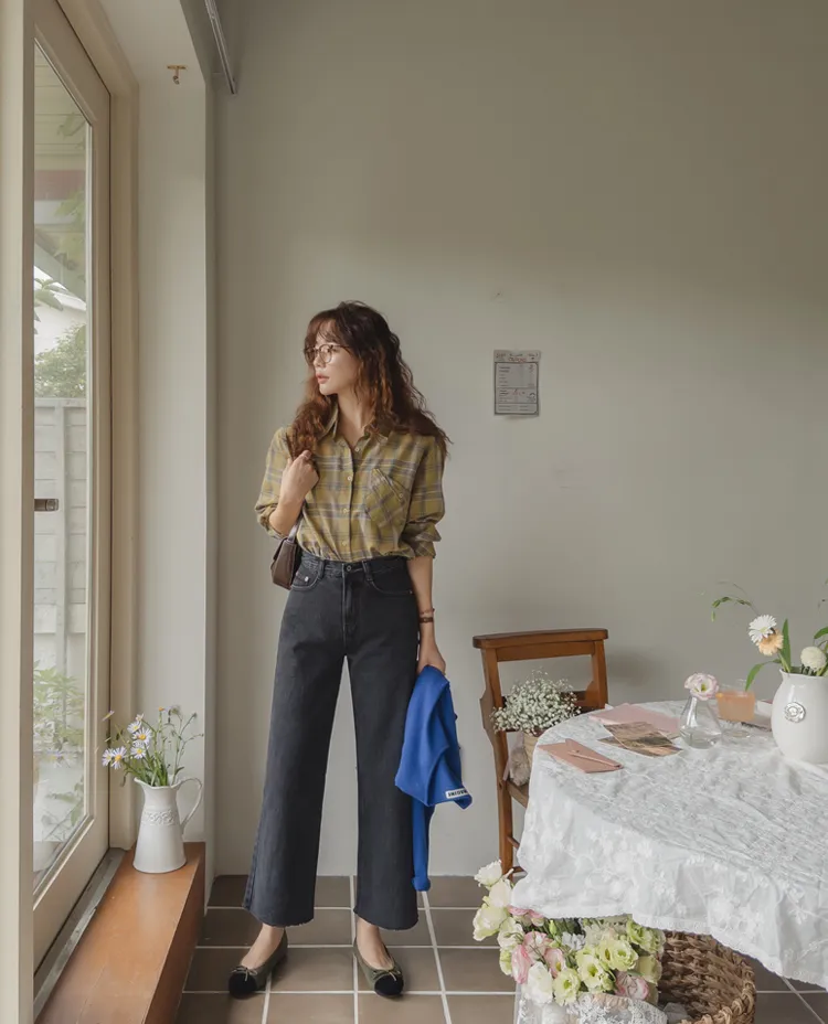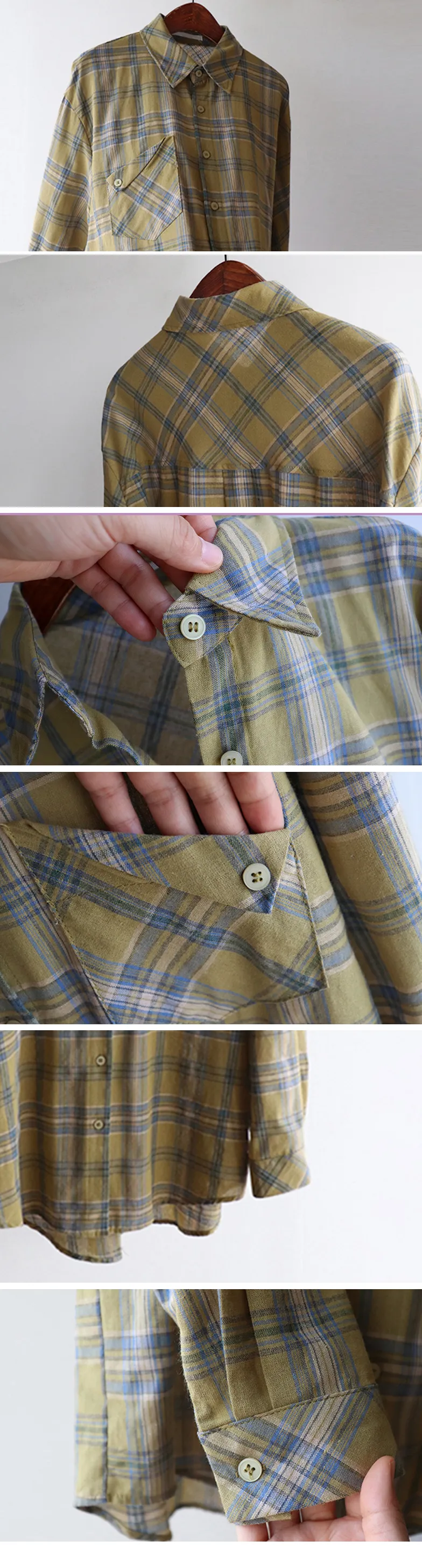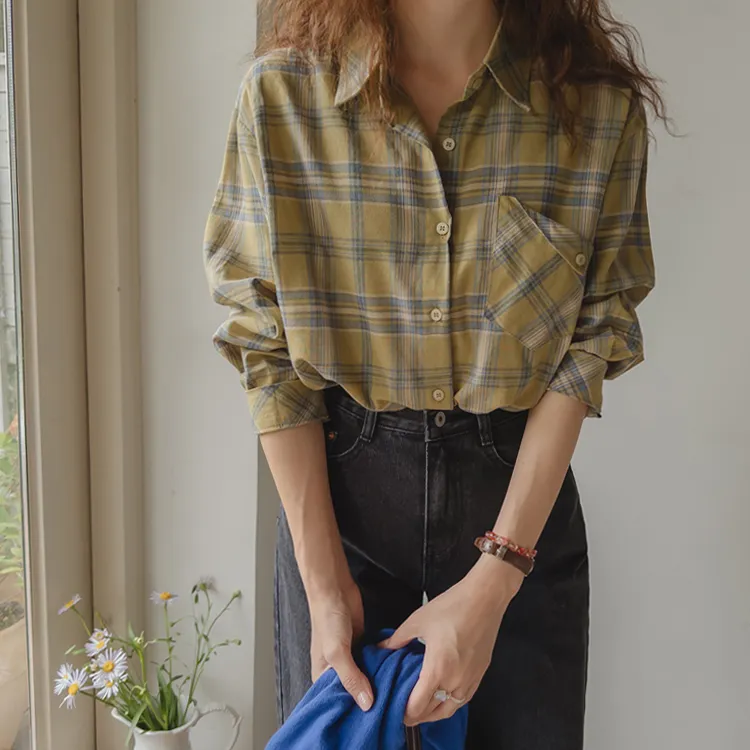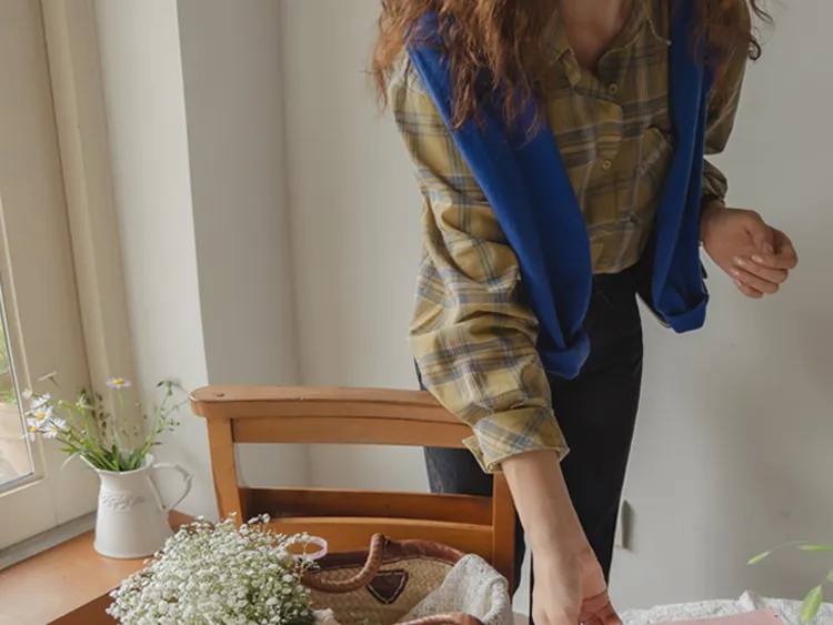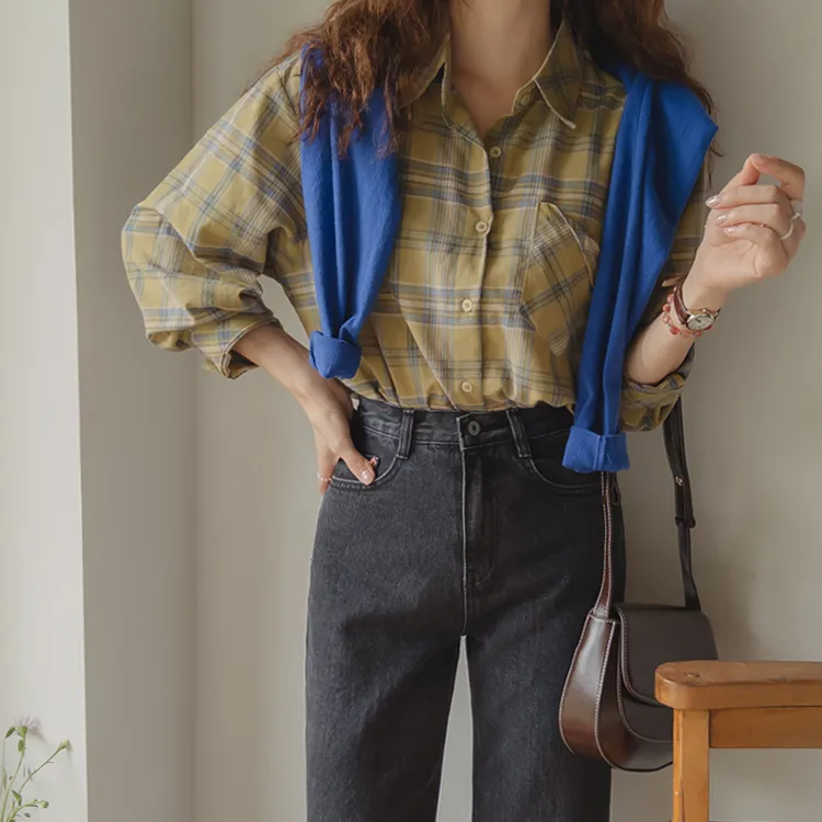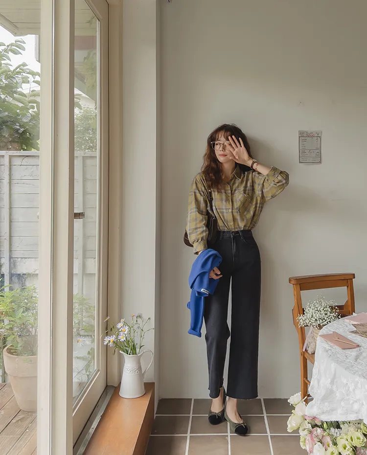[自然輪廓格紋襯衫♡][獨特的口袋細節,具有1000%的收藏價值][無論是單穿還是外穿搭都很漂亮][適合秋季的3種顏色組合]