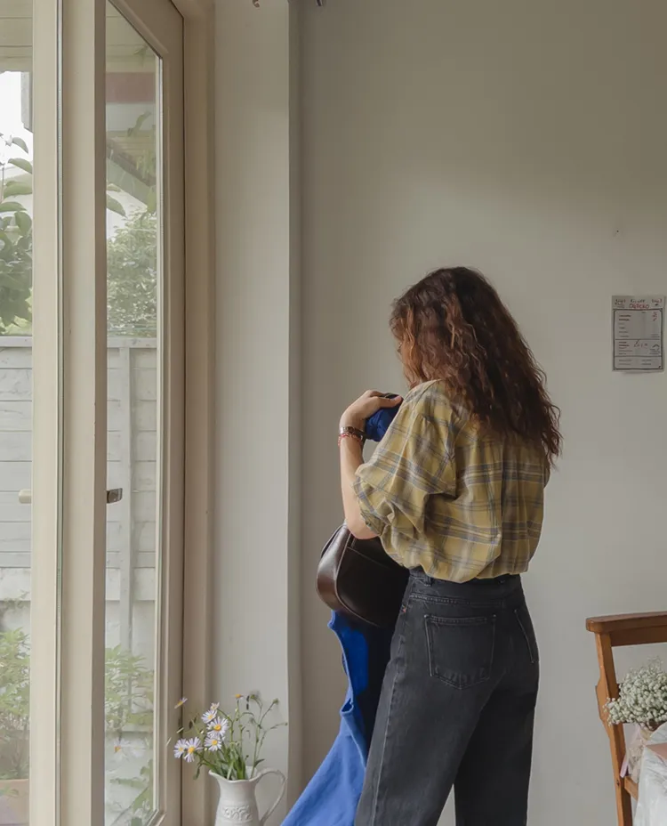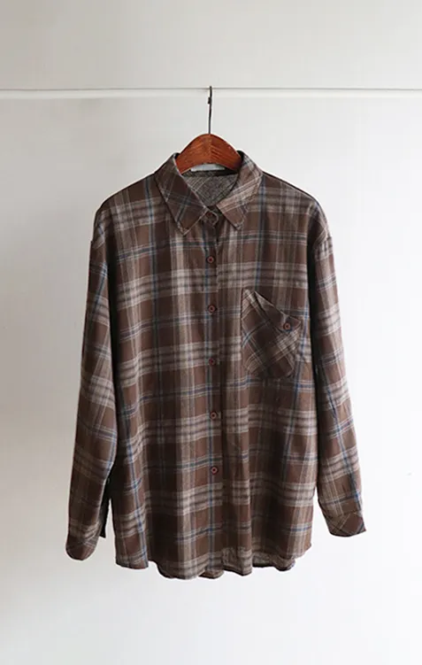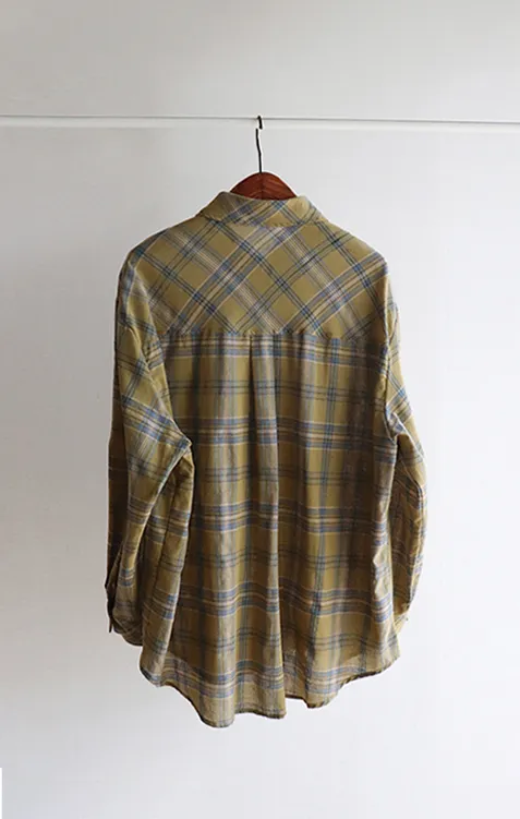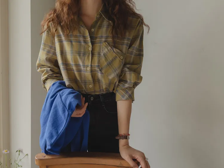 自然輪廓獨特口袋設計秋色格紋襯衫