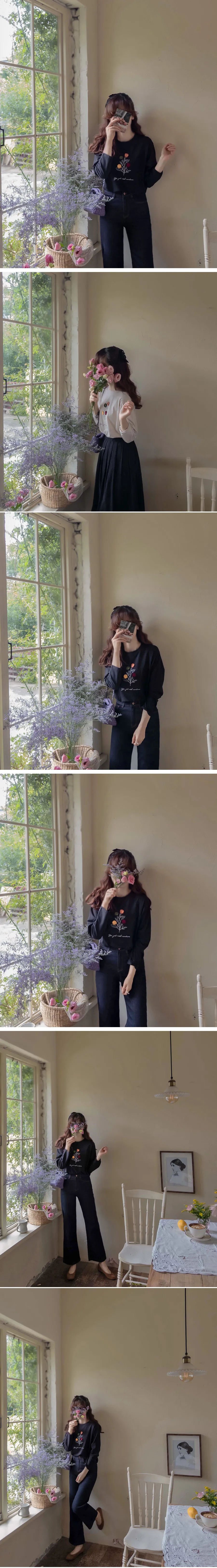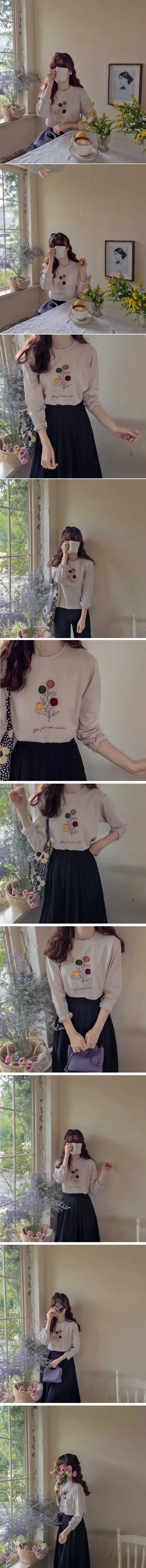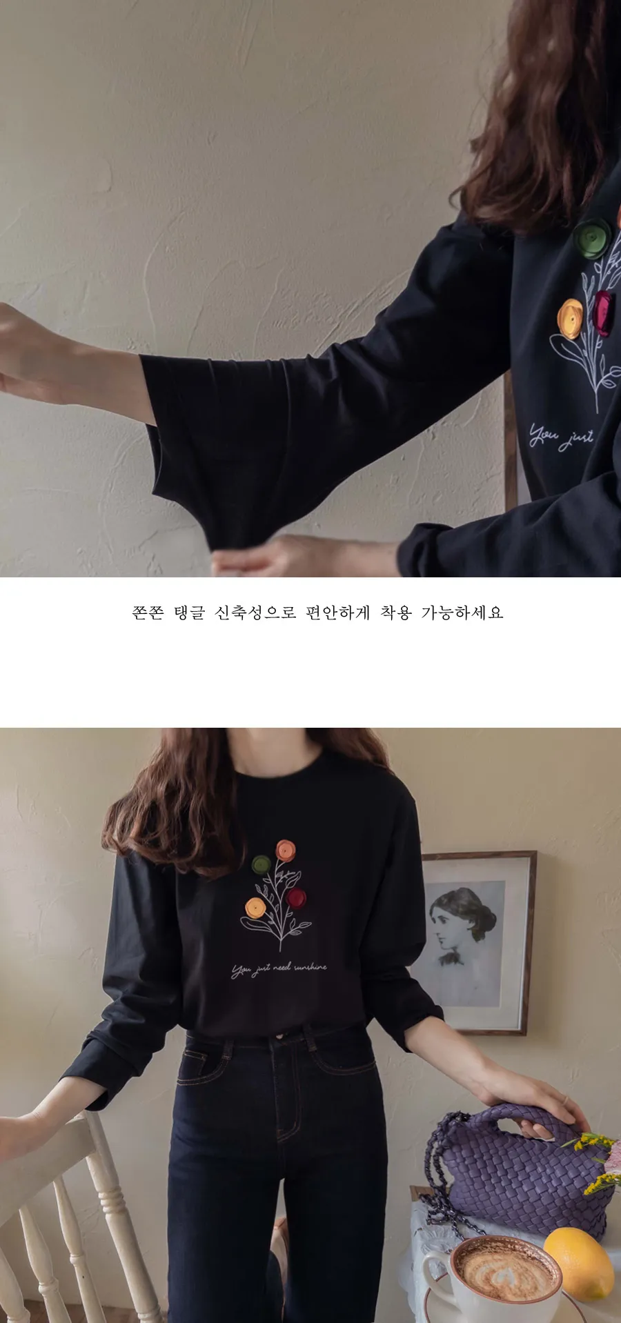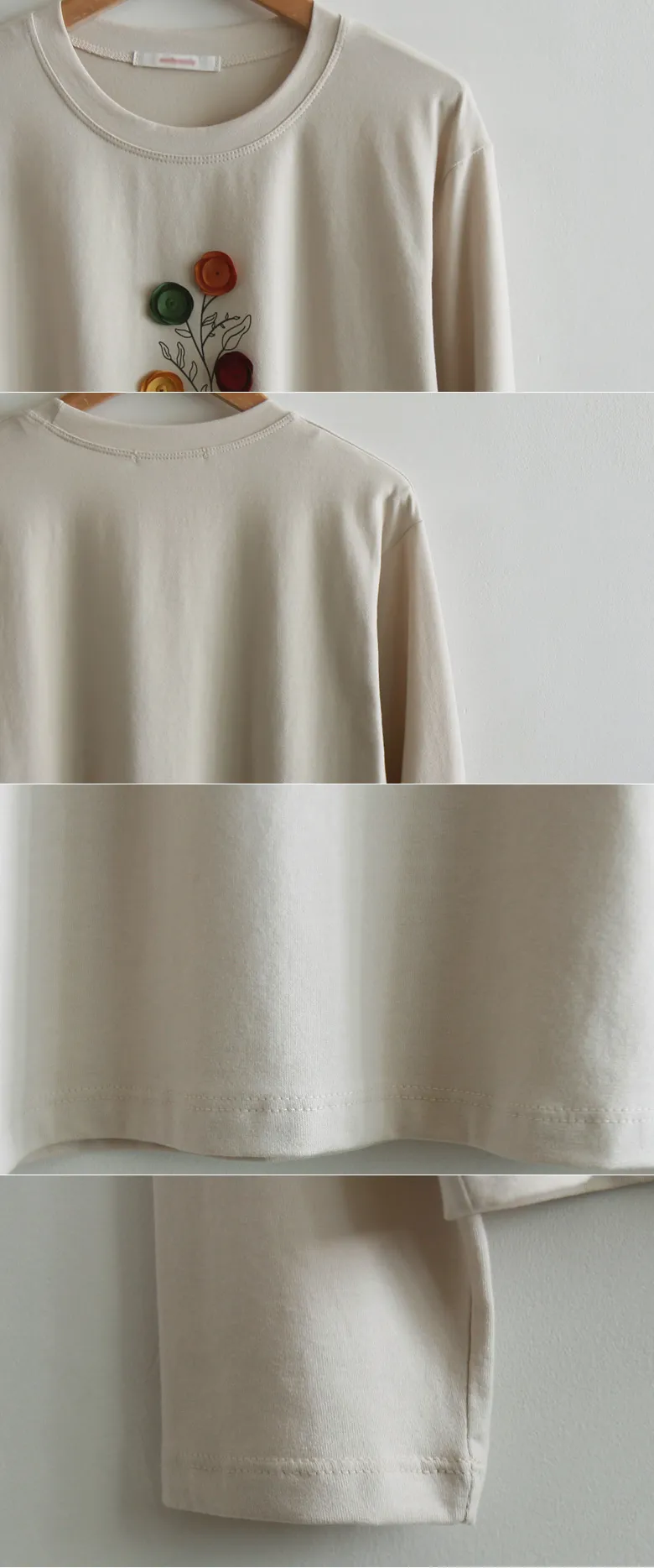 【舒適上衣,彈性好,觸感好】【適合秋季穿的T卹】【以立體花朵和字母印花為點,時尚意境】【基礎色,非常適合日常穿著】 [可愛推薦作為以立體花為點的時尚秋季上衣]