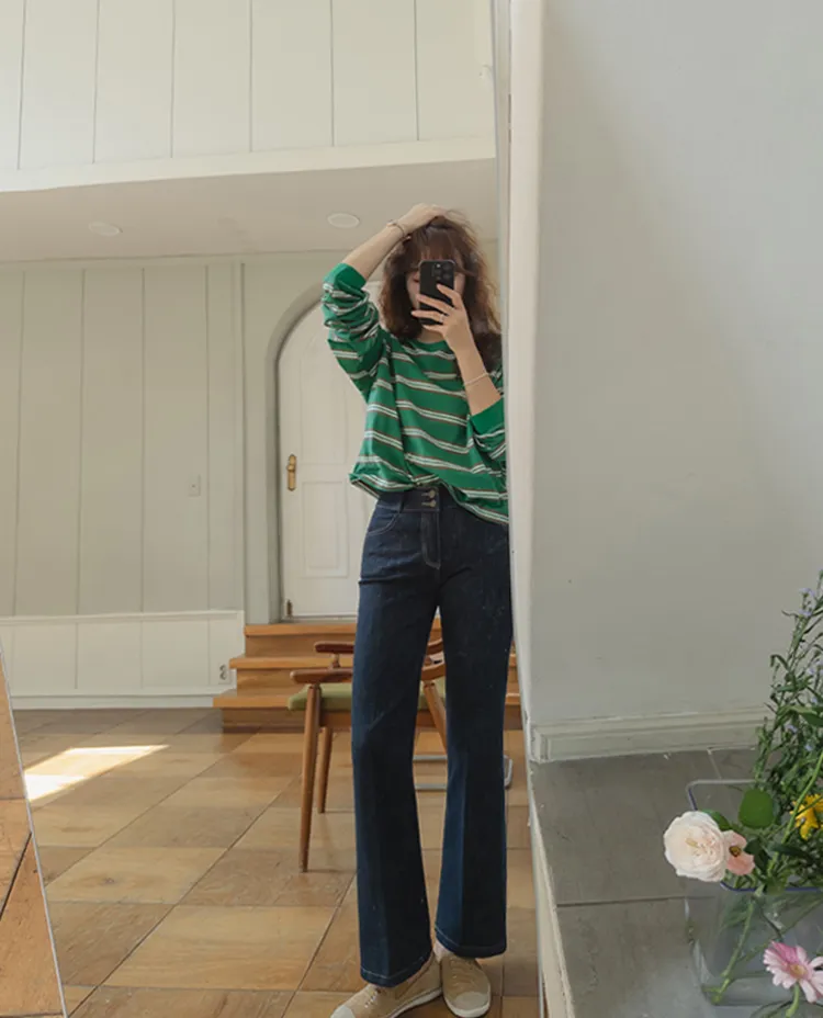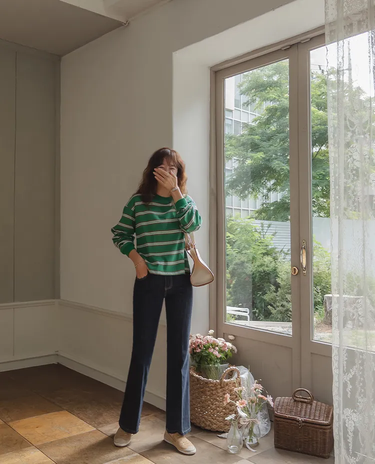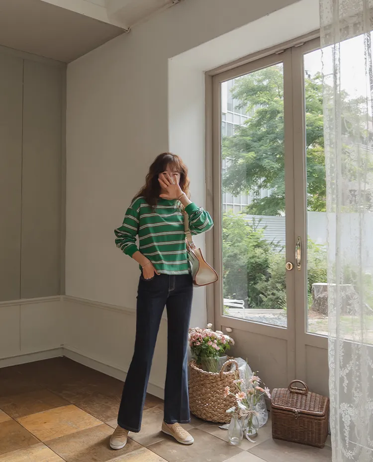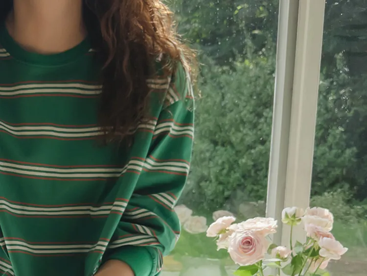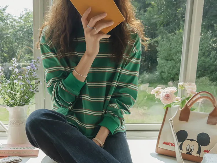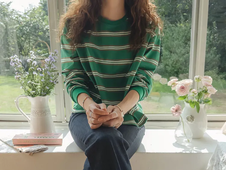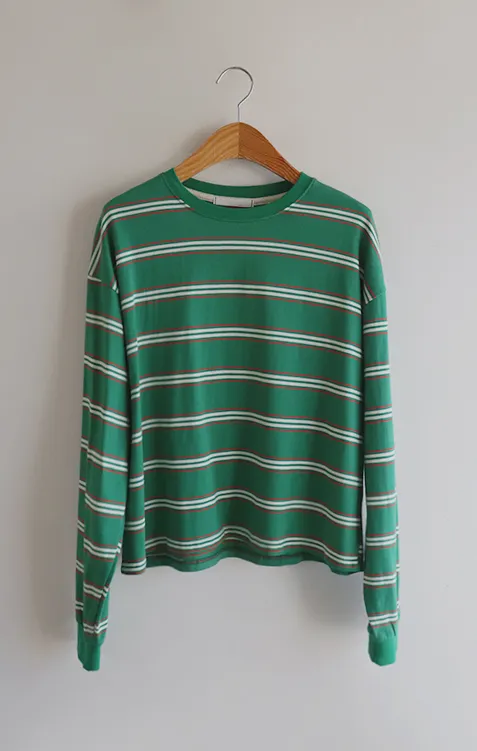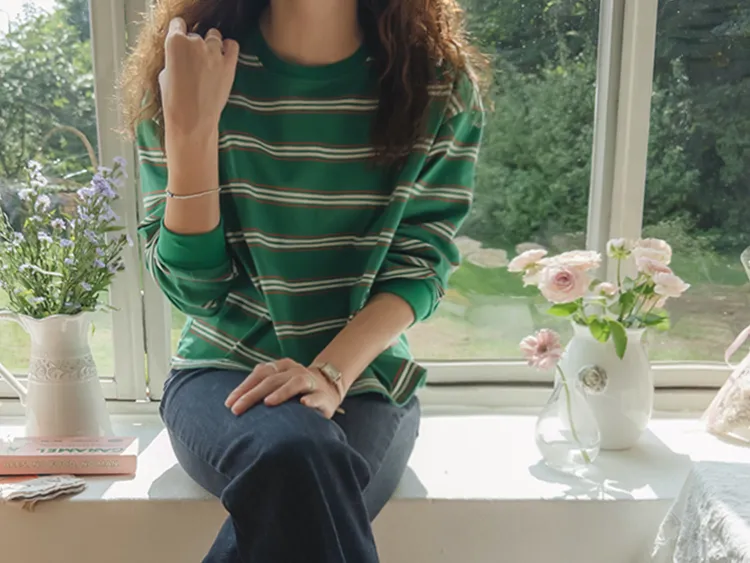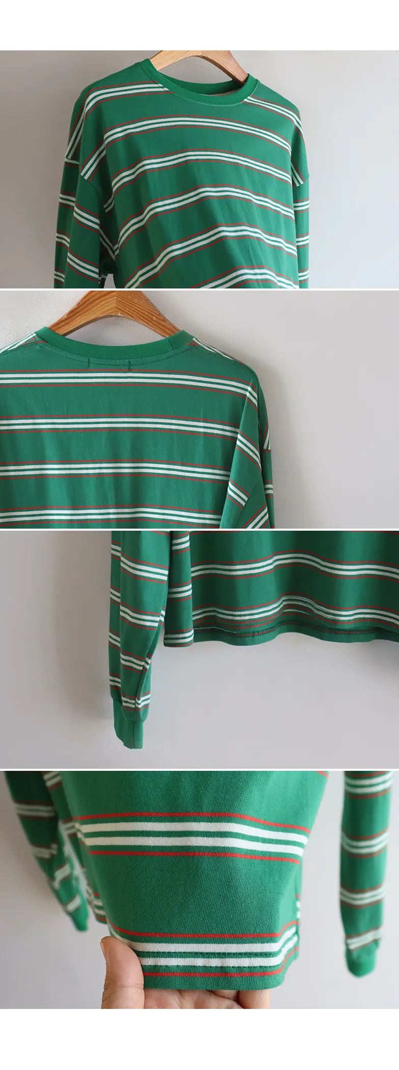 精靈條紋上衣長袖版,受到了很多人的喜愛! ] [休閒心情下穿著舒適的條紋T卹] [活潑又可愛] [色彩繽紛的條紋圖案充滿了新鮮感】【可以搭配任何下裝單品,輕鬆穿搭的萬用單品!