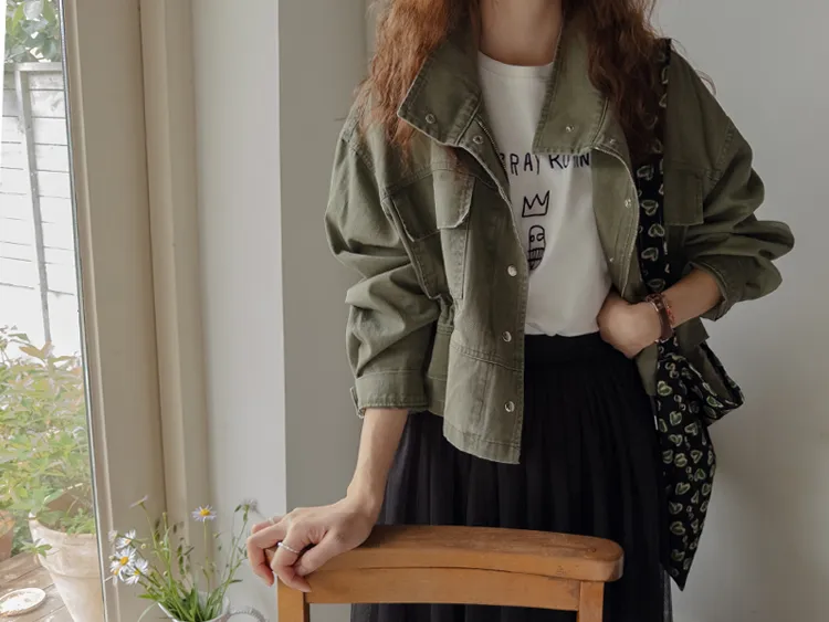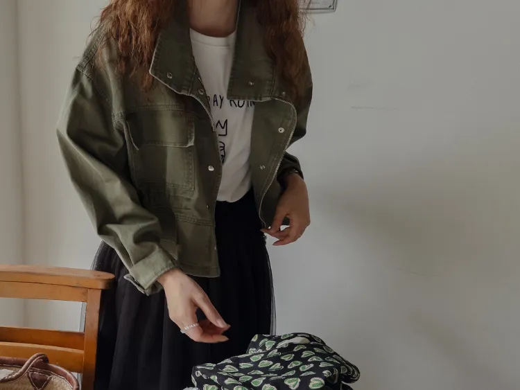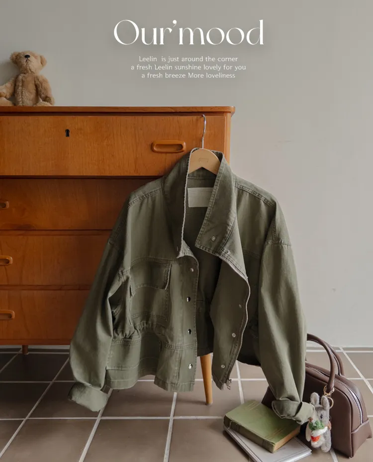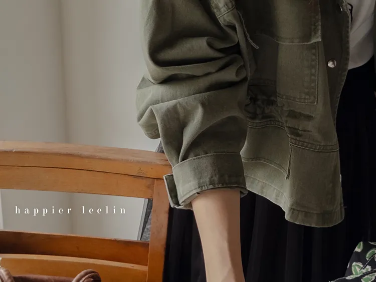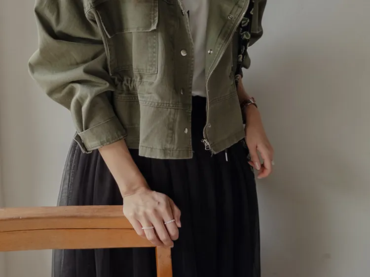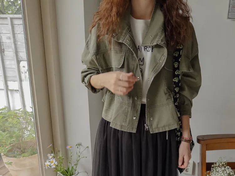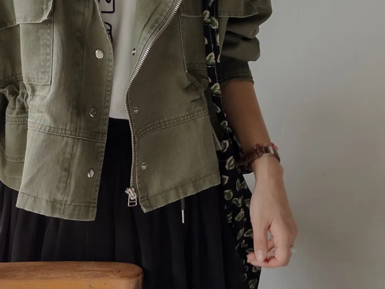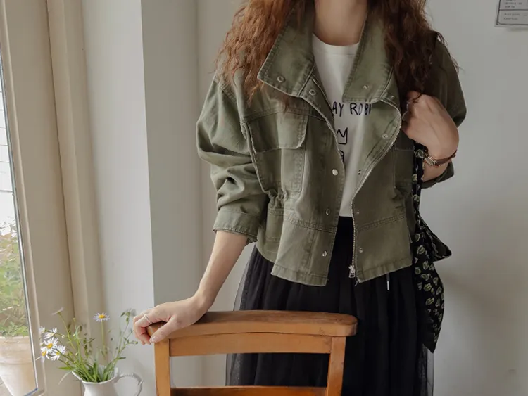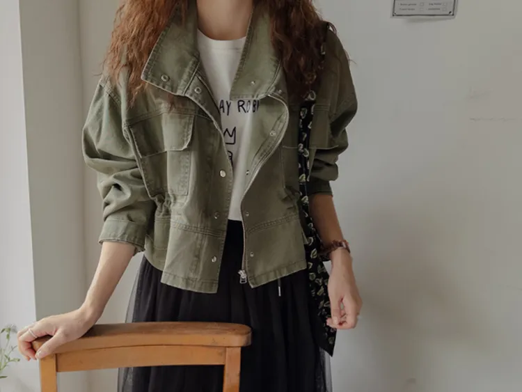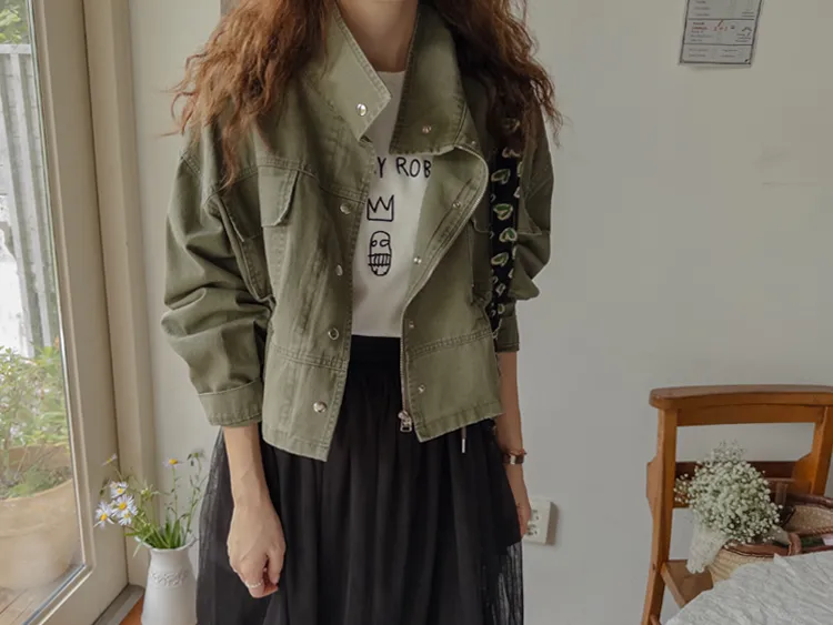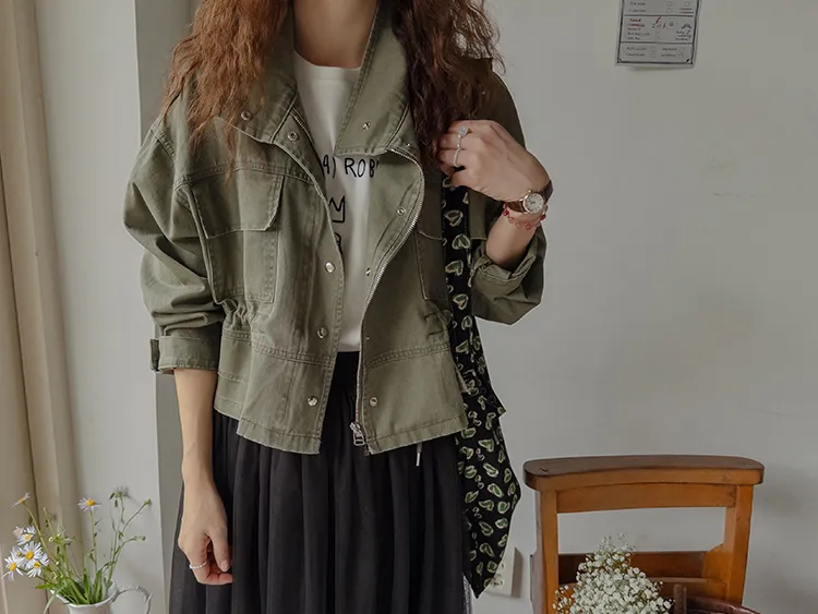 率性風格可愛內側可調帶口袋設計休閒夾克外套