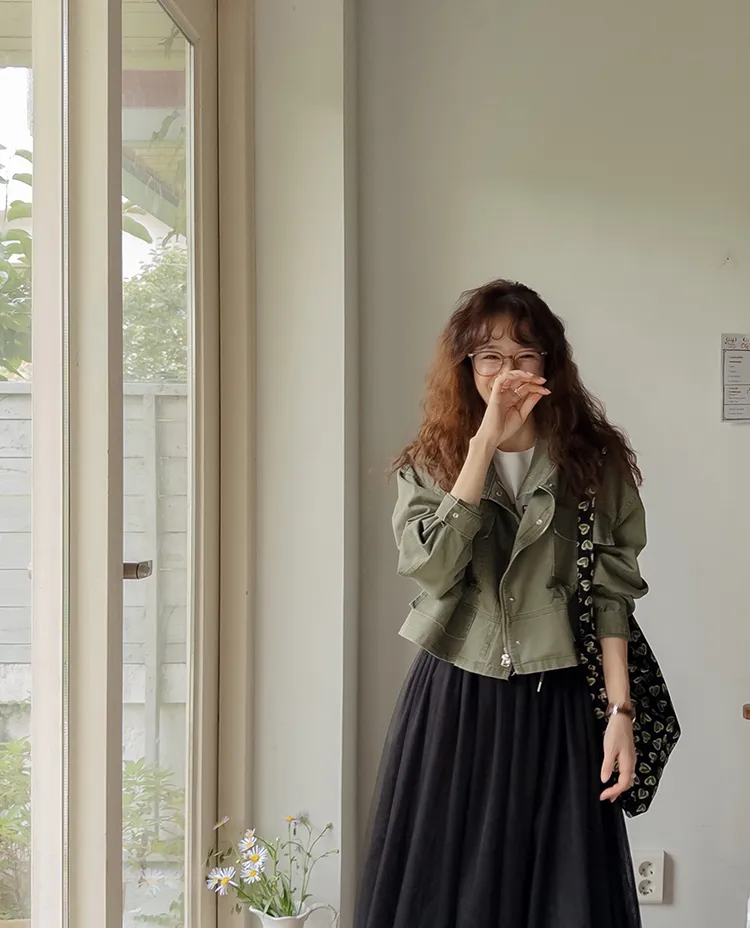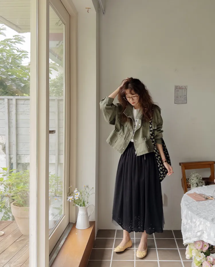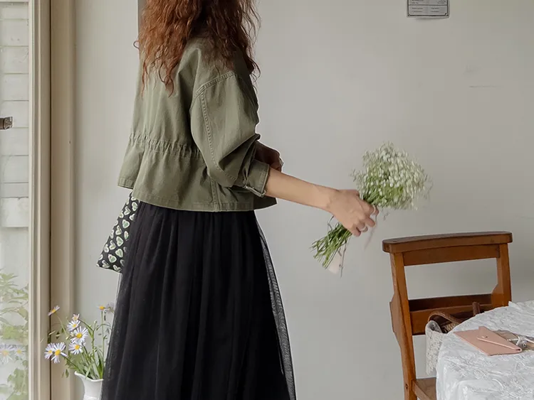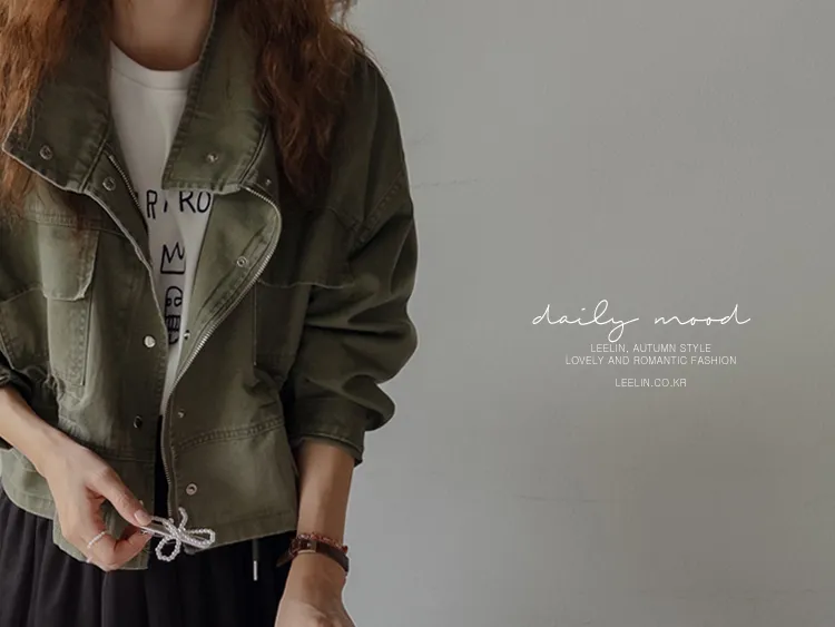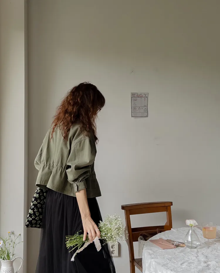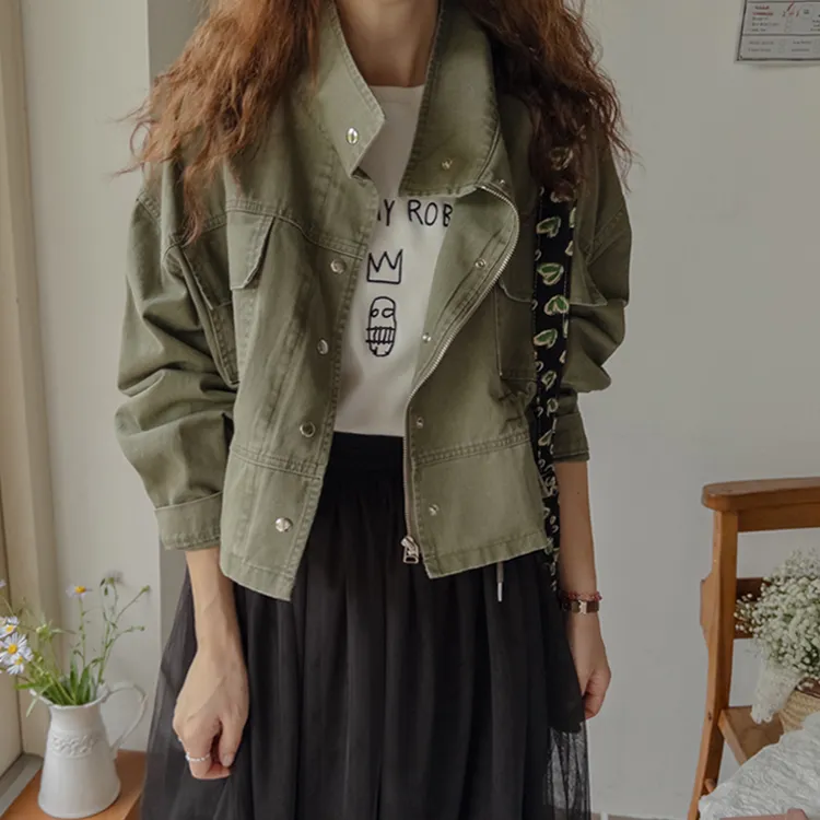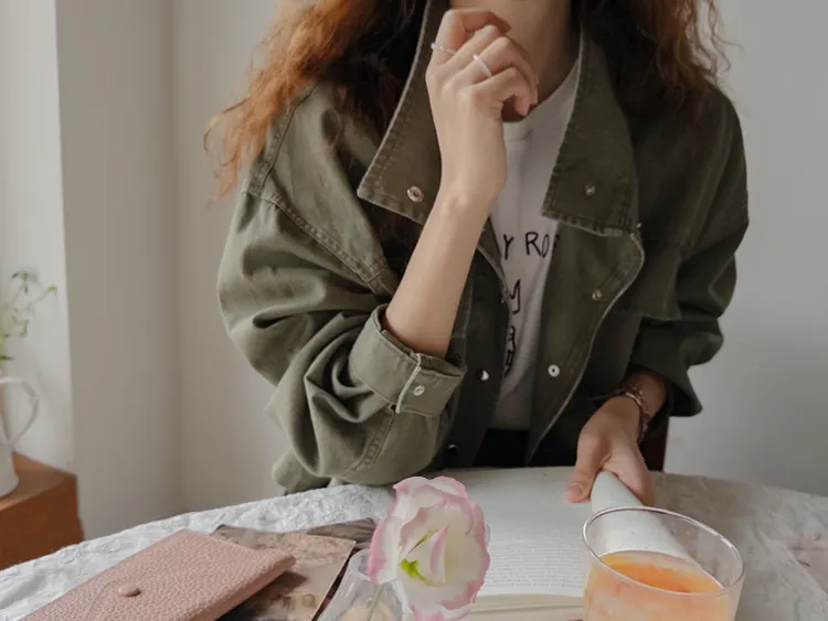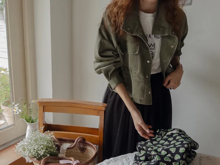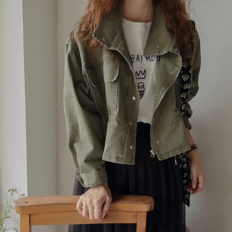 率性風格可愛內側可調帶口袋設計休閒夾克外套