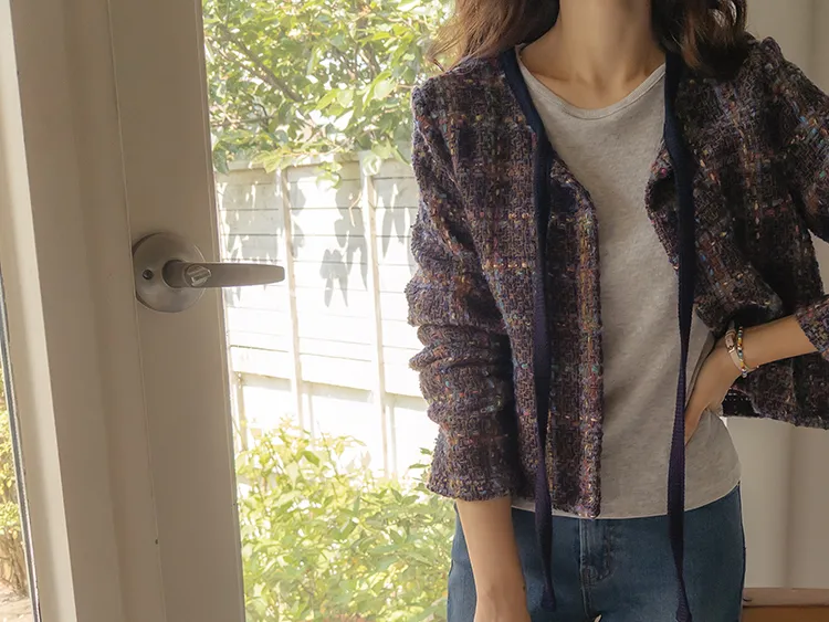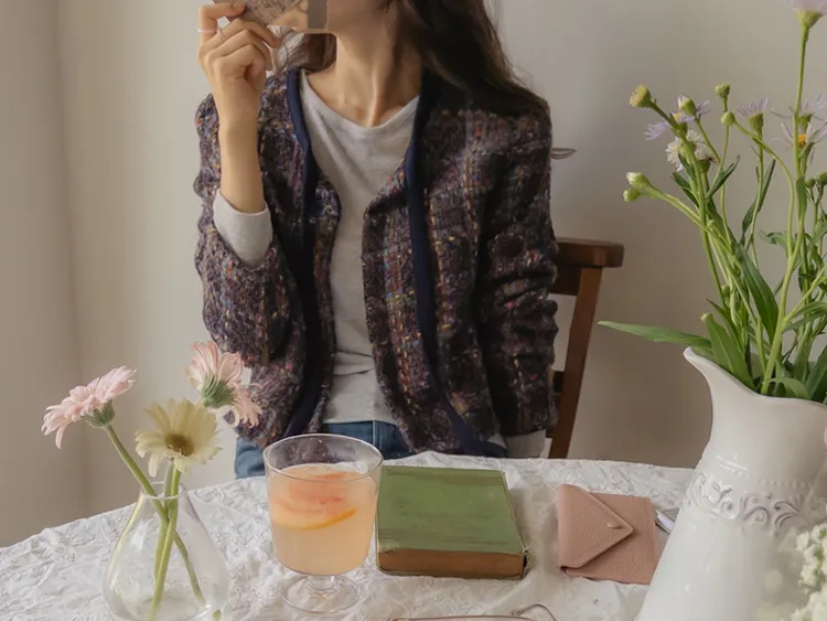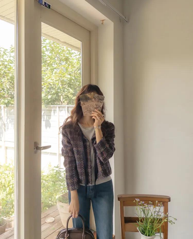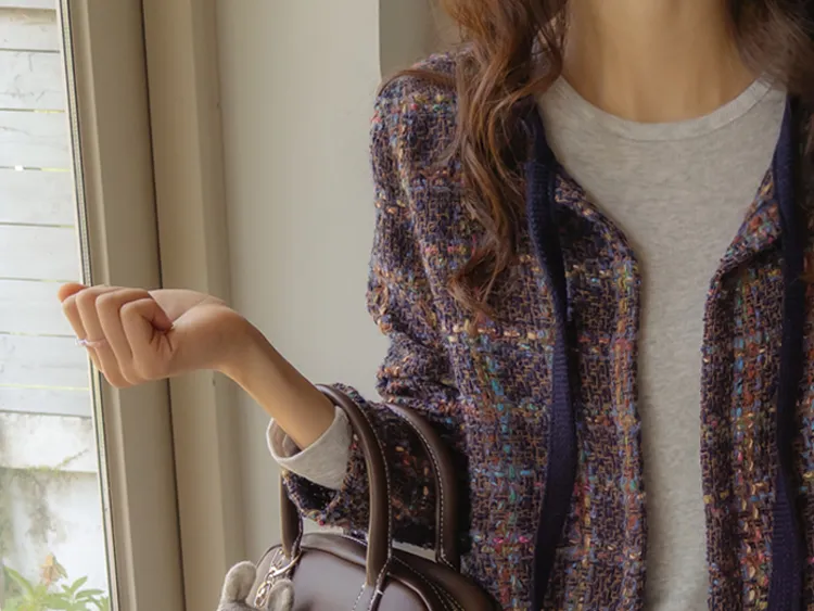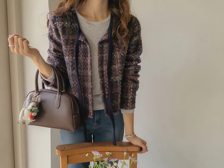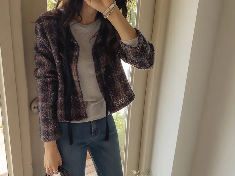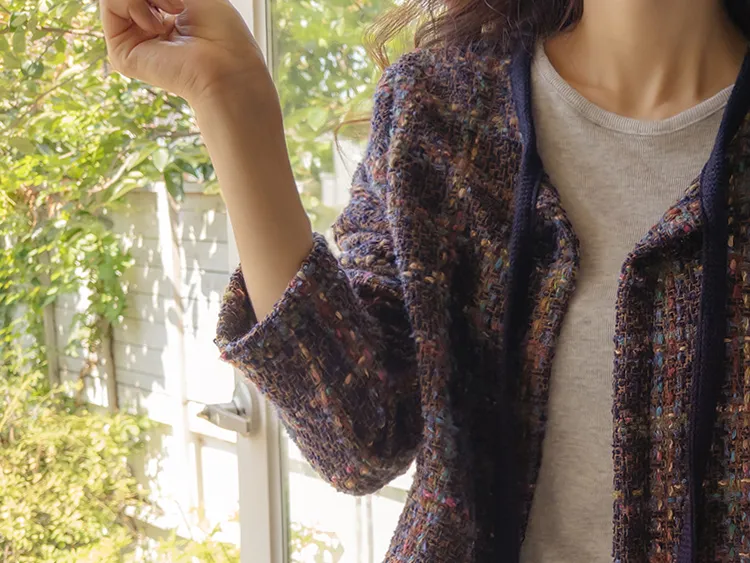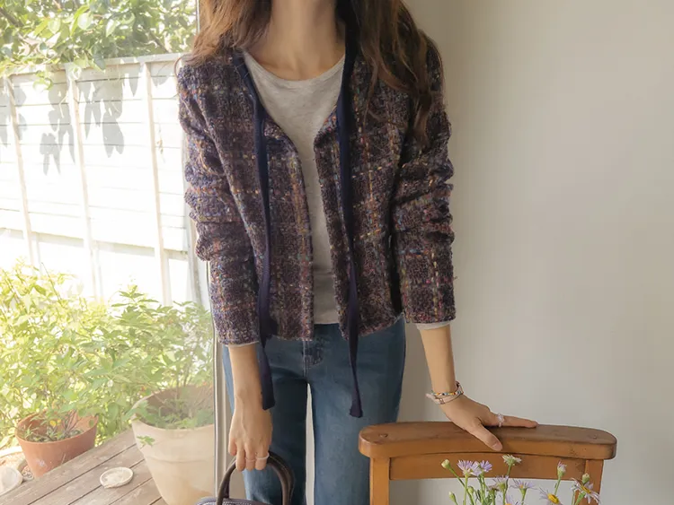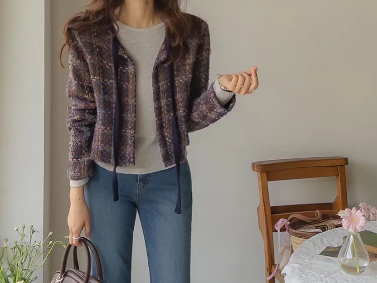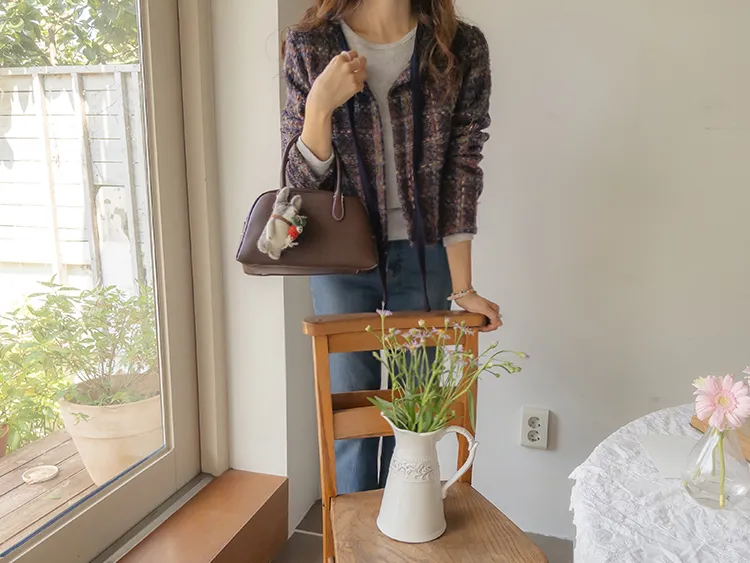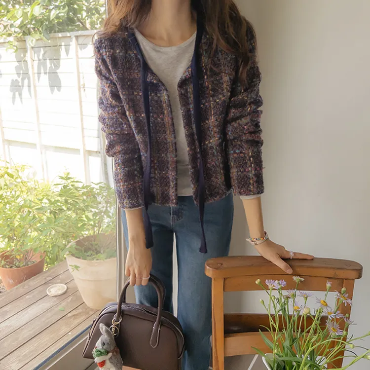【充滿魅力的花呢開衫,獨特的心情♥】【各種紗線混合的面料,顏色誘人! 】【花呢,感覺靈活,很舒適〜】【肩帶細節可以實現雙向外觀】【褲子和裙子或連身裙和所有搭配的萬能單品! ]