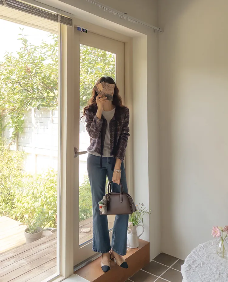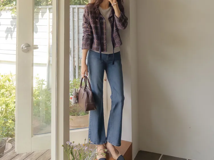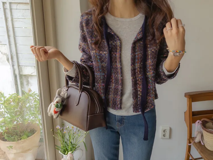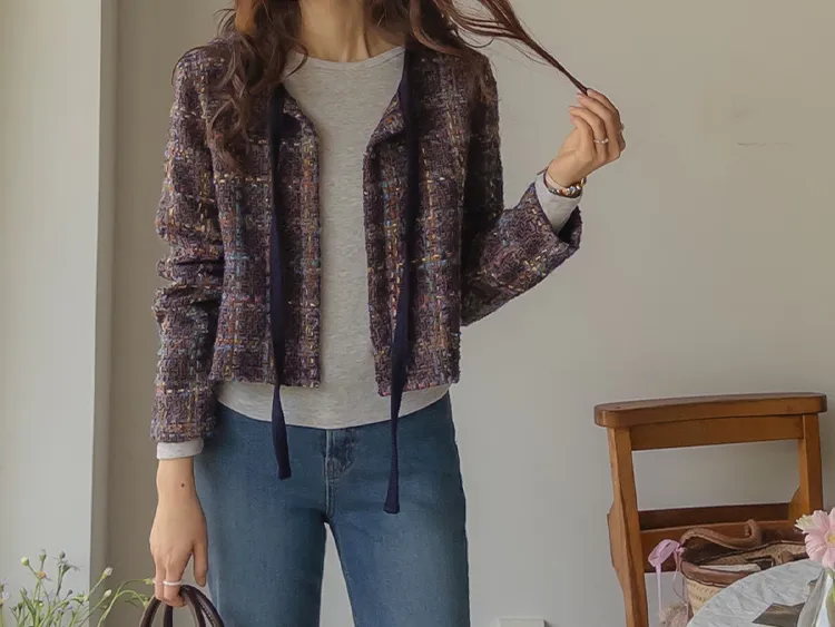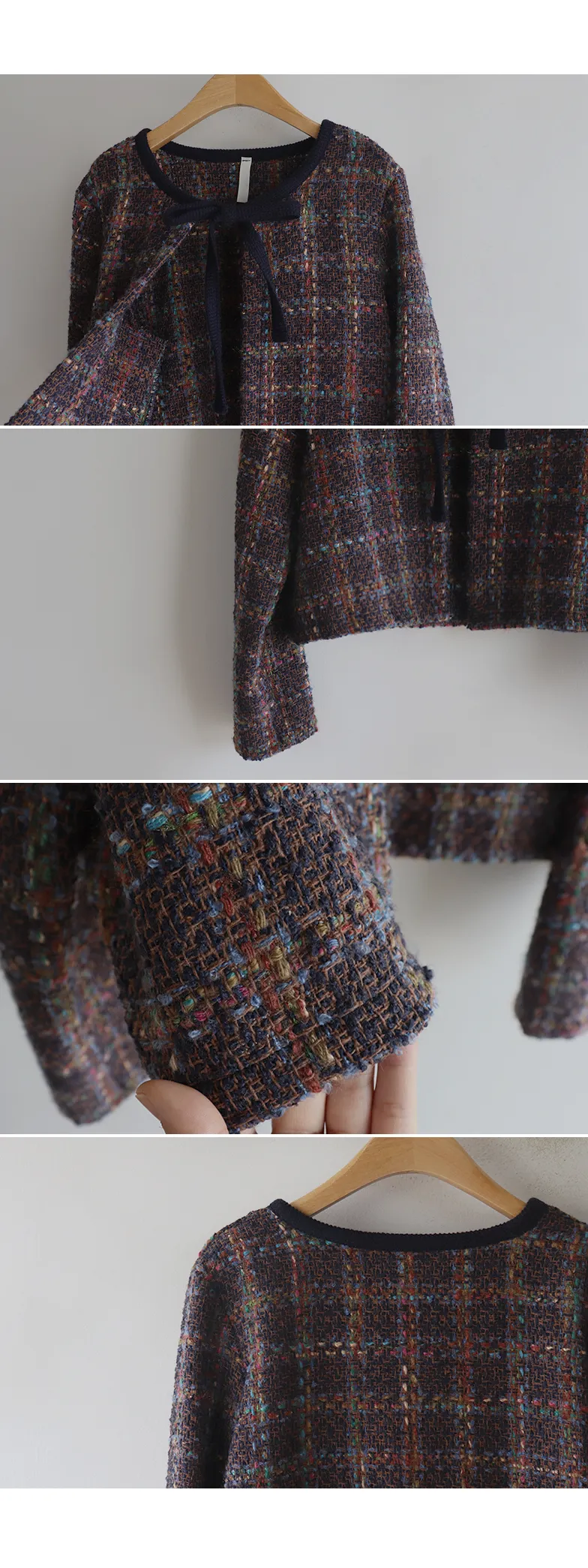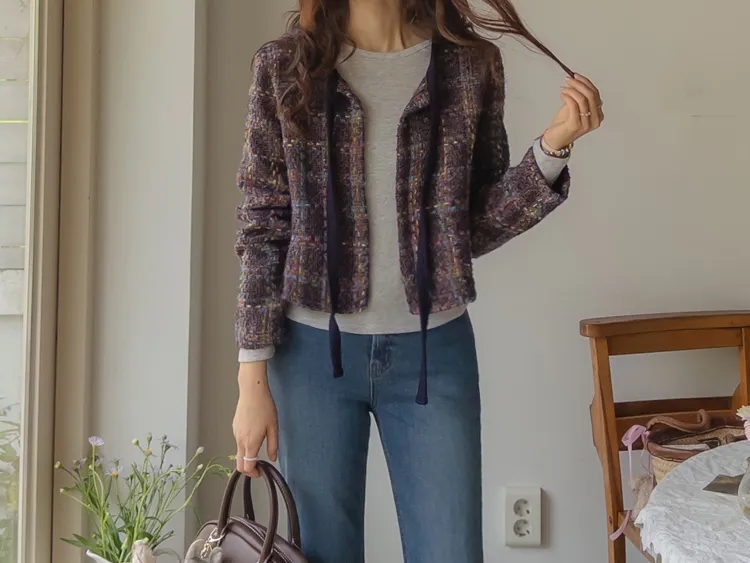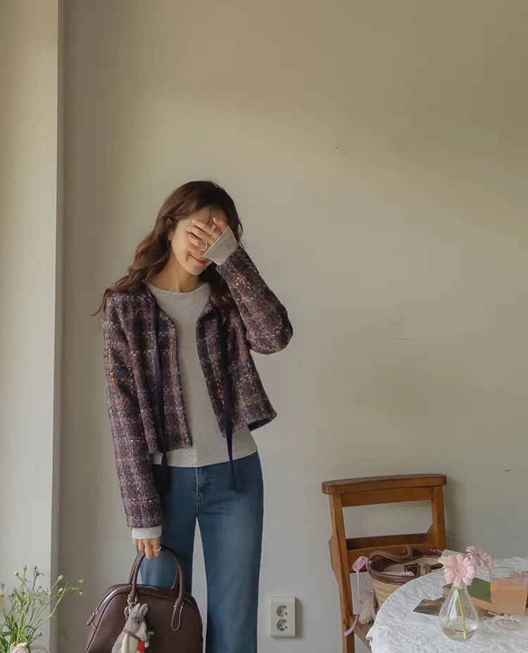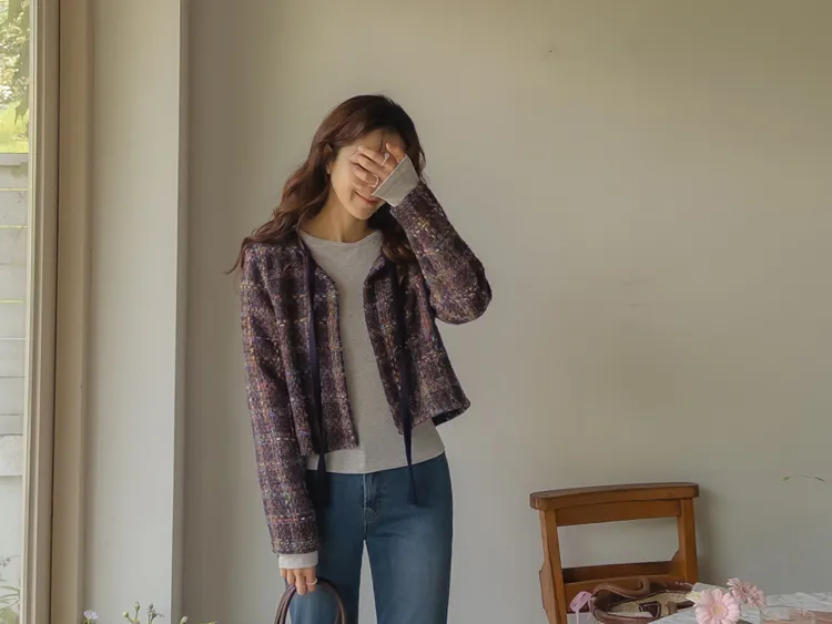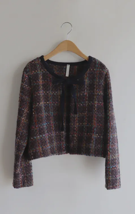 【充滿魅力的花呢開衫,獨特的心情♥】【各種紗線混合的面料,顏色誘人! 】【花呢,感覺靈活,很舒適〜】【肩帶細節可以實現雙向外觀】【褲子和裙子或連身裙和所有搭配的萬能單品! ]