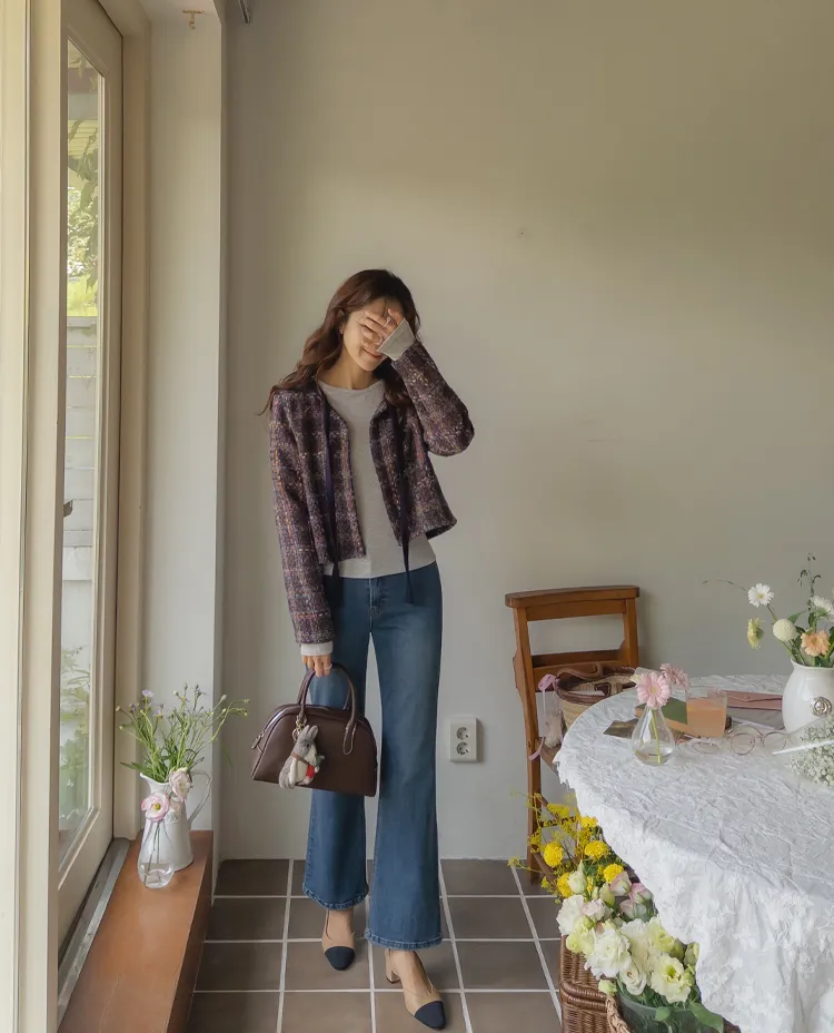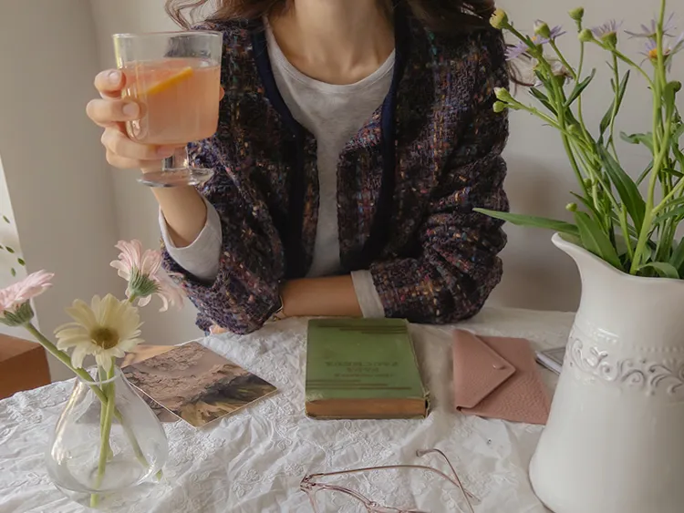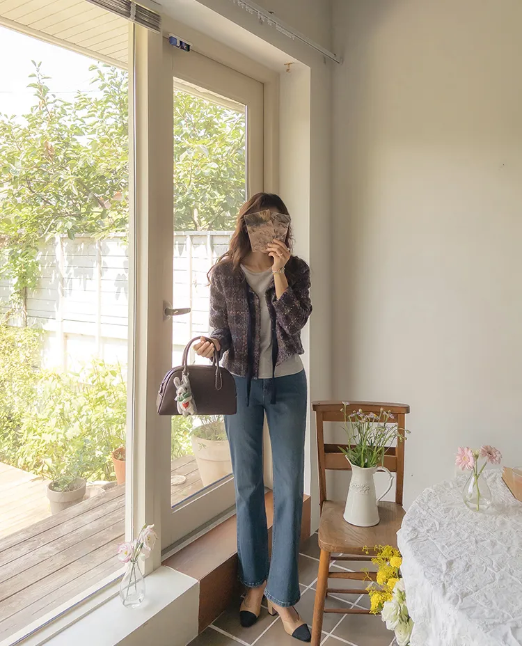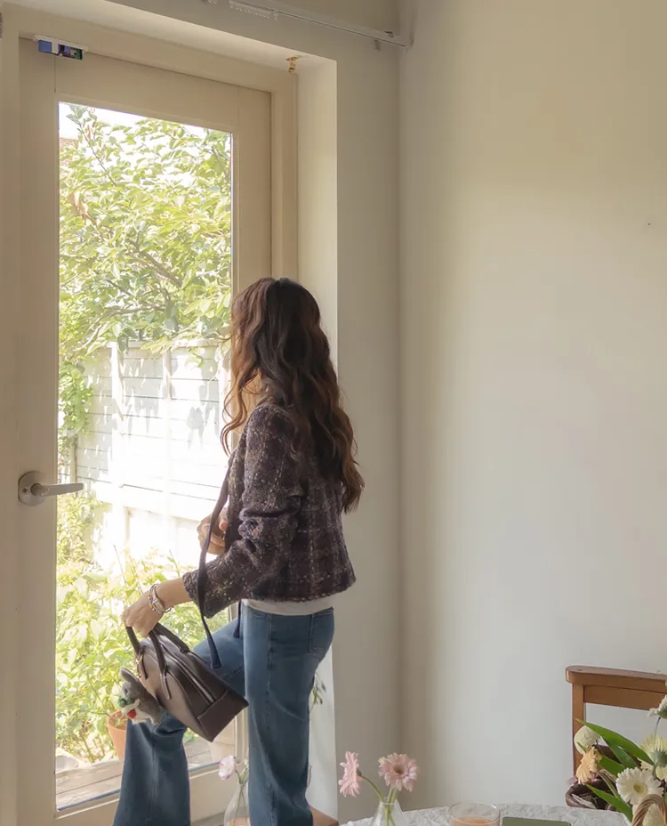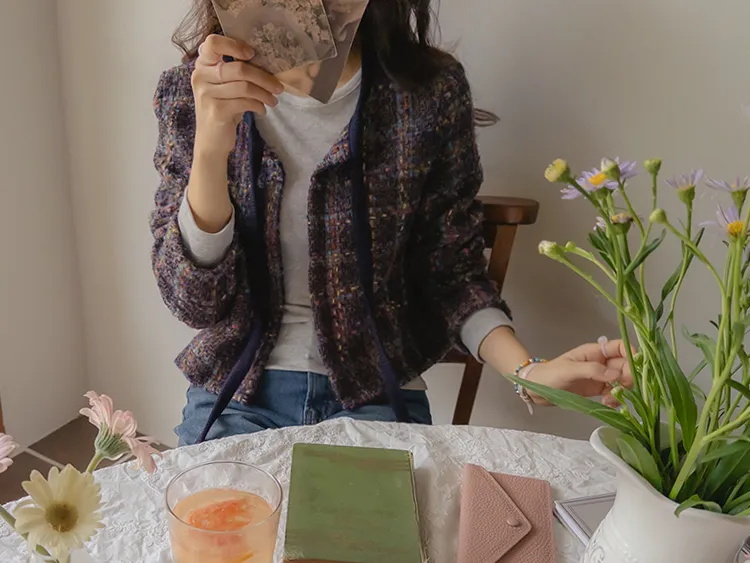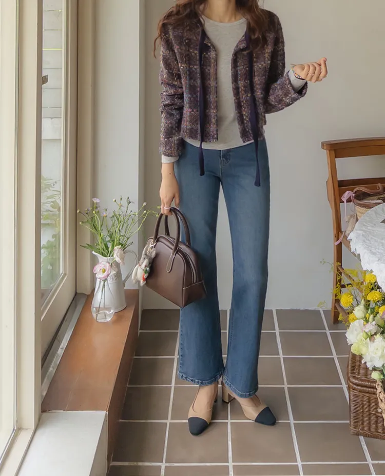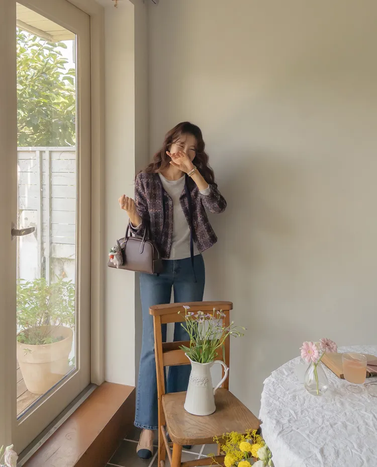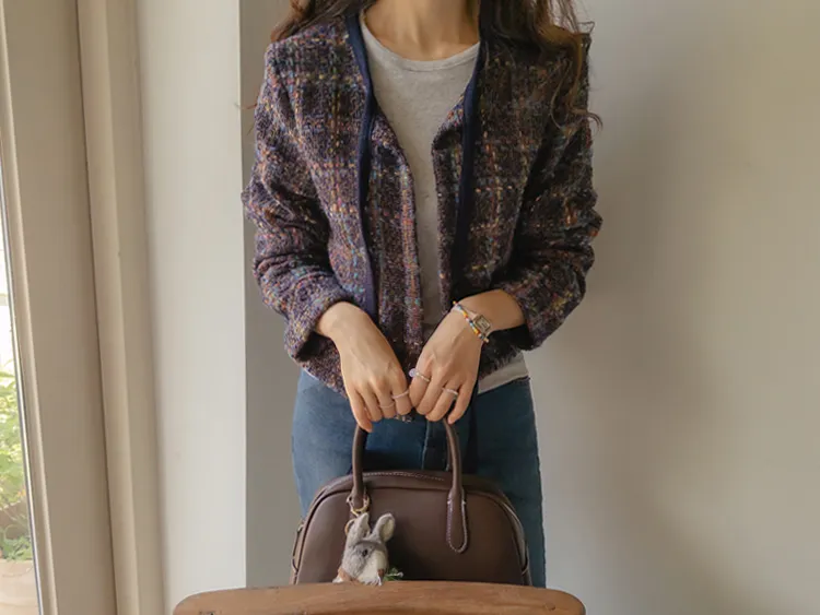【充滿魅力的花呢開衫,獨特的心情♥】【各種紗線混合的面料,顏色誘人! 】【花呢,感覺靈活,很舒適〜】【肩帶細節可以實現雙向外觀】【褲子和裙子或連身裙和所有搭配的萬能單品! ]