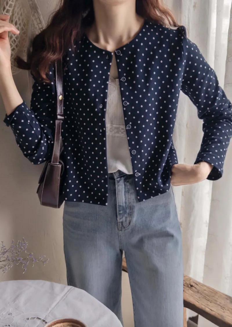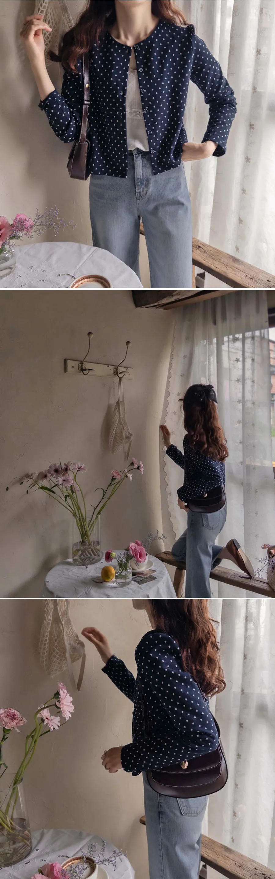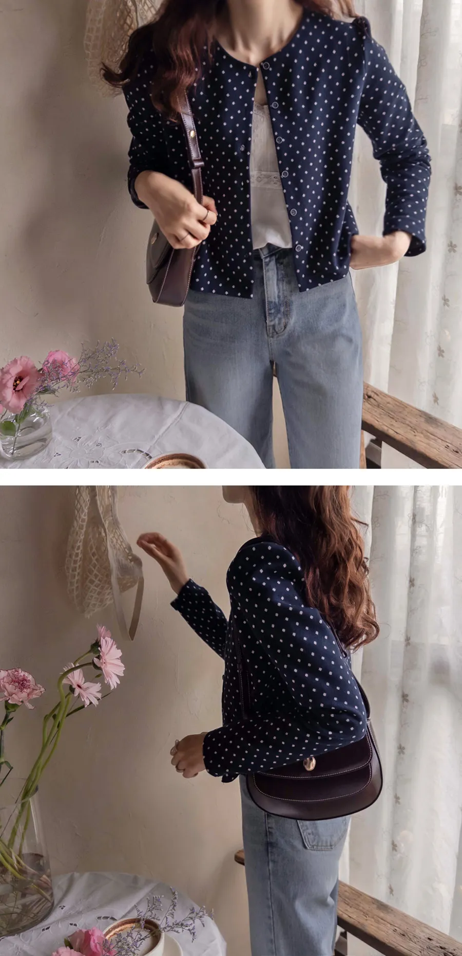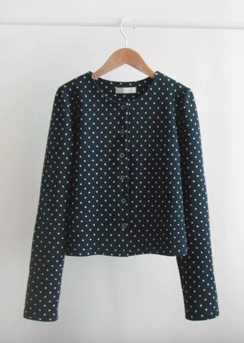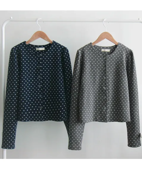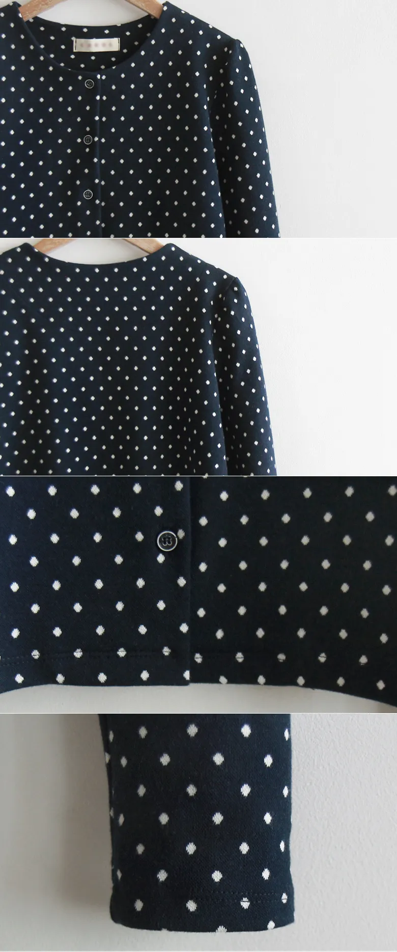 [秋季風格的開衫][充滿活力的圓點圖案的漂亮開衫][顏色增添了精緻的感覺][舒適的開衫,緊緻而堅挺的彈性][肩部剪裁使它很漂亮][帶有可愛圖案的邊緣開衫