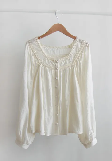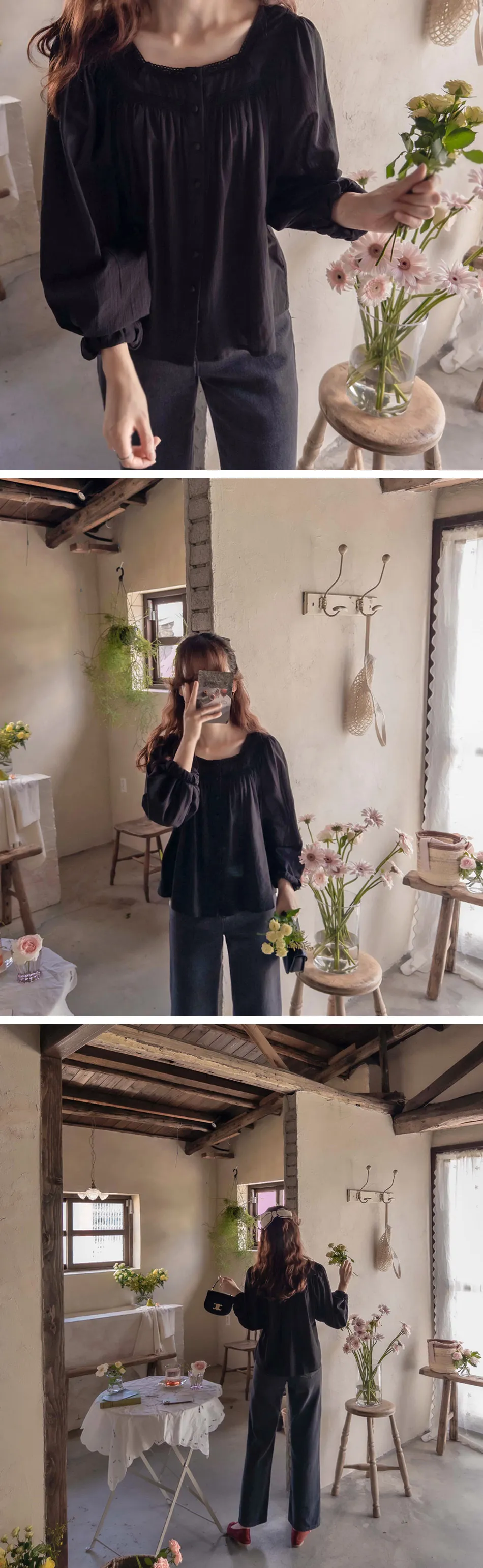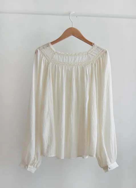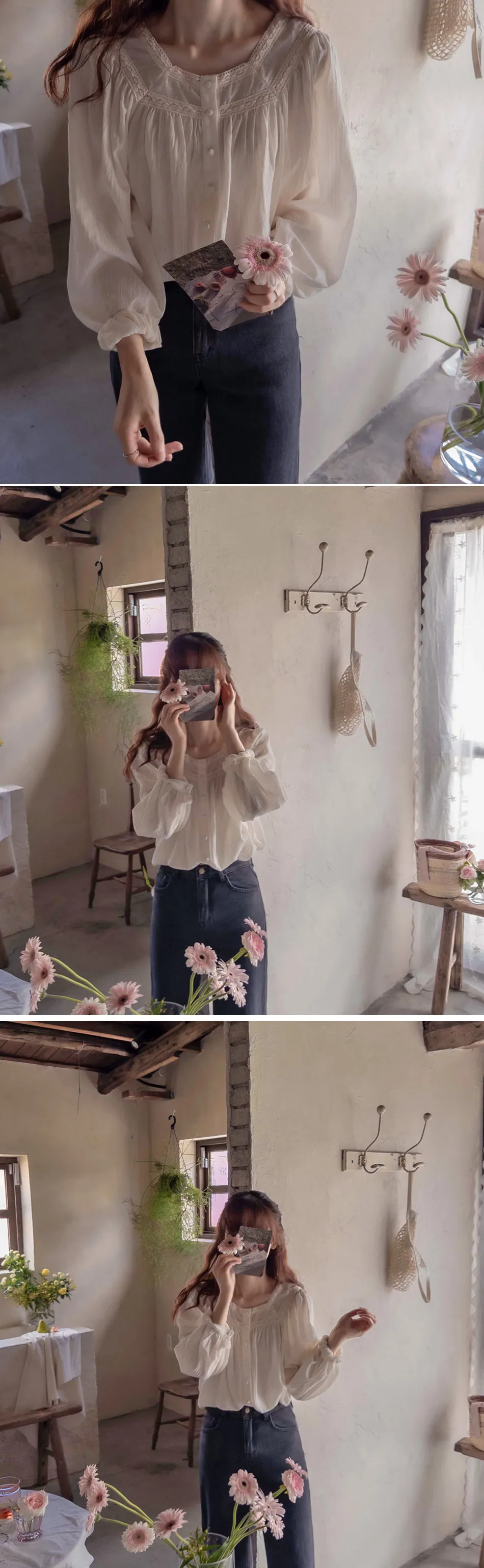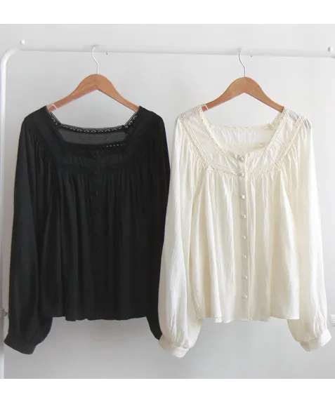 【領口用蕾絲打造出可愛的造型】【充滿明亮浪漫的上衣】【推薦作為帥氣的修身上衣】【微妙的線條圖案也很漂亮】【推薦作為優雅的蕾絲上衣
