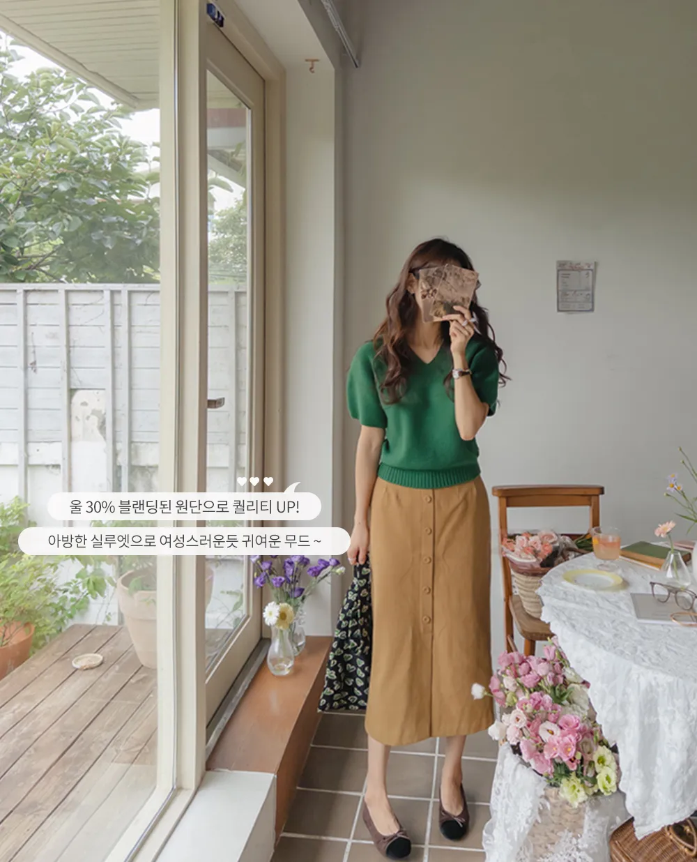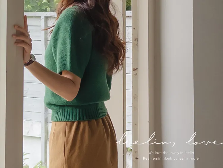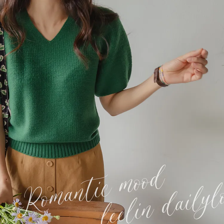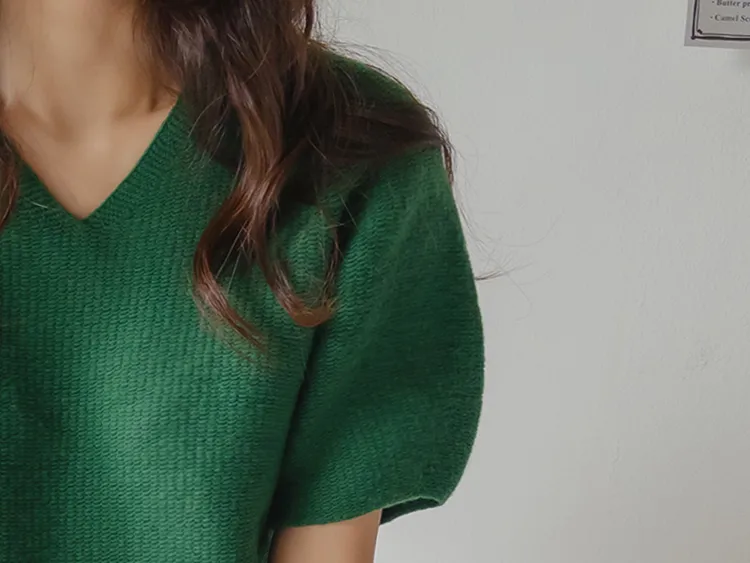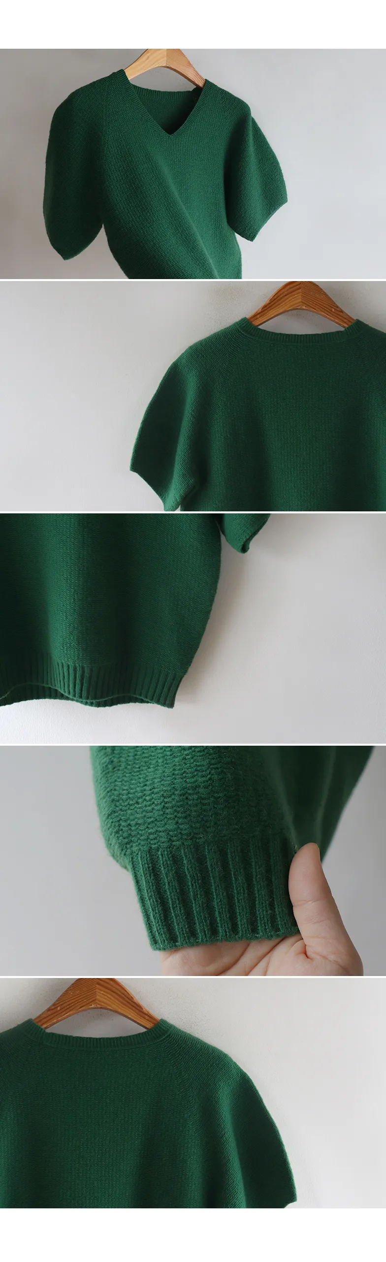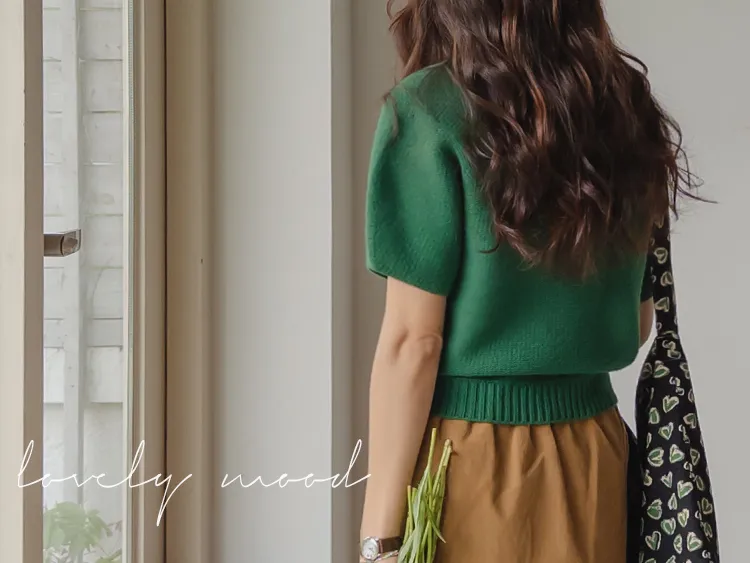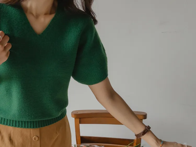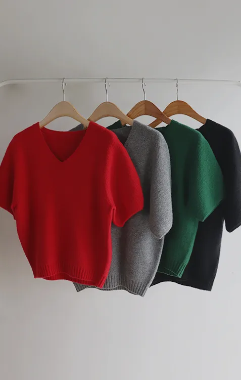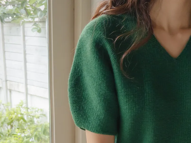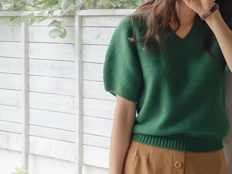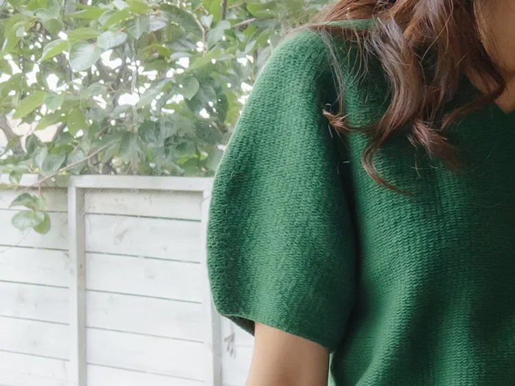 【材質、顏色、合身都完美!整件短袖針織] [整件無接縫縫製,打造柔軟的服裝] [30%羊毛混紡面料提高品質!