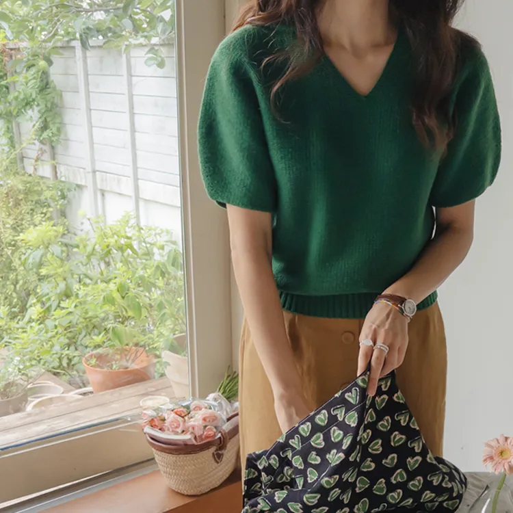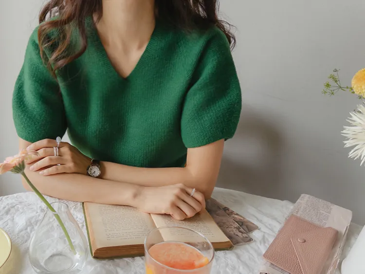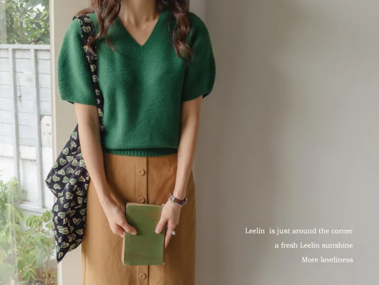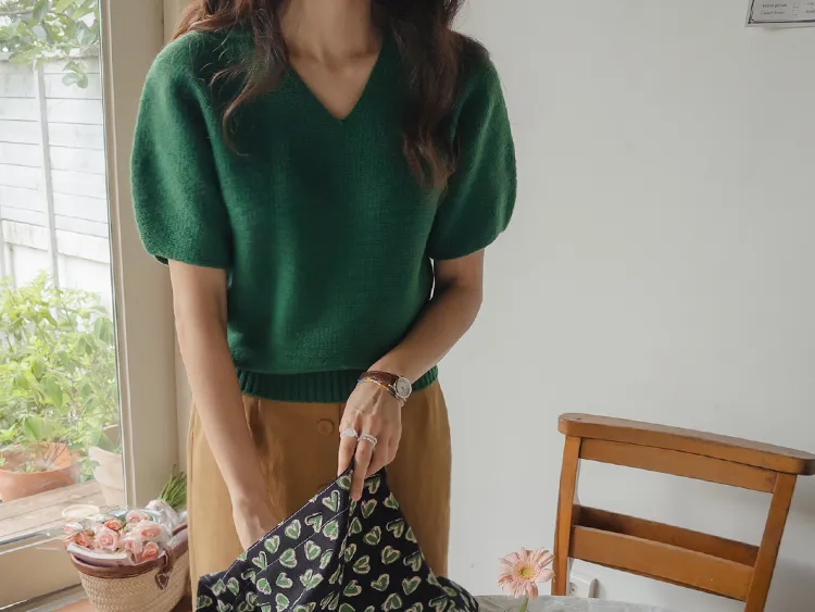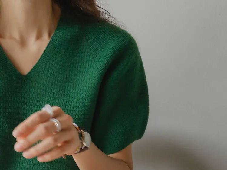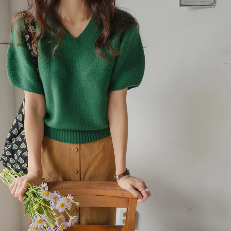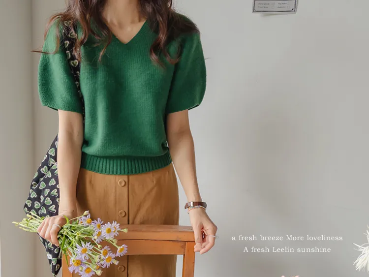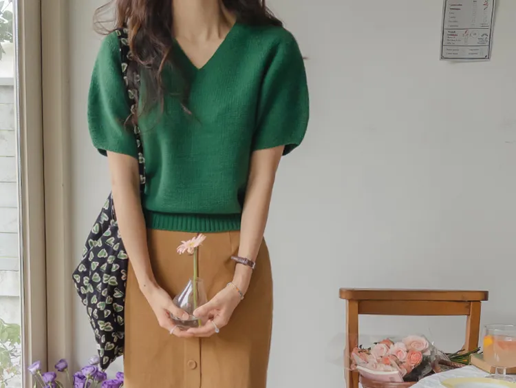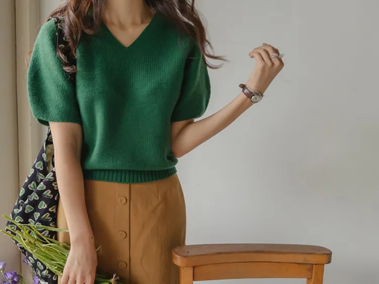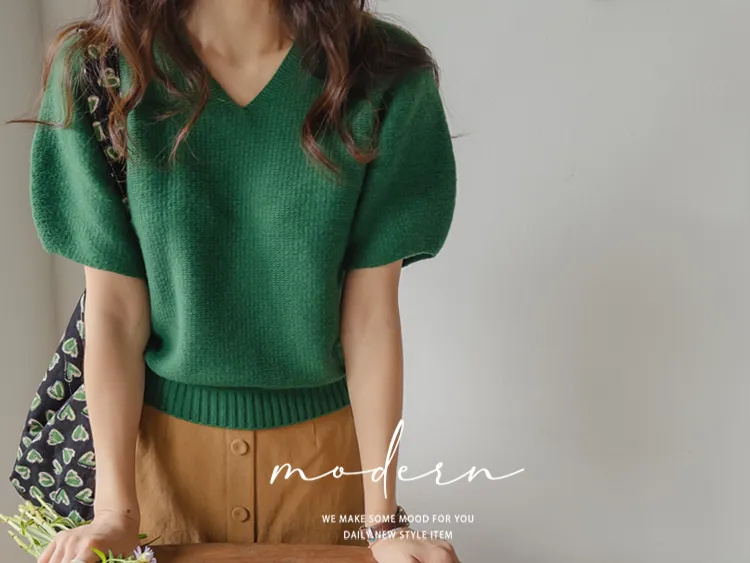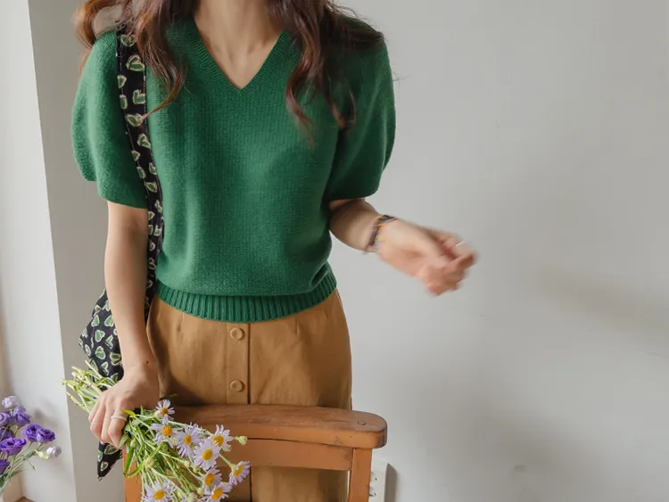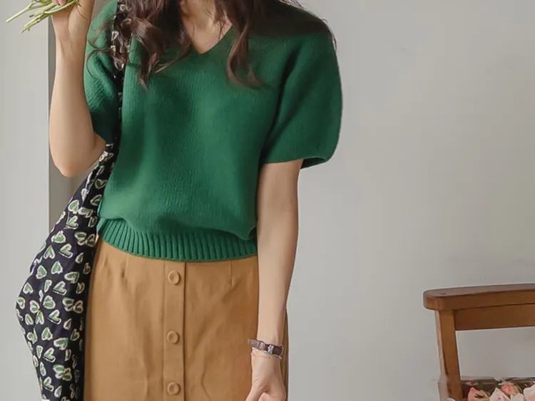 【材質、顏色、合身都完美!整件短袖針織] [整件無接縫縫製,打造柔軟的服裝] [30%羊毛混紡面料提高品質!