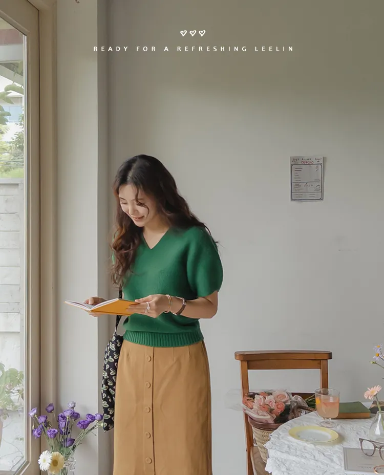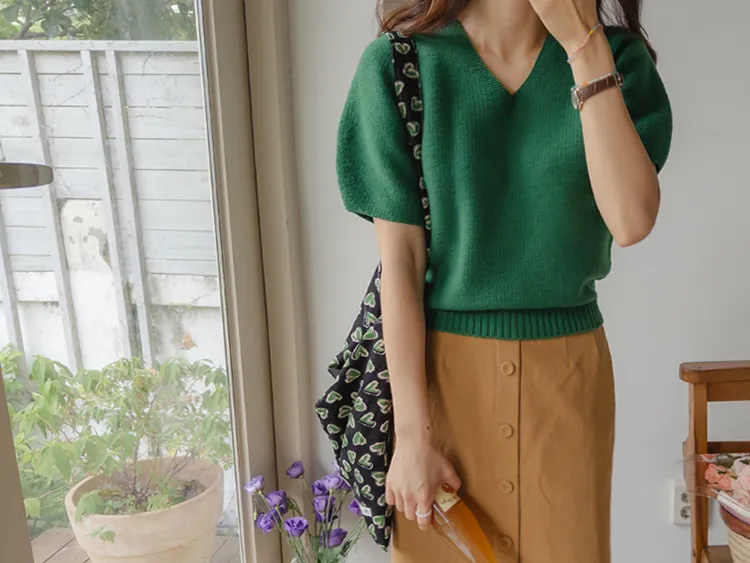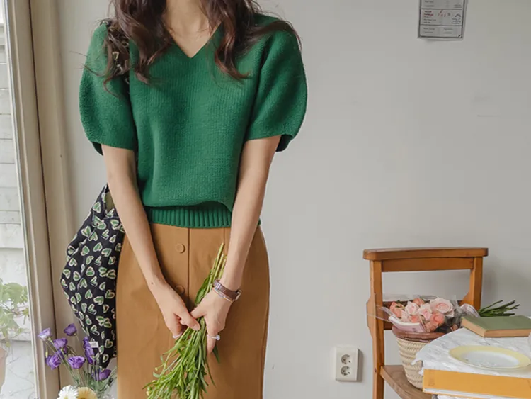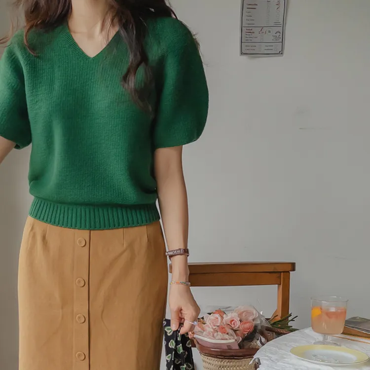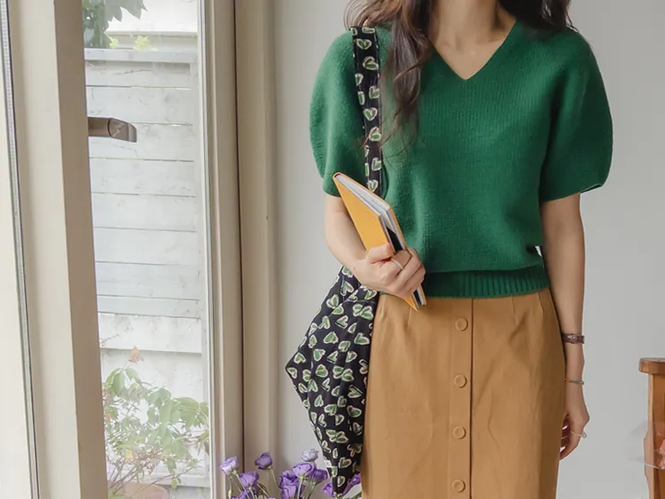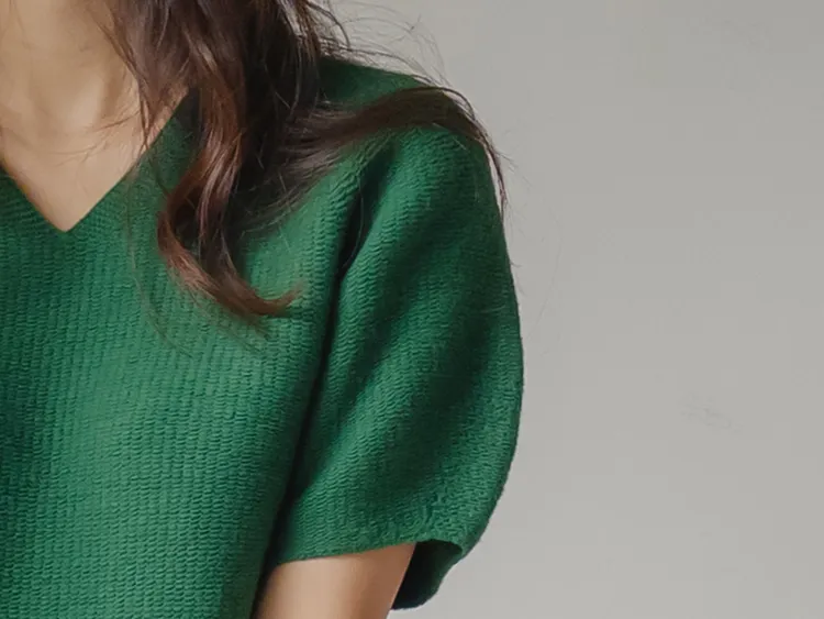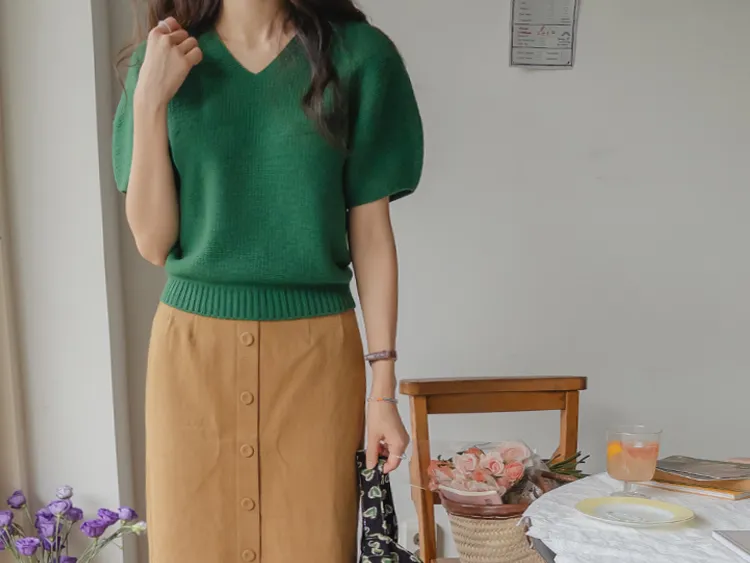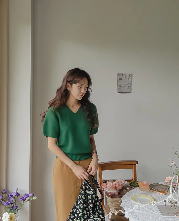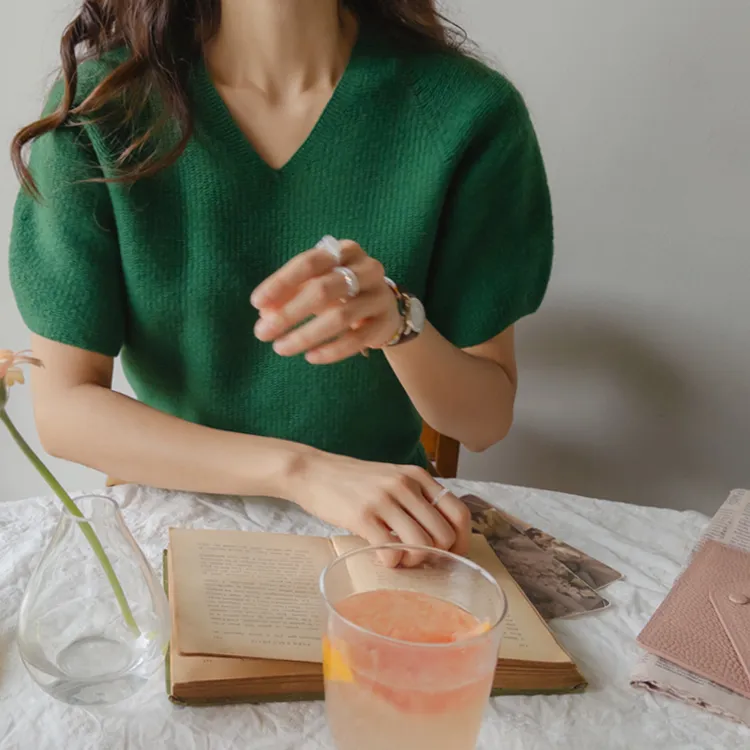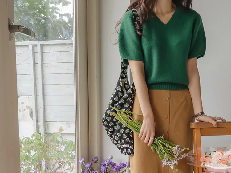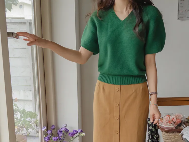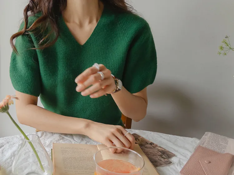 【材質、顏色、合身都完美!整件短袖針織] [整件無接縫縫製,打造柔軟的服裝] [30%羊毛混紡面料提高品質!