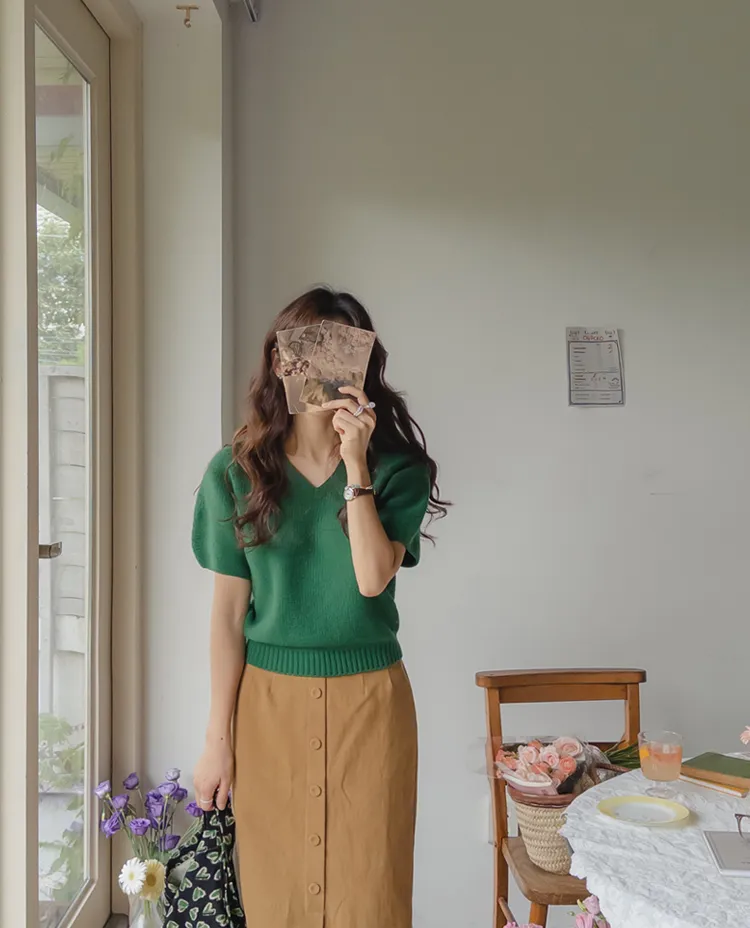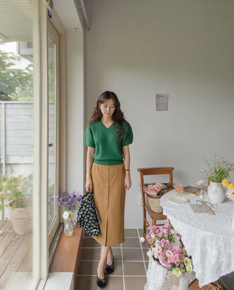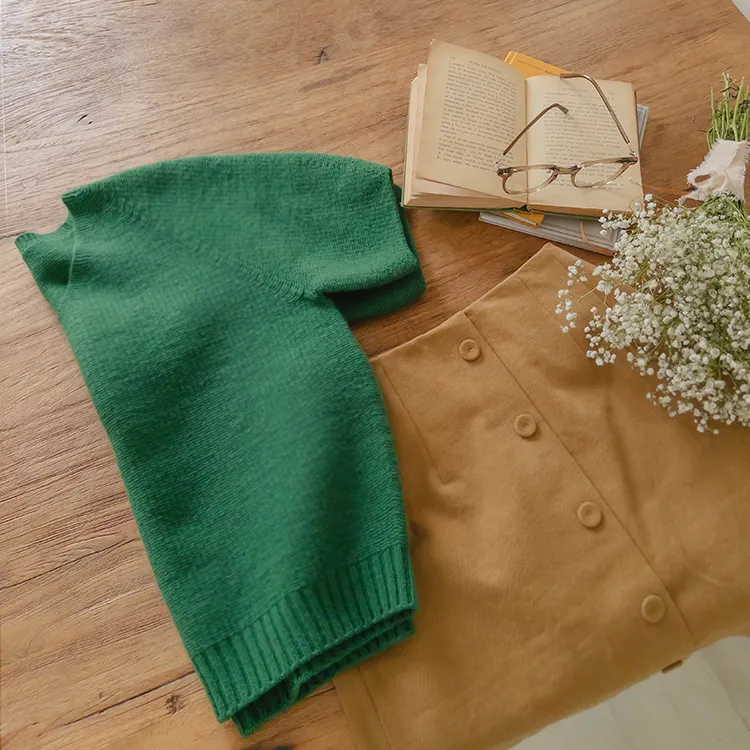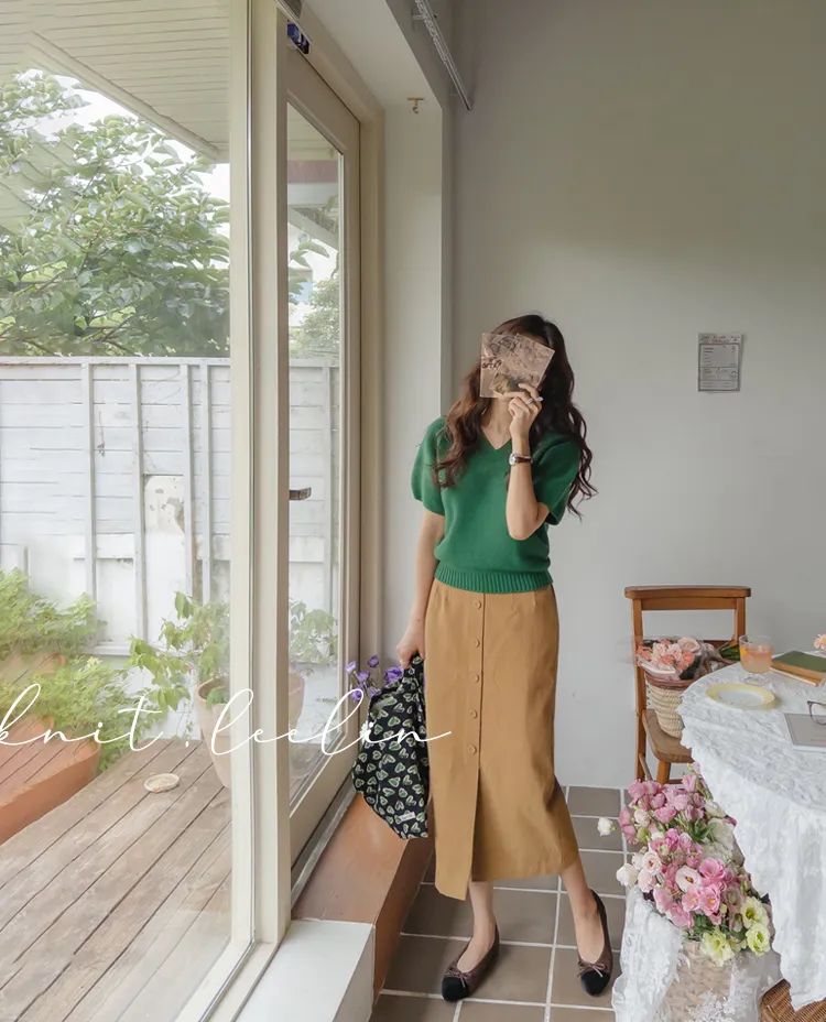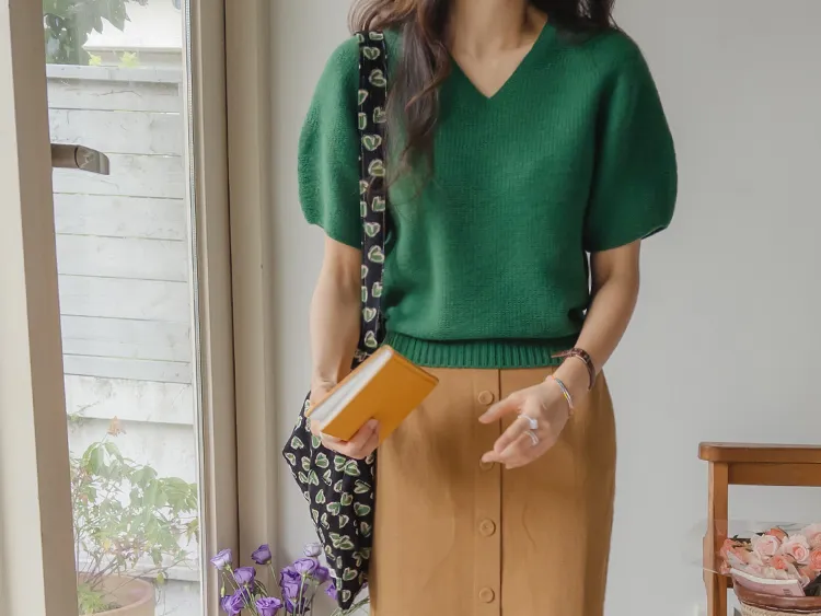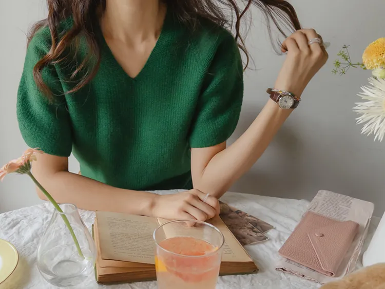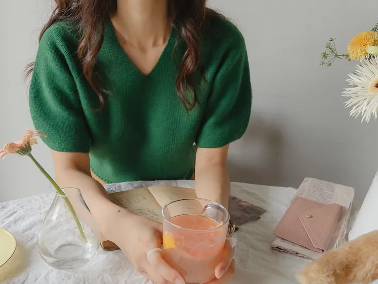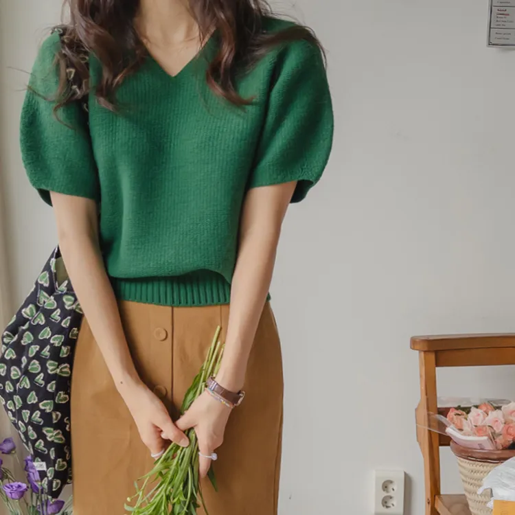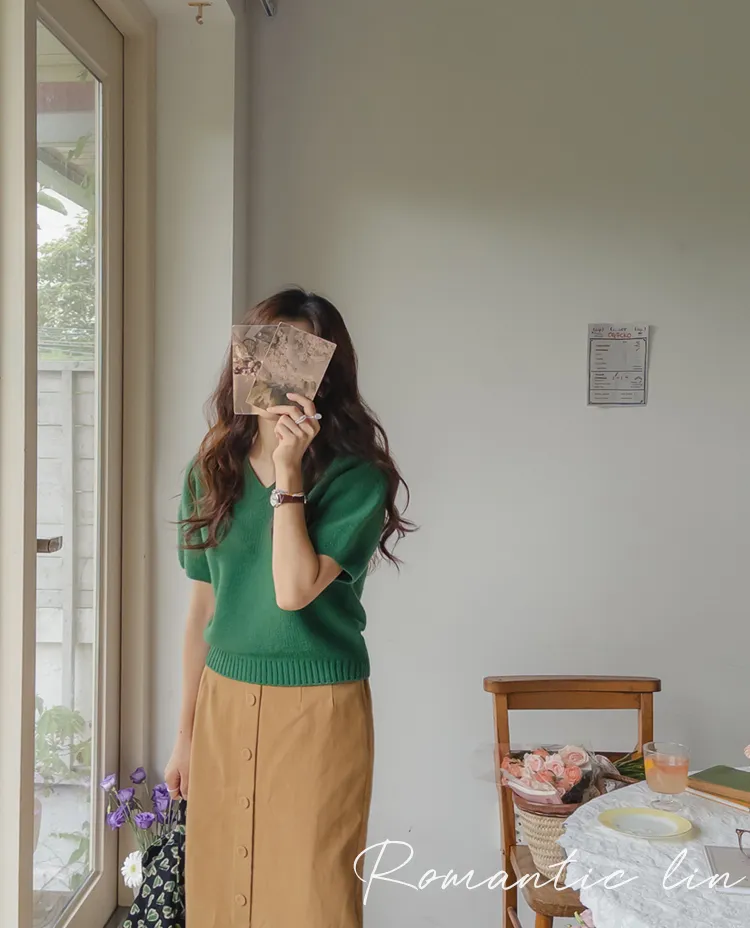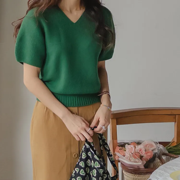 【材質、顏色、合身都完美!整件短袖針織] [整件無接縫縫製,打造柔軟的服裝] [30%羊毛混紡面料提高品質!