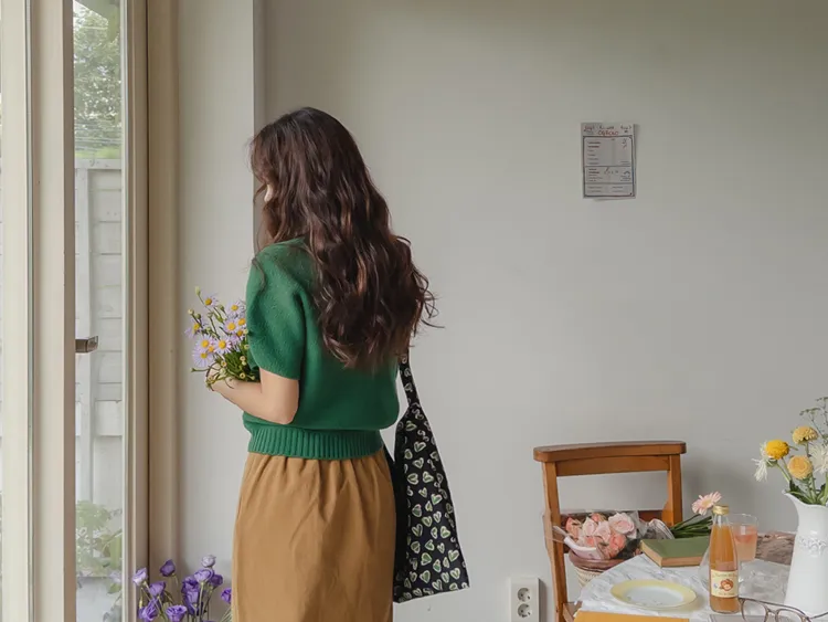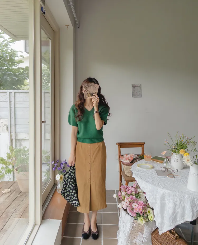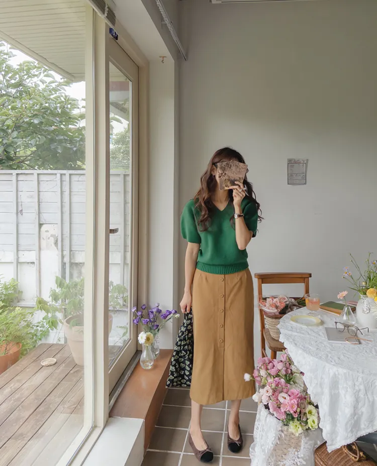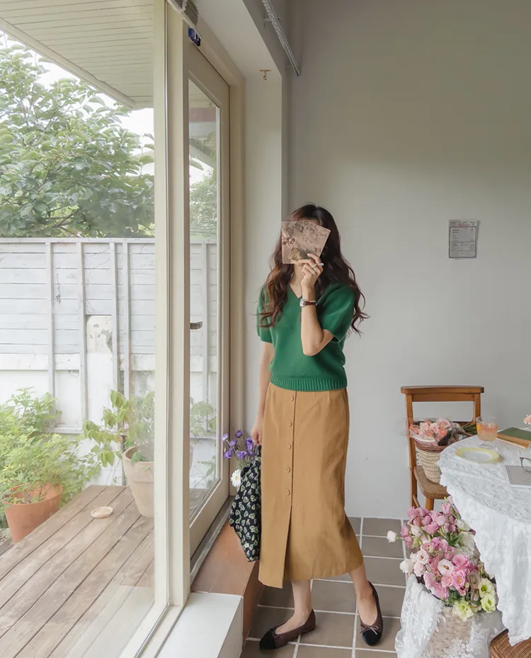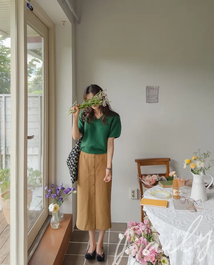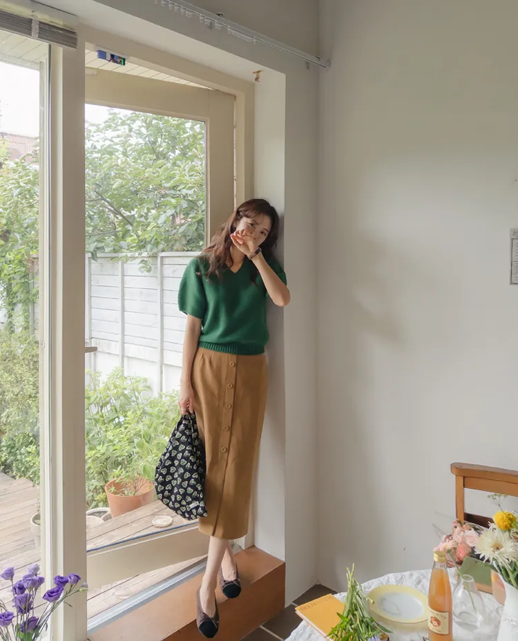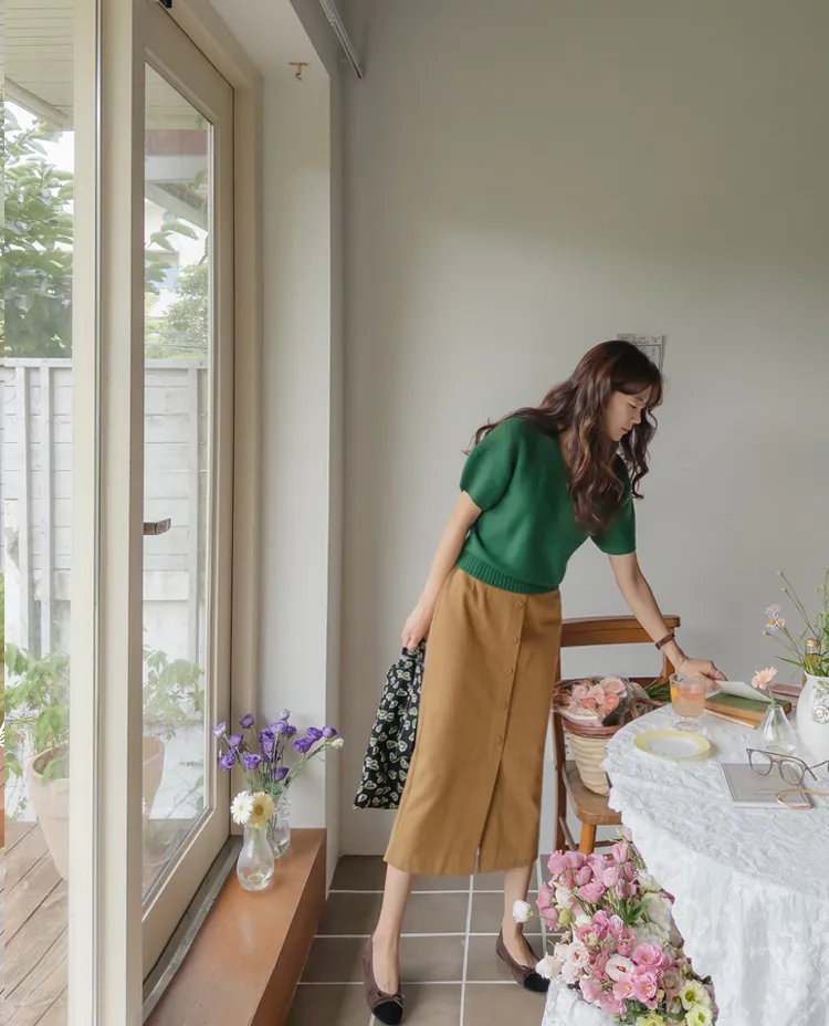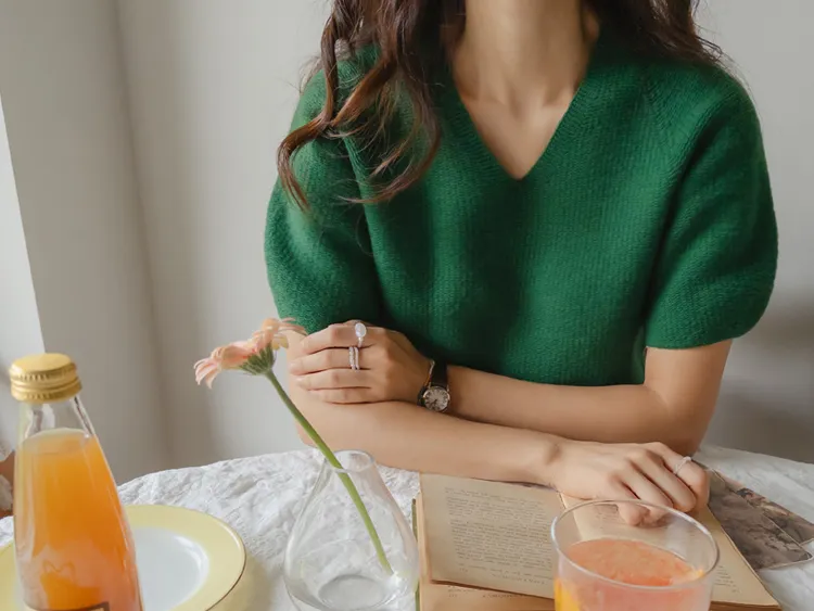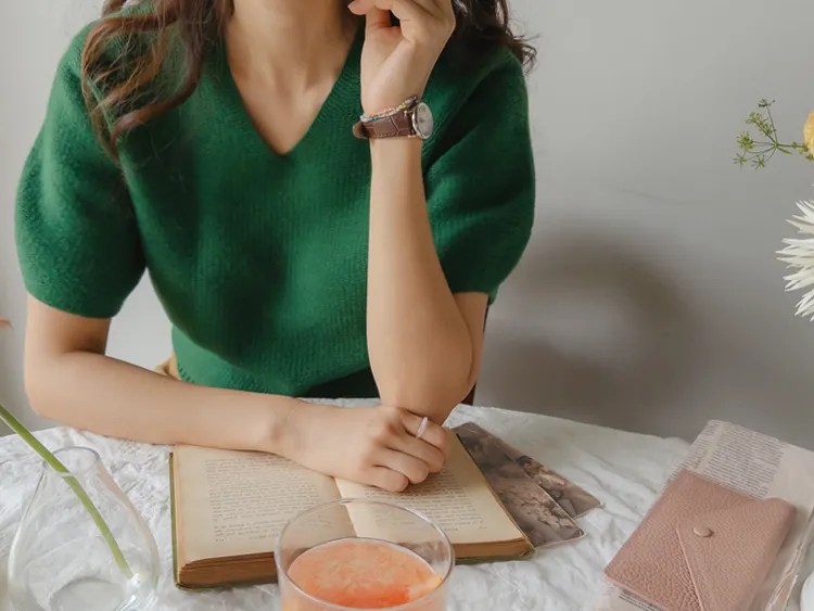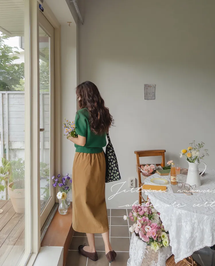 【材質、顏色、合身都完美!整件短袖針織] [整件無接縫縫製,打造柔軟的服裝] [30%羊毛混紡面料提高品質!